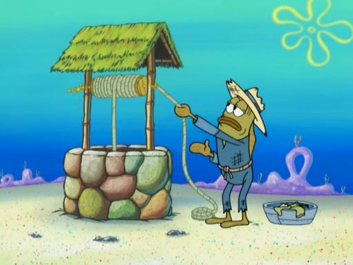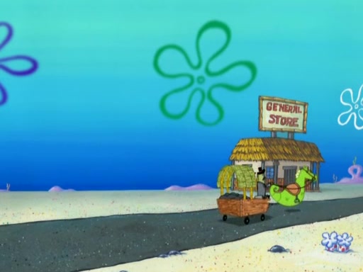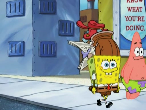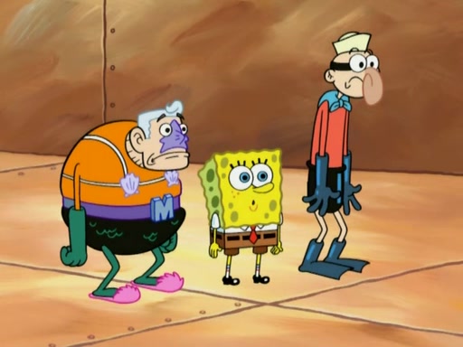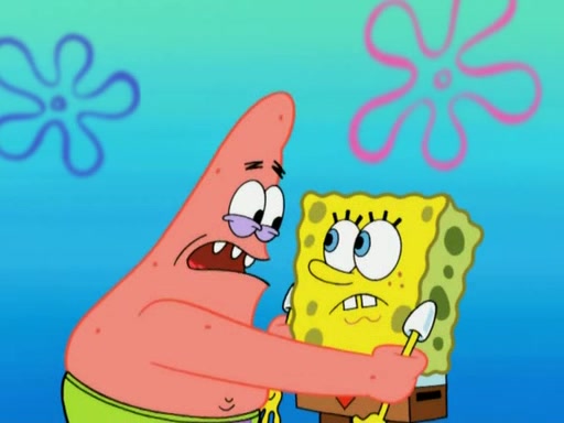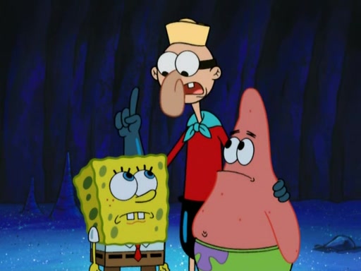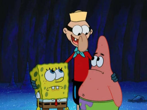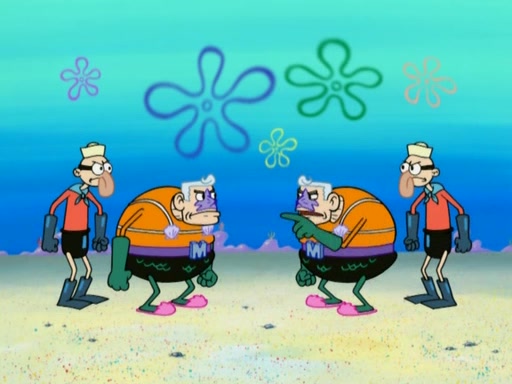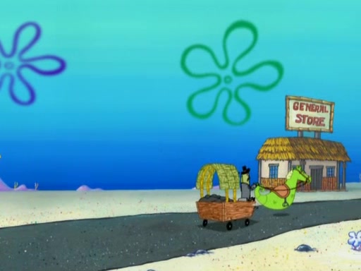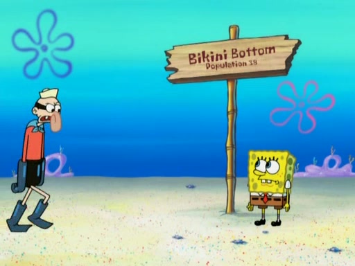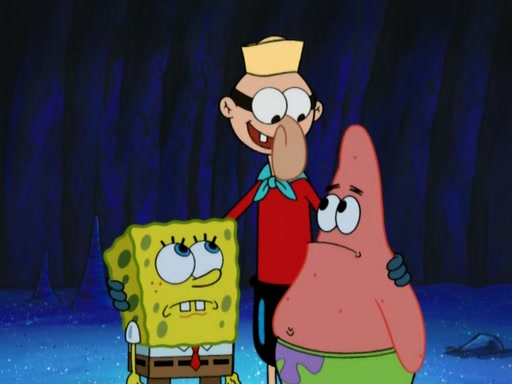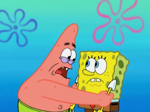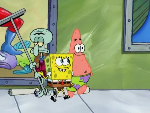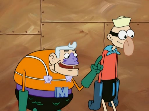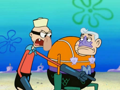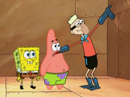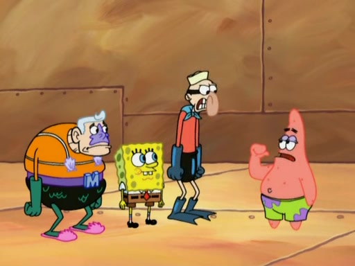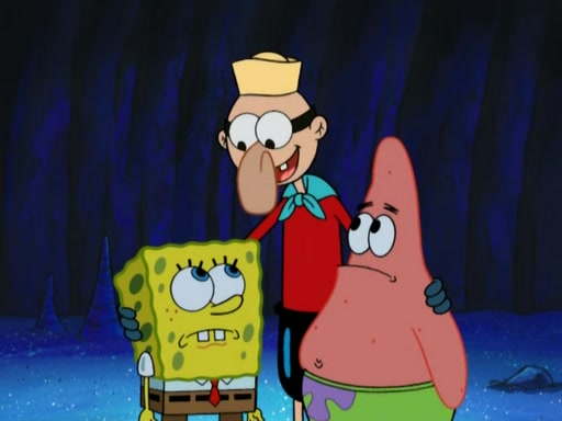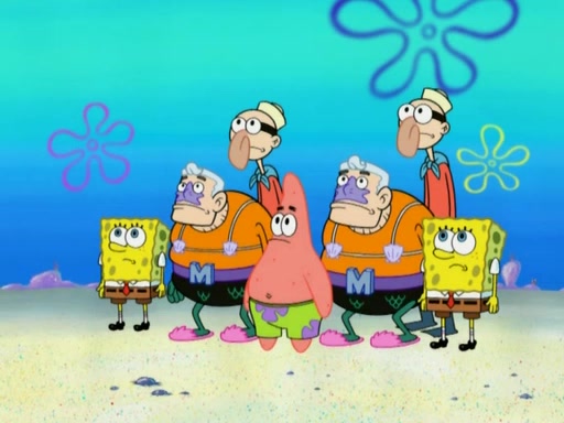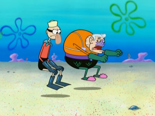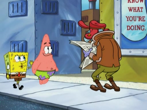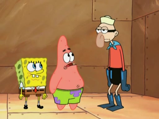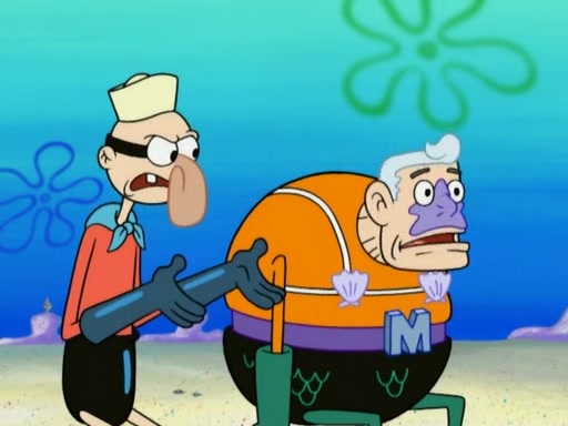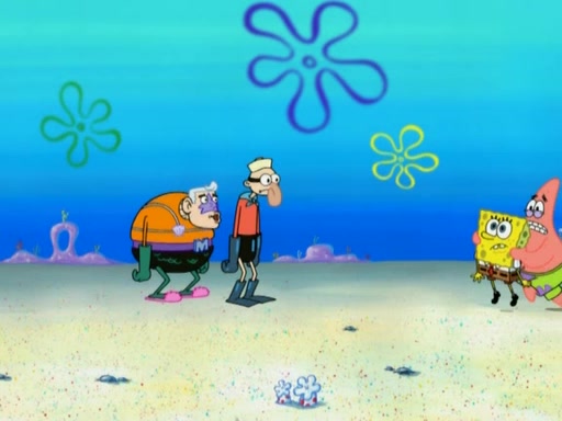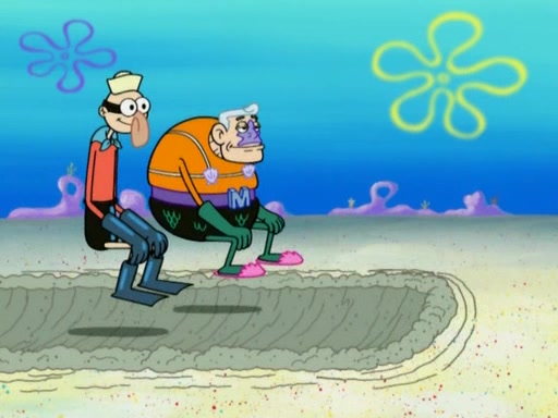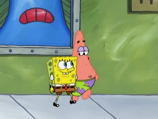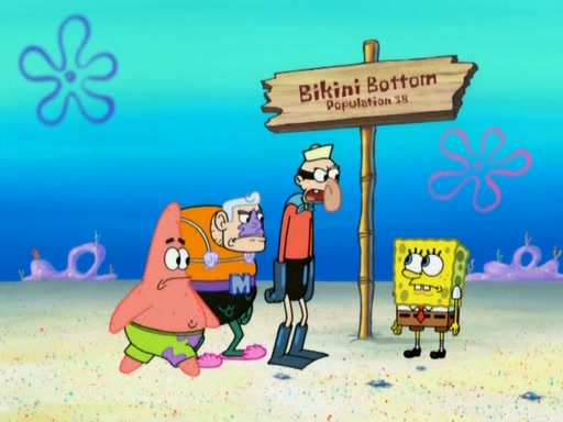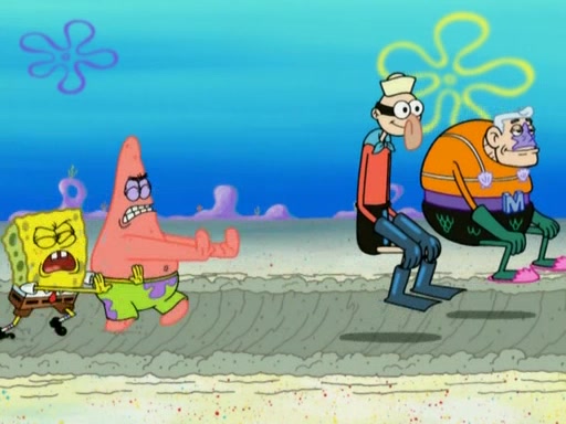 SpongeBob and Patrick are strolling through Bikini Bottom and see Mermaid Man and Barnacle Boy in the Invisible Boat Mobile, without gas. SpongeBob and Patrick push the boat over several hills.