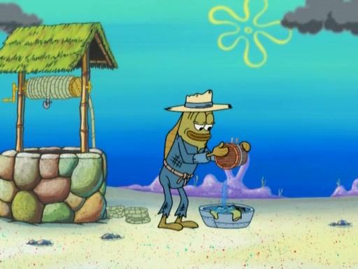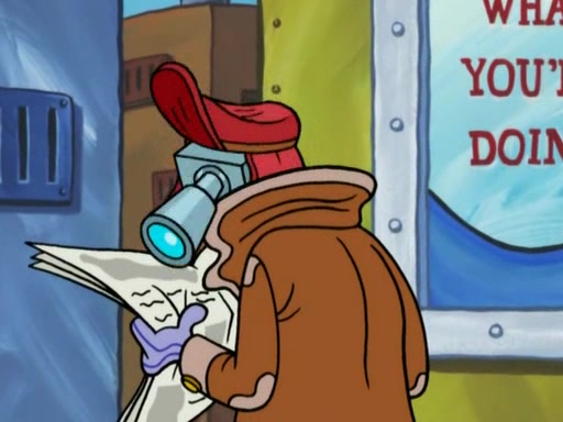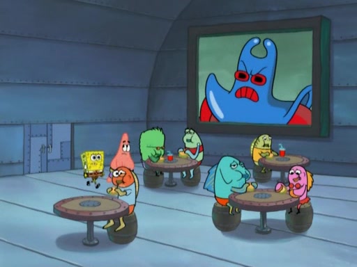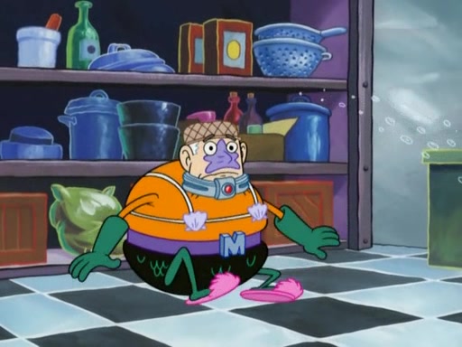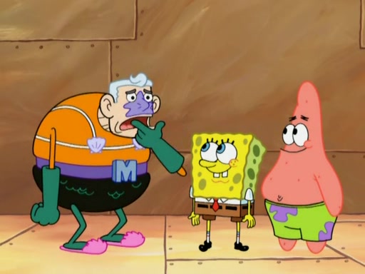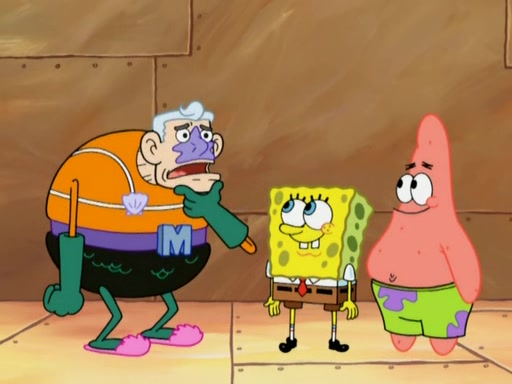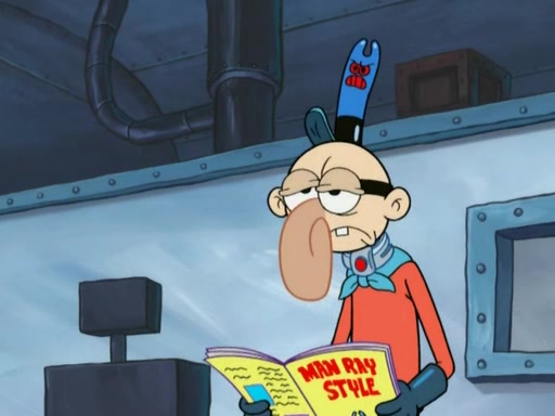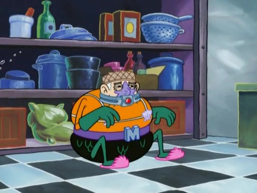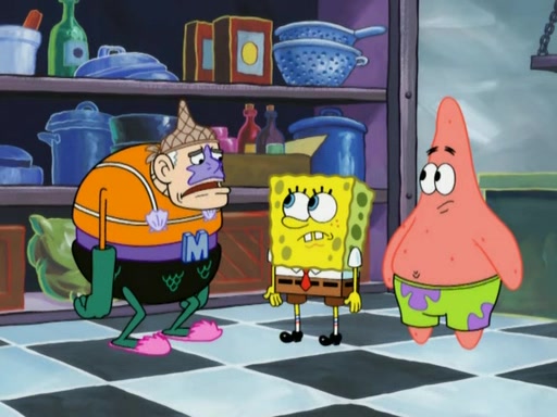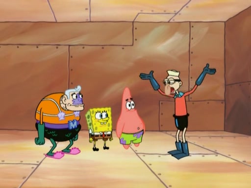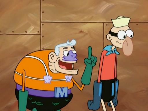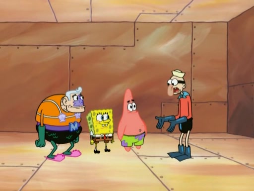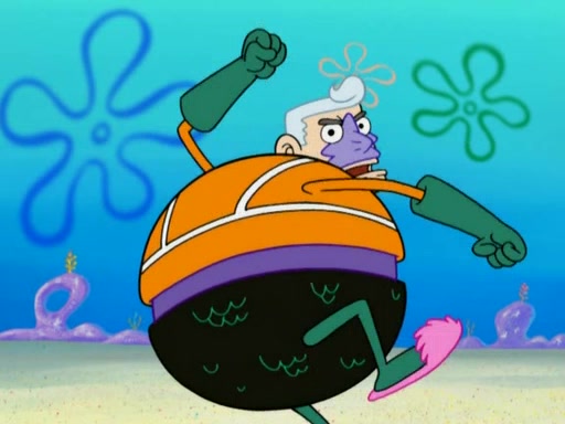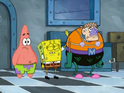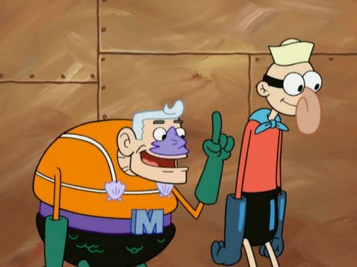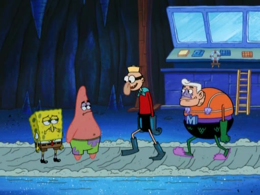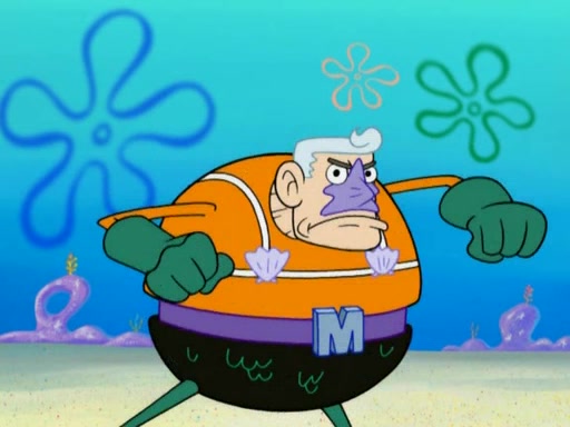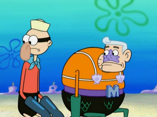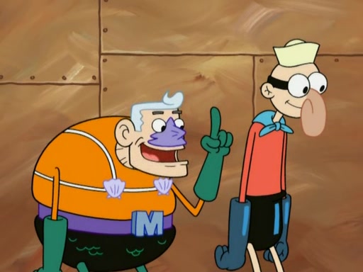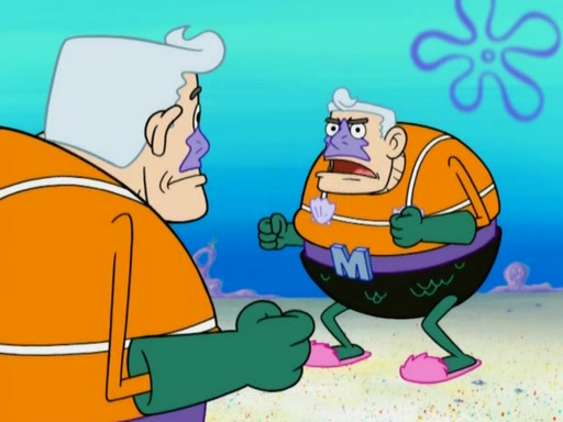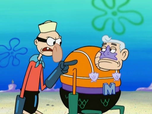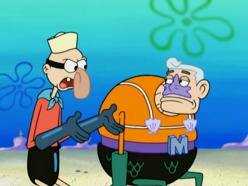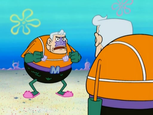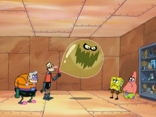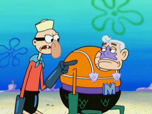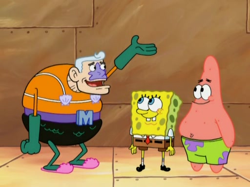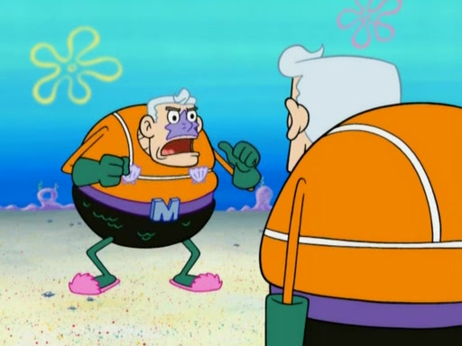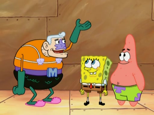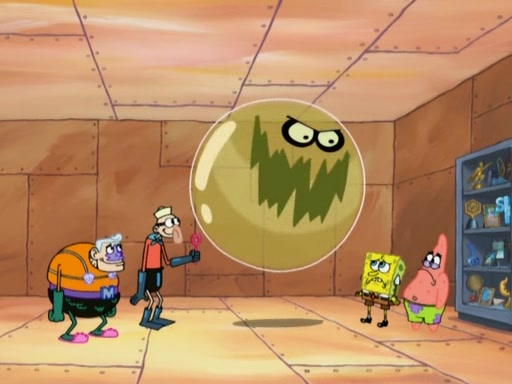 But Patrick mistakes it for a vending machine, and all of them are transported to 1954 when Mermaid Man and Barnacle Boy are young. They see Man Ray tormenting old Bikini Bottom. Mermaid Man and Barnacle Boy are unsuccessful at foiling Man Ray due to Patrick eating the tartar sauce they were originally going to trap him in.