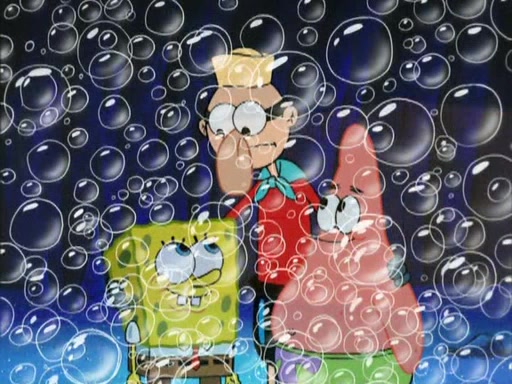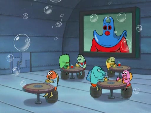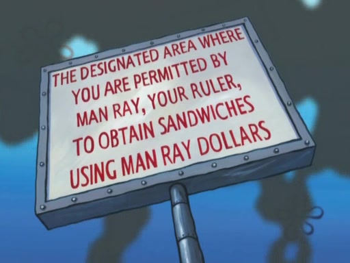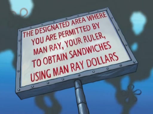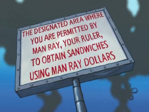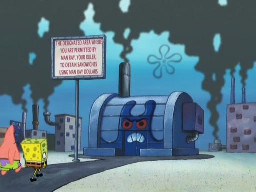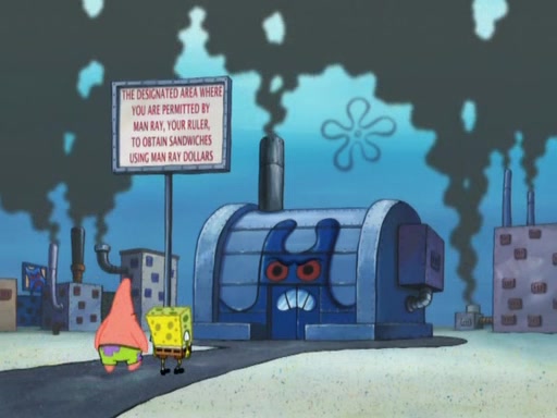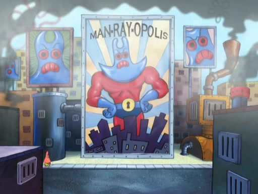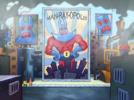 SpongeBob and Patrick escape old Bikini Bottom, leaving their Mermaid Man and Barnacle Boy behind. When SpongeBob and Patrick return to Bikini Bottom, it is no longer called Bikini Bottom, but Man Rayopolis. They go to the Krusty Krab which now has no name.