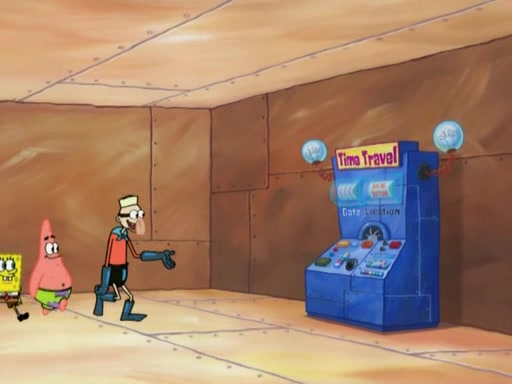 Barnacle Boy invites them into their warehouse full of memorabilia from their T.V. show. Barnacle Boy shows them a time machine which they have never used, and warns them not to use it.
