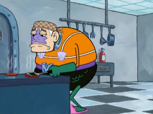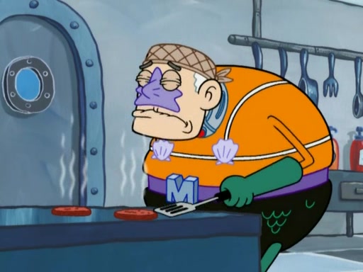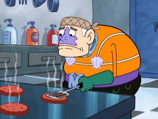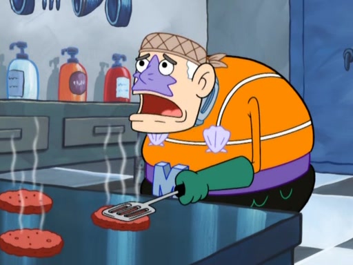 The superheroes from their time are now dead and buried inside of the restaurant while the past superheroes now work there. Mermaid Man is the fry cook, SpongeBob's position, and Barnacle Boy is the cashier, Squidward's position. They go back to stop Patrick from eating the tartar sauce, but the heroes who were sent by accident believe they are impostors. The Mermaid Men fight which creates the perfect distraction for Man Ray. The young Mermaid Man and Barnacle Boy attempt to foil Man Ray with the tartar sauce, but the two Patricks end up eating it. Another warehouse appears.