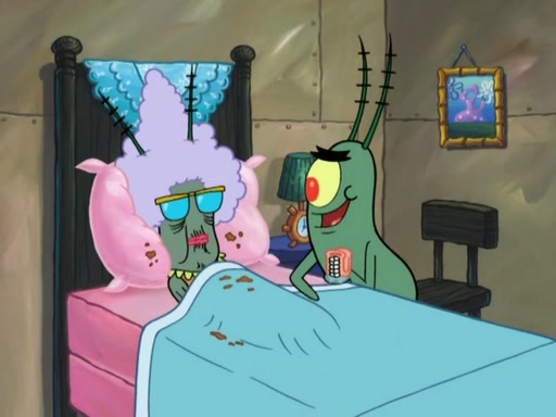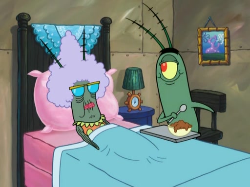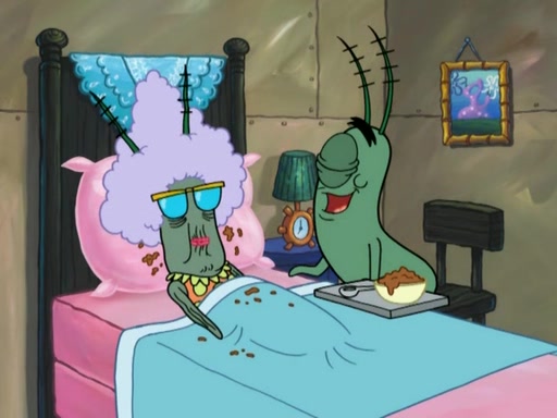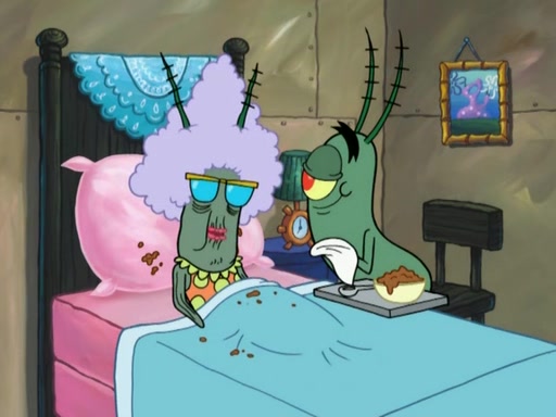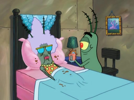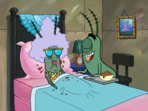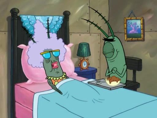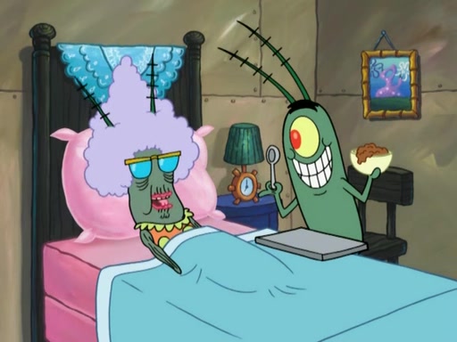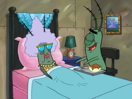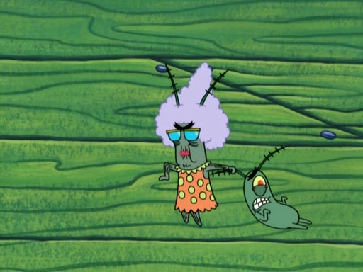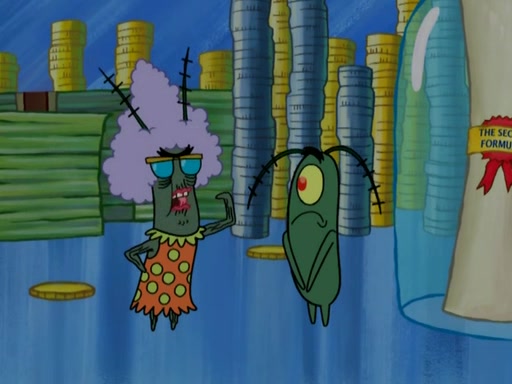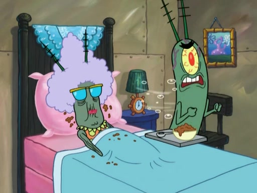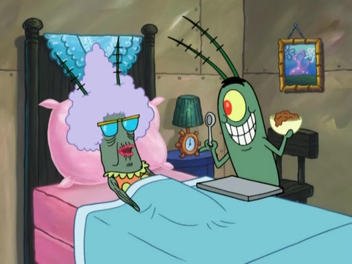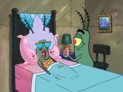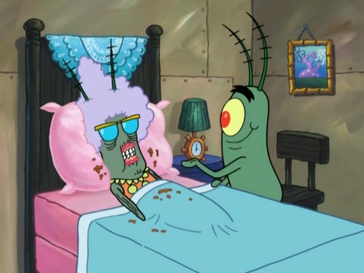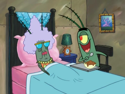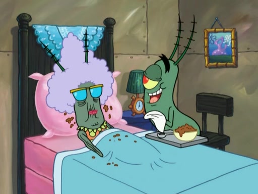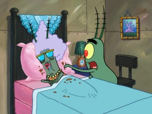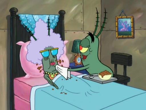 In the beginning, Plankton is seen being with his grandmother. Then, Plankton puts his grandmother to sleep, and then takes some of her clothes. Plankton later walks to SpongeBob's home, where he appears. Plankton says that he is his grandmother. So then SpongeBob shows Plankton all his albums. The next day, Plankton wants to go to the Krusty Krab, but SpongeBob insists that they go to a nursing home. In there, they knit and play cards when Plankton rips a card. SpongeBob realizes he's bored and they go to the Krusty Krab, although Plankton says he wants to enter through the back door. So meanwhile, Plankton puts a balloon that looks like him. It flies away into the dishwasher, and when SpongeBob turns it on, the balloon pops, and SpongeBob thinking it's grandma, he cries, but then Plankton appears and says he's fine. Plankton tells SpongeBob that he is tired and needs to take a nap in a private place. He then takes him to the safe, but then Plankton's grandma finds out and takes him back while SpongeBob thinks that his grandma caught Plankton from stealing the Krabby Patty Secret Formula.