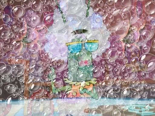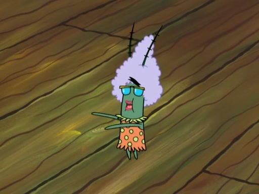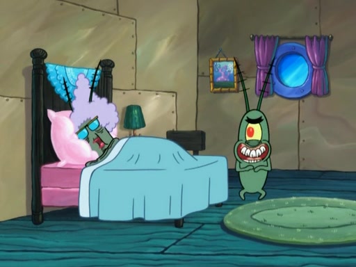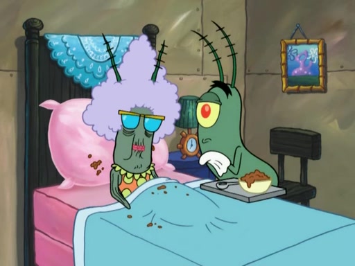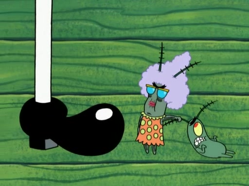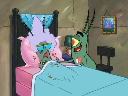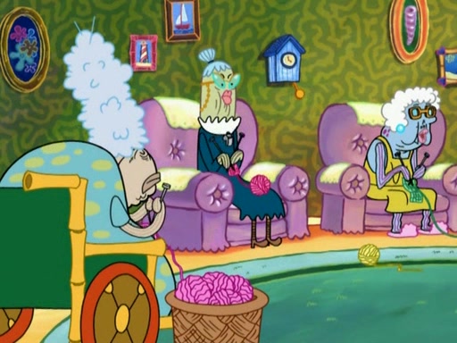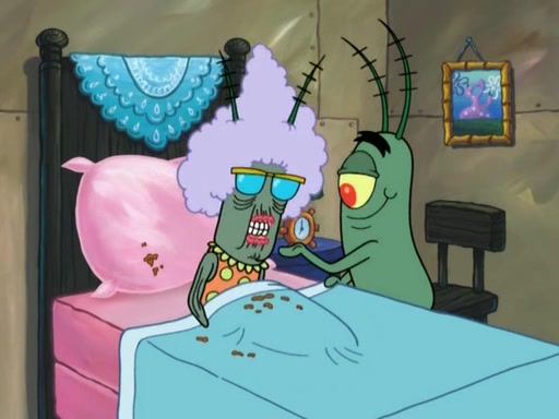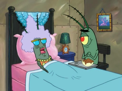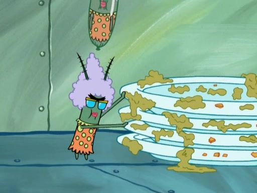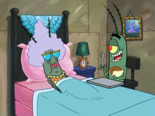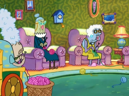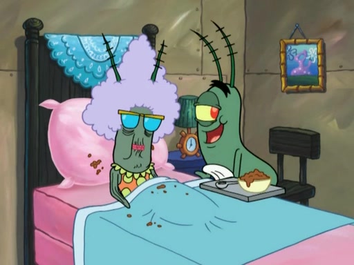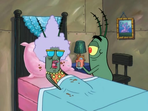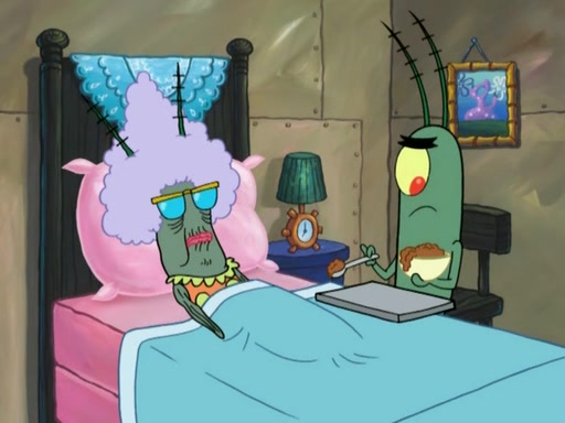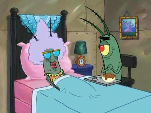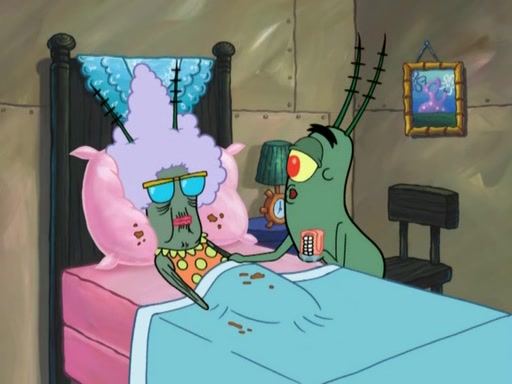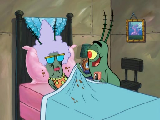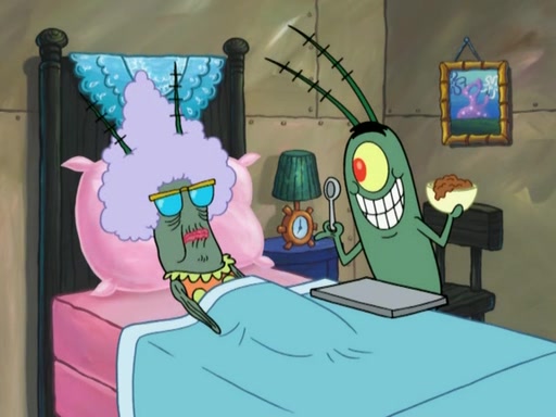 In the beginning, Plankton is seen being with his grandmother. Then, Plankton puts his grandmother to sleep, and then takes some of her clothes. Plankton later walks to SpongeBob's home, where he appears. Plankton says that he is his grandmother. So then SpongeBob shows Plankton all his albums. The next day, Plankton wants to go to the Krusty Krab, but SpongeBob insists that they go to a nursing home. In there, they knit and play cards when Plankton rips a card. SpongeBob realizes he's bored and they go to the Krusty Krab, although Plankton says he wants to enter through the back door. So meanwhile, Plankton puts a balloon that looks like him. It flies away into the dishwasher, and when SpongeBob turns it on, the balloon pops, and SpongeBob thinking it's grandma, he cries, but then Plankton appears and says he's fine. Plankton tells SpongeBob that he is tired and needs to take a nap in a private place. He then takes him to the safe, but then Plankton's grandma finds out and takes him back while SpongeBob thinks that his grandma caught Plankton from stealing the Krabby Patty Secret Formula.