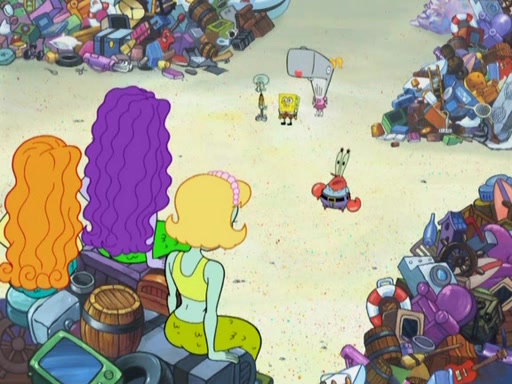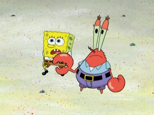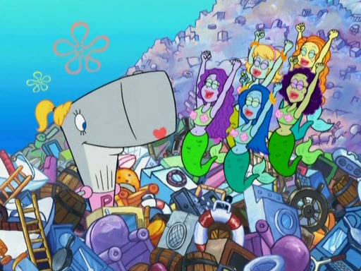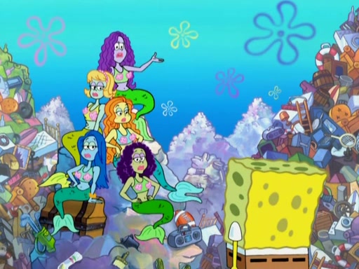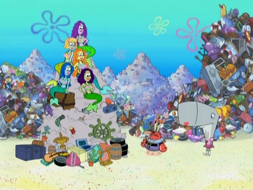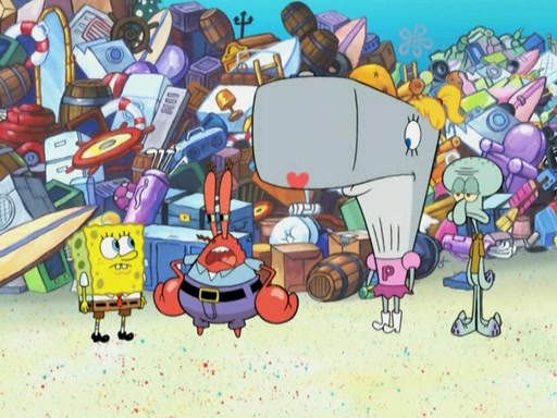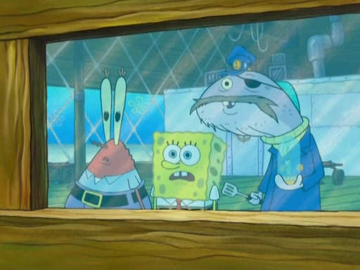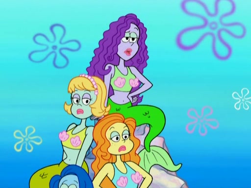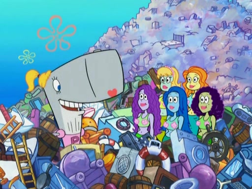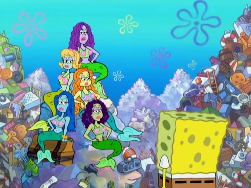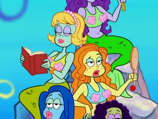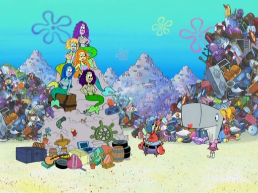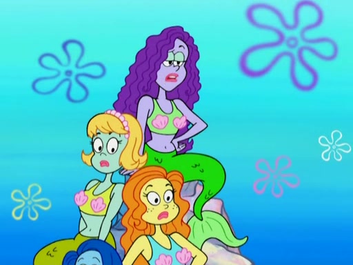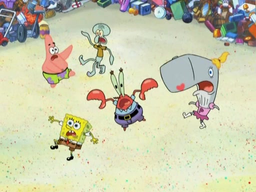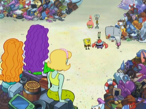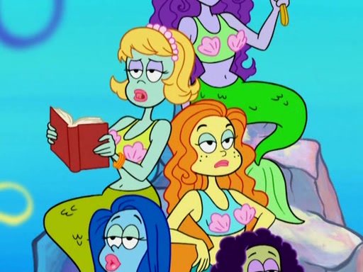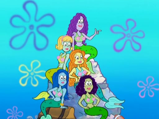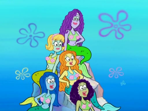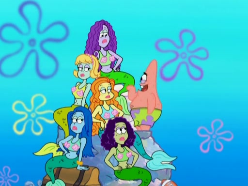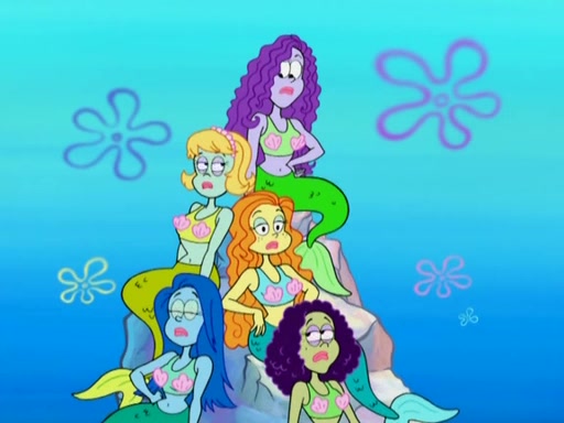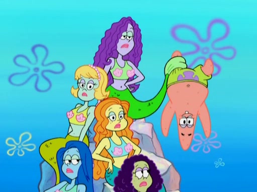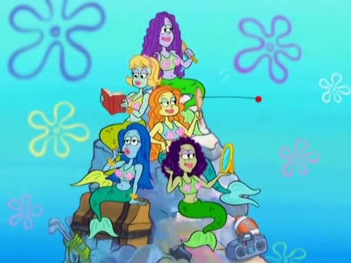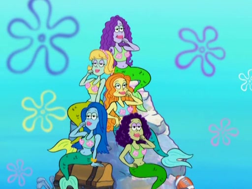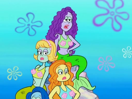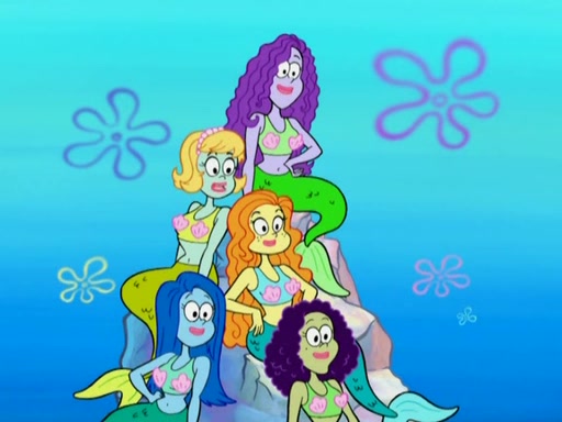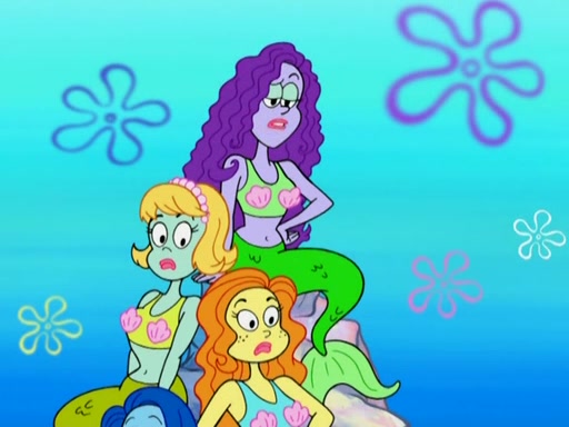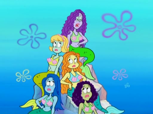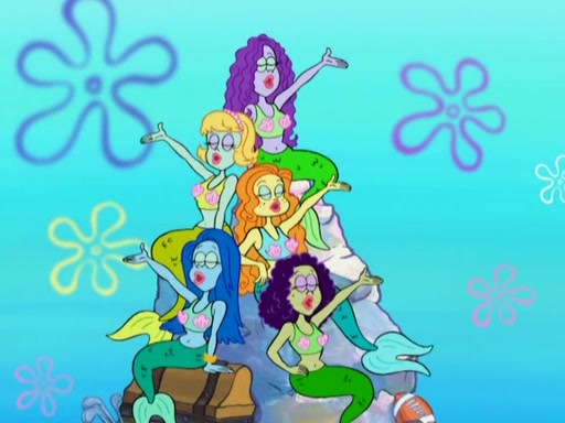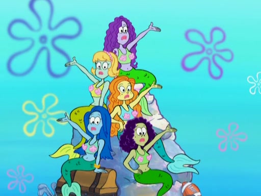 Pearl and Squidward relax, Mr. Krabs looks for change, and SpongeBob and Patrick look for the mermaids. The mermaid quintet only knows how to "surround themselves with cool new stuff" whenever they feel like. They call SpongeBob's dilemma "TNOP" (totally not our problem). SpongeBob then quickly says upon return, "Unfortunately, I was unable to get the information from the aauugh," and being noticeably tired, he simply collapses. Mr. Krabs realizes SpongeBob desperately needs a Krabby Patty. He finds one and feeds it to SpongeBob. He then wonders who made that Krabby Patty. Suspecting that Plankton might have stolen the formula, Mr. Krabs intends on getting back to the Krusty Krab as soon as possible.