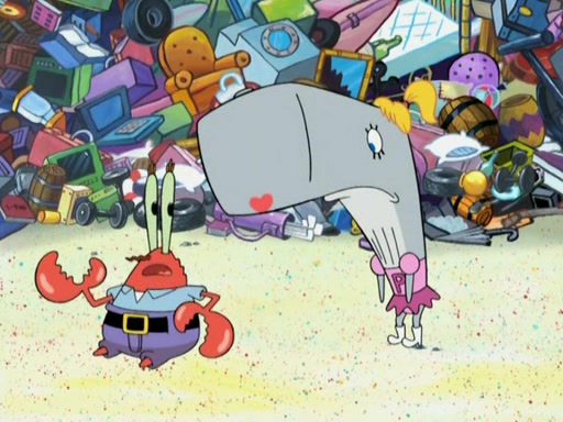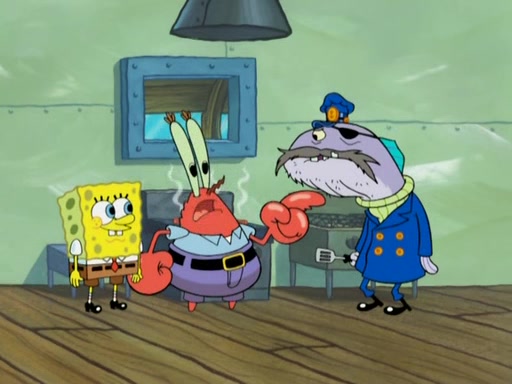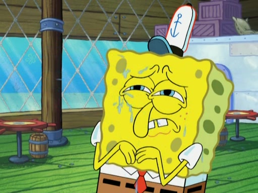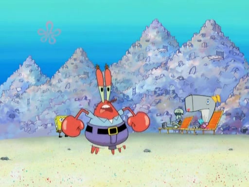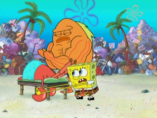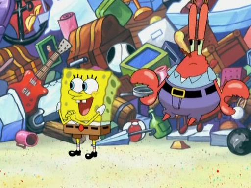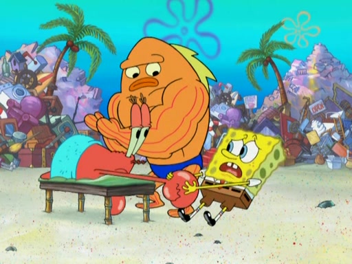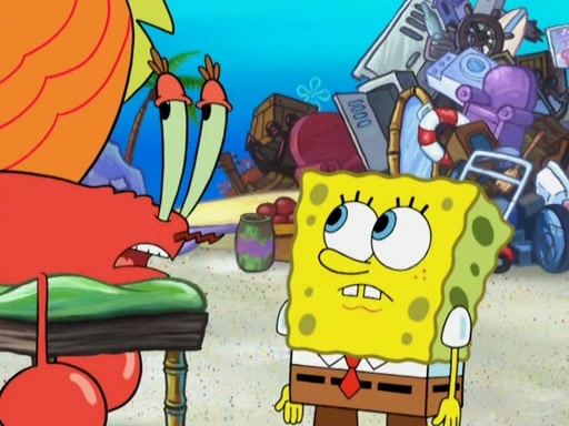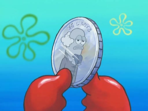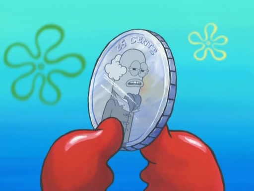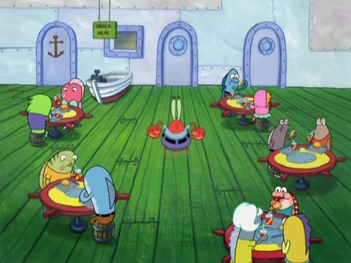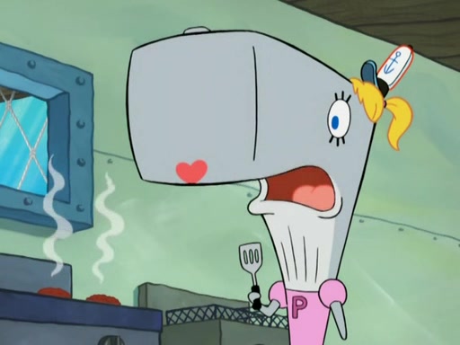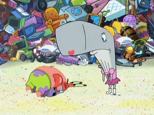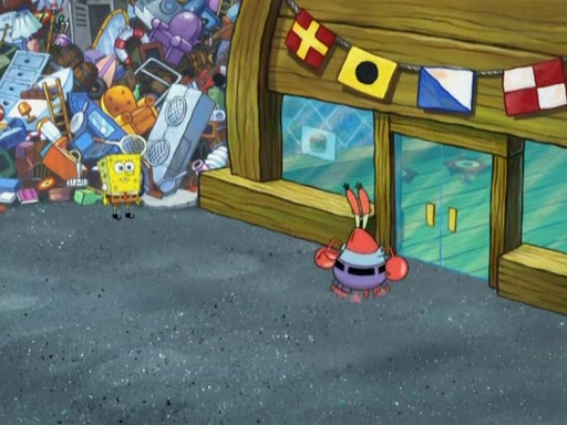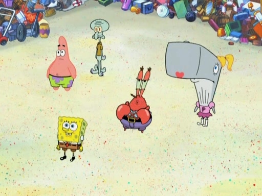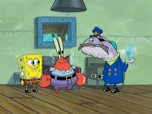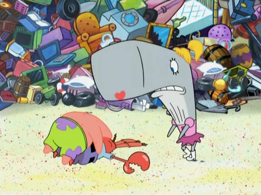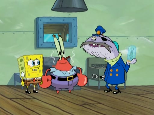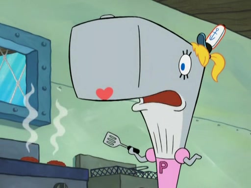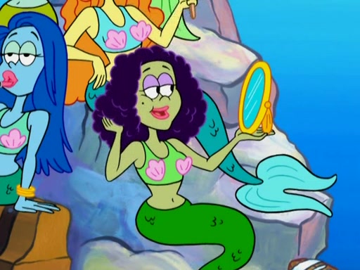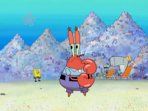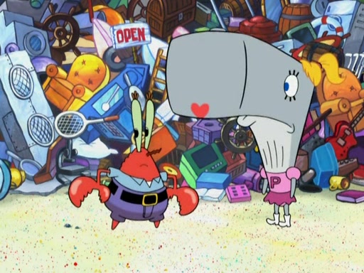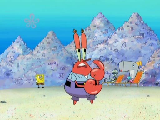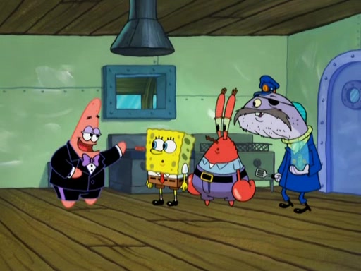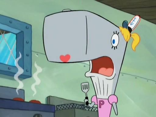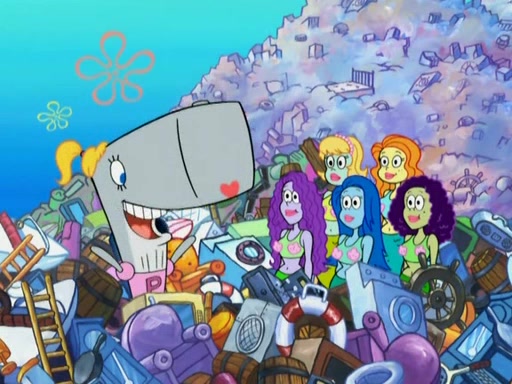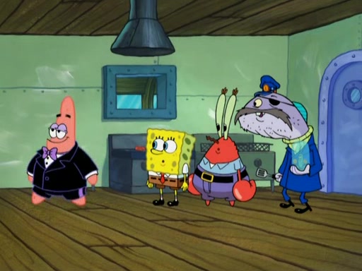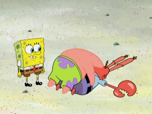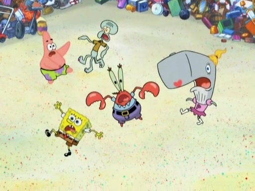 Pearl and Squidward relax, Mr. Krabs looks for change, and SpongeBob and Patrick look for the mermaids. The mermaid quintet only knows how to "surround themselves with cool new stuff" whenever they feel like. They call SpongeBob's dilemma "TNOP" (totally not our problem). SpongeBob then quickly says upon return, "Unfortunately, I was unable to get the information from the aauugh," and being noticeably tired, he simply collapses. Mr. Krabs realizes SpongeBob desperately needs a Krabby Patty. He finds one and feeds it to SpongeBob. He then wonders who made that Krabby Patty. Suspecting that Plankton might have stolen the formula, Mr. Krabs intends on getting back to the Krusty Krab as soon as possible.