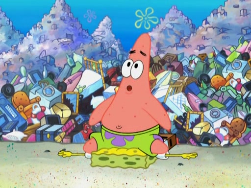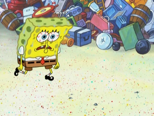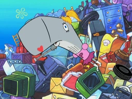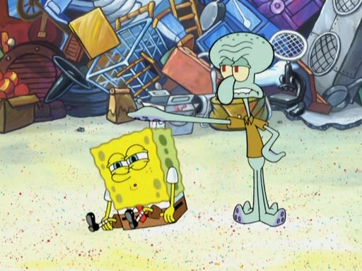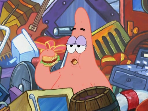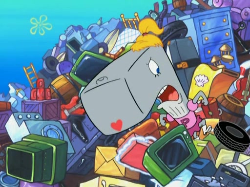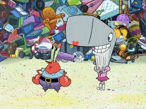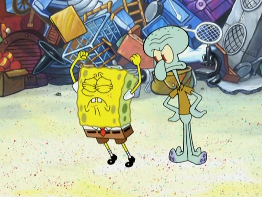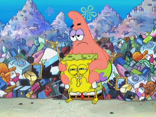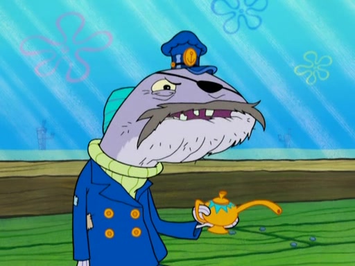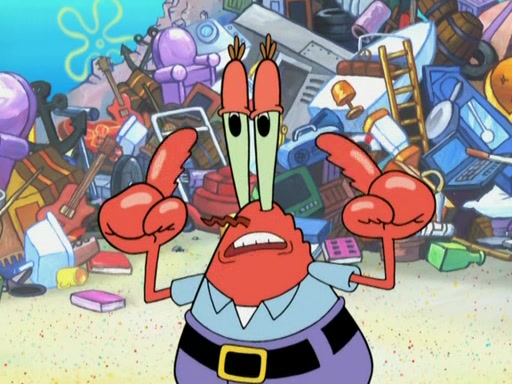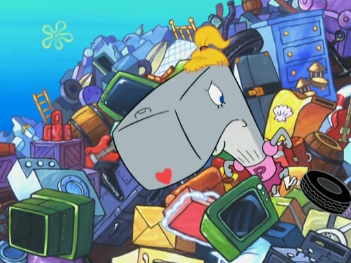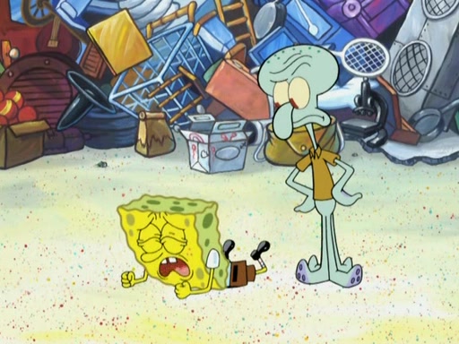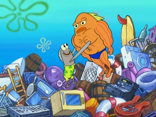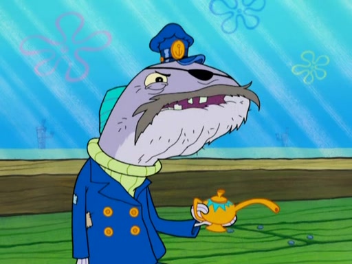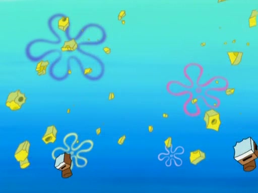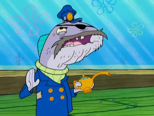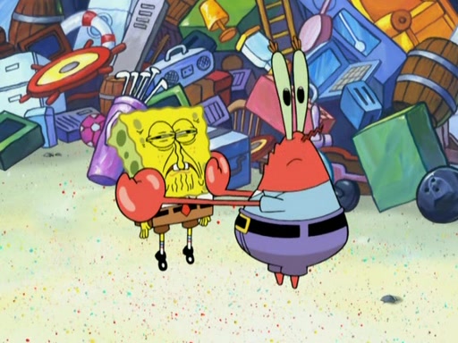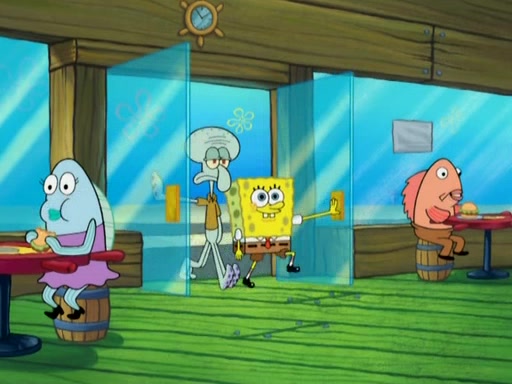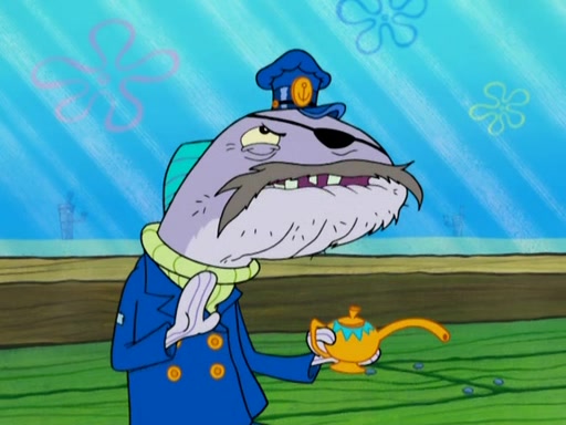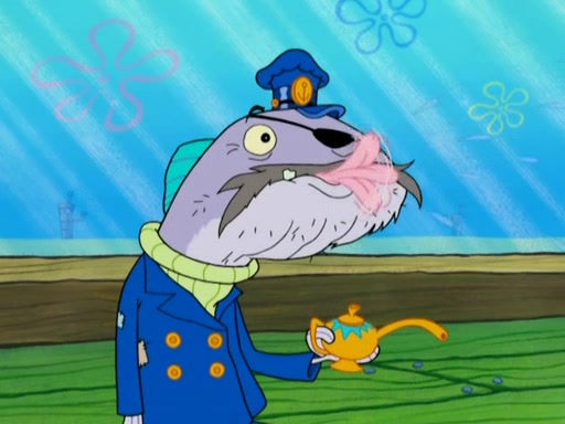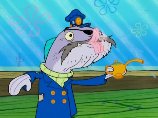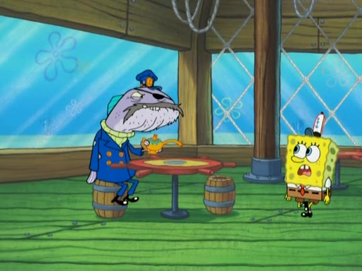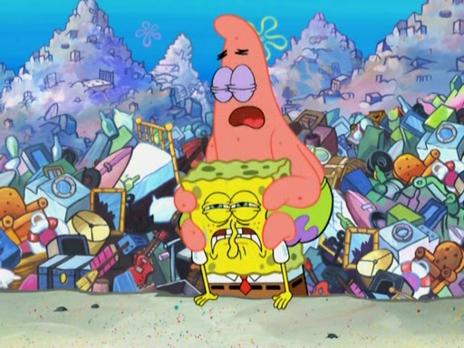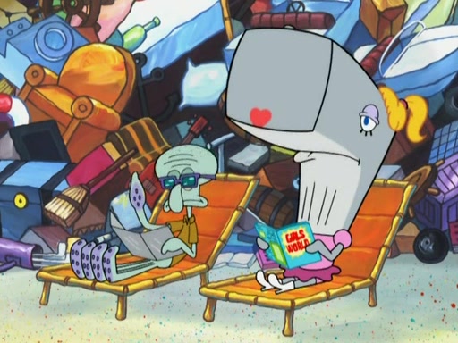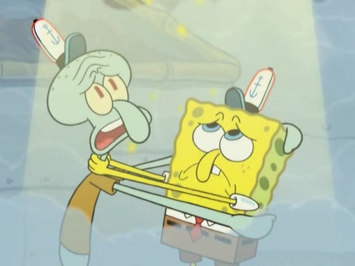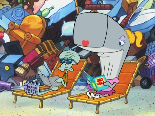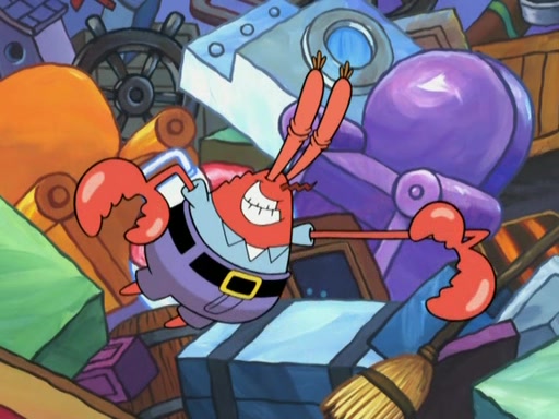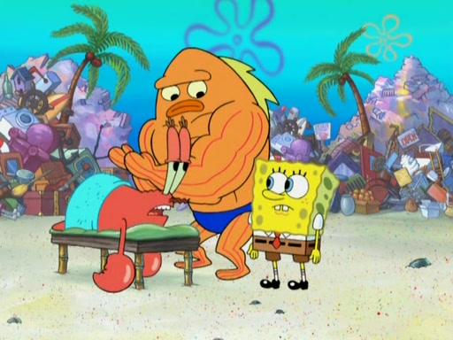 Pearl and Squidward relax, Mr. Krabs looks for change, and SpongeBob and Patrick look for the mermaids. The mermaid quintet only knows how to "surround themselves with cool new stuff" whenever they feel like. They call SpongeBob's dilemma "TNOP" (totally not our problem). SpongeBob then quickly says upon return, "Unfortunately, I was unable to get the information from the aauugh," and being noticeably tired, he simply collapses. Mr. Krabs realizes SpongeBob desperately needs a Krabby Patty. He finds one and feeds it to SpongeBob. He then wonders who made that Krabby Patty. Suspecting that Plankton might have stolen the formula, Mr. Krabs intends on getting back to the Krusty Krab as soon as possible.