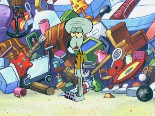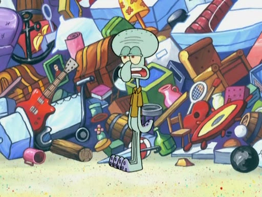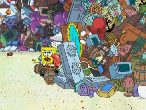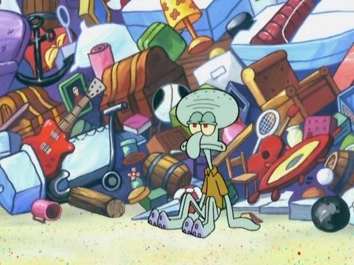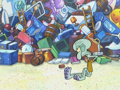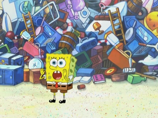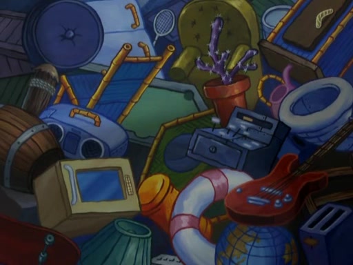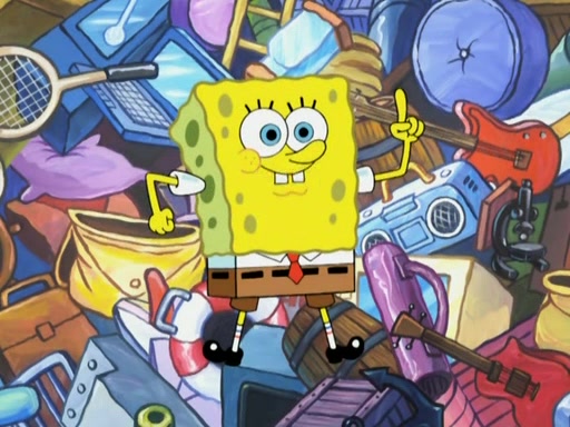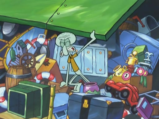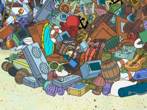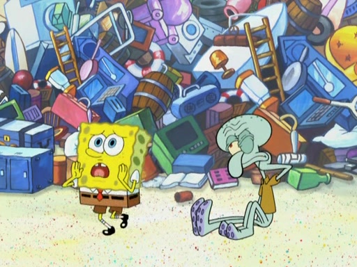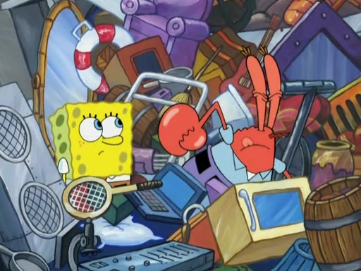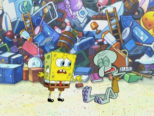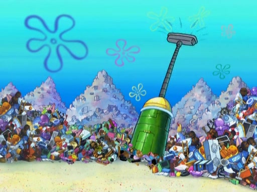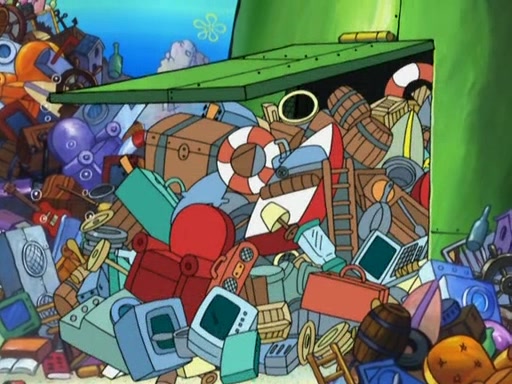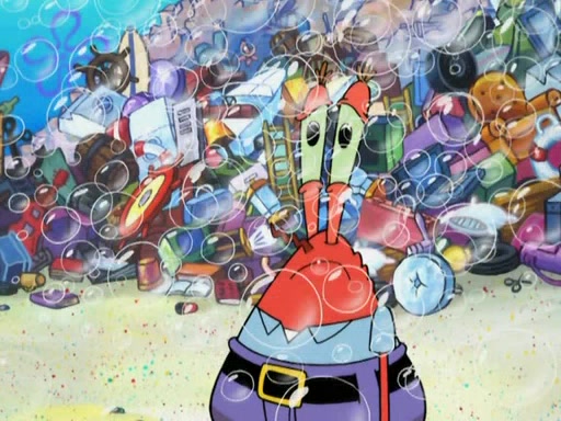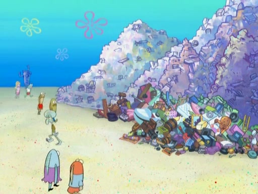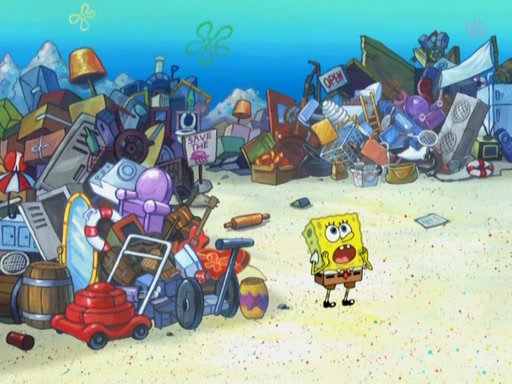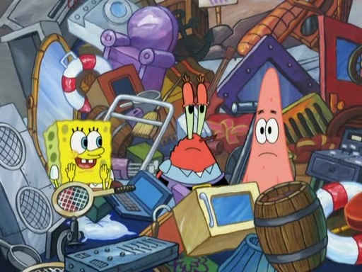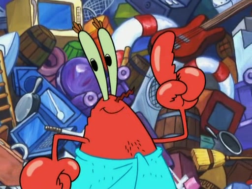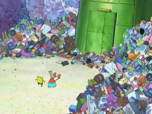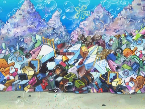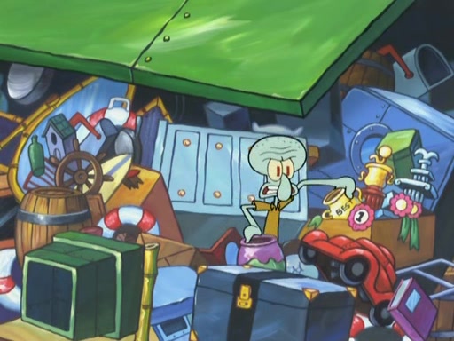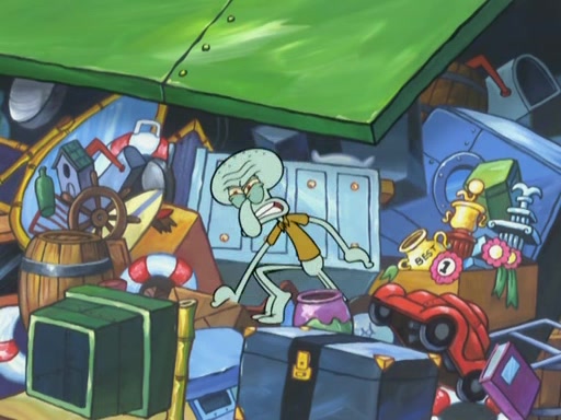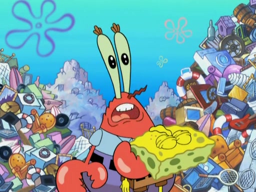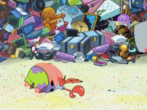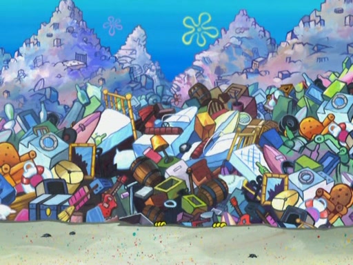 One night in Bikini Bottom, a mysterious fog appears and the voices of mermaids are heard. That morning, SpongeBob realizes his alarm clock, Gary's shell, Squidward's clarinet, Patrick's cuff links, and Mr. Krabs are missing. While investigating, SpongeBob, Squidward, and Patrick are sucked into the triangle. They find Mr. Krabs, who tells them that he loves all the piles of "resellable stuff." He realizes that Pearl is left alone at the Krusty Krab with all his money, but she gets transported to the triangle too.