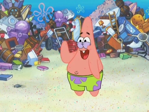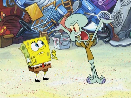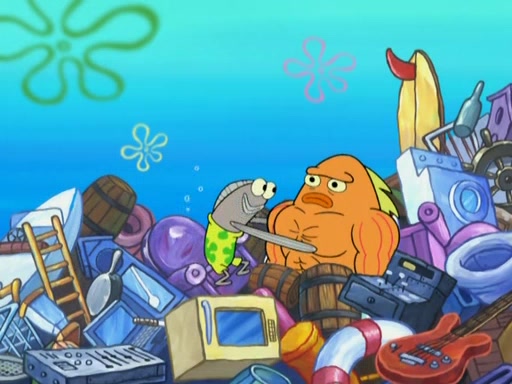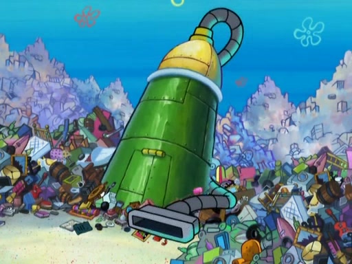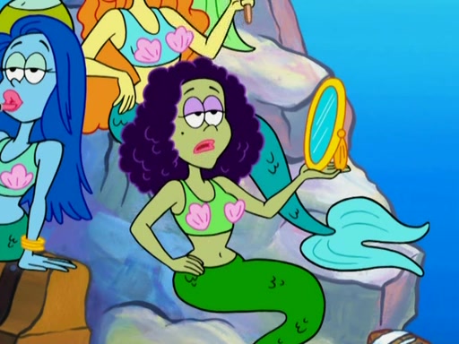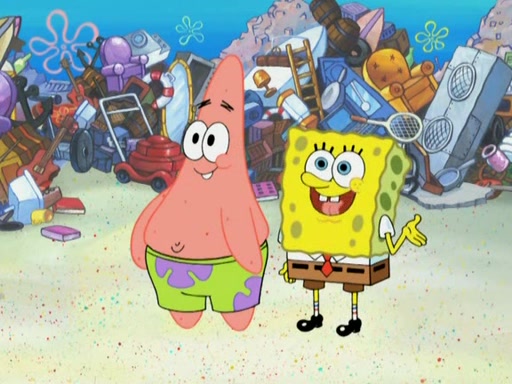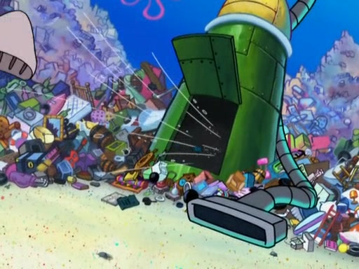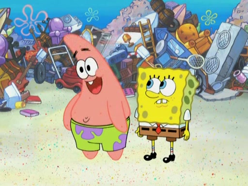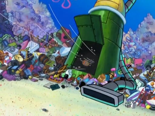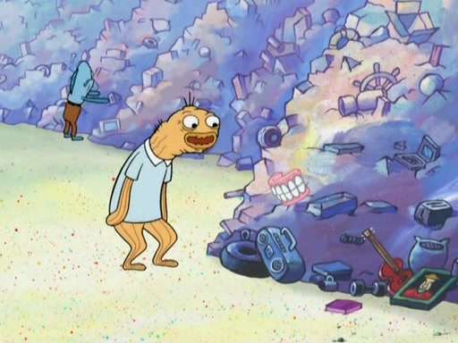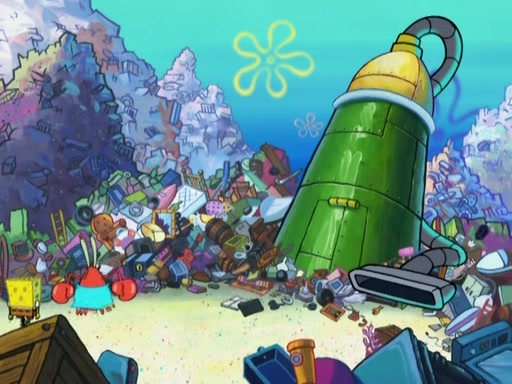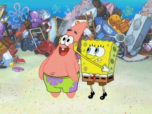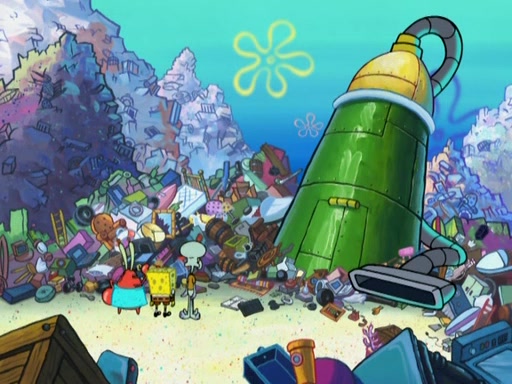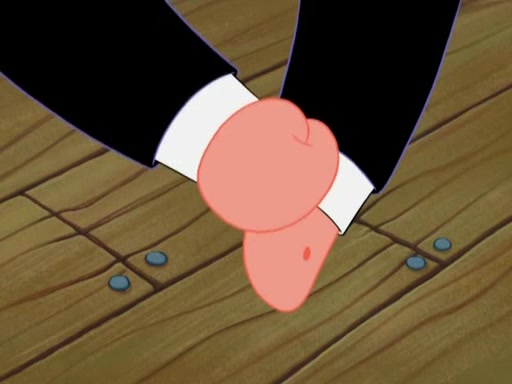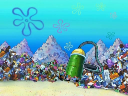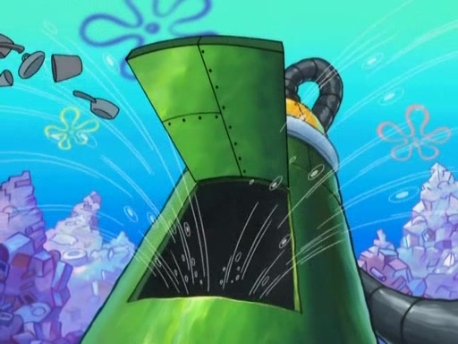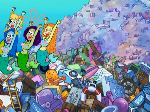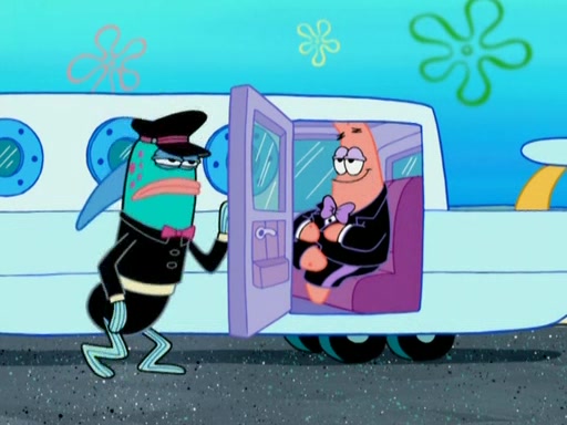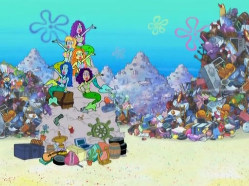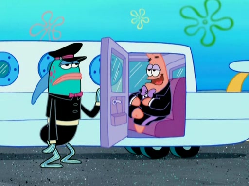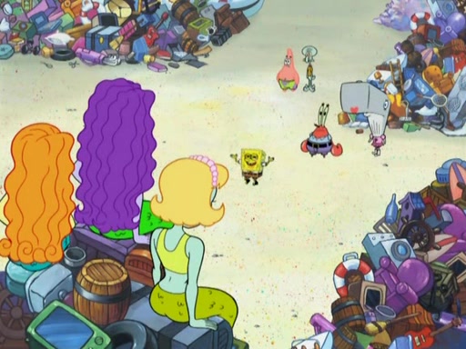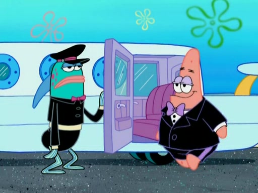 The whole group goes to the mermaids, Pearl wants to go to the mall, and the mermaids want to go too. SpongeBob has an idea and hypothesizes that if the mermaids sing their song backwards, it will also reverse the effects of the vacuum, and so the mermaids sing backwards. They get sucked back to Bikini Bottom. Pearl and the mermaids run to the mall while other people look into the pile to find all of their stuff. While the people are reclaiming their property, Mr. Krabs wants to see whether Plankton is actually trying to steal the formula again. He finds Charles who SpongeBob met earlier. It seemed that he caught Plankton trying to steal the formula. Patrick finds his cuff links and puts it on his tuxedo. He says to the driver "Home, Reginald" and then steps inside the limo and drives off.