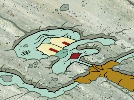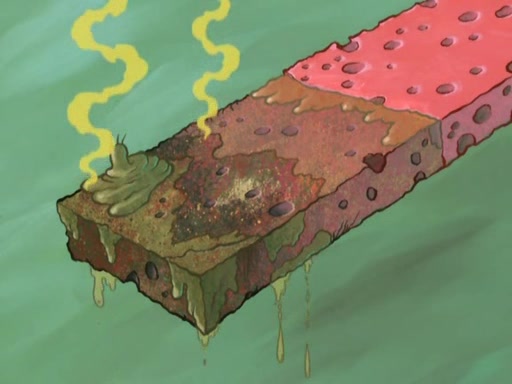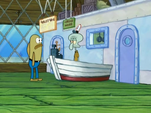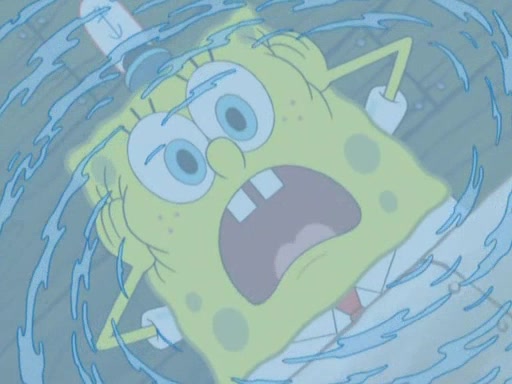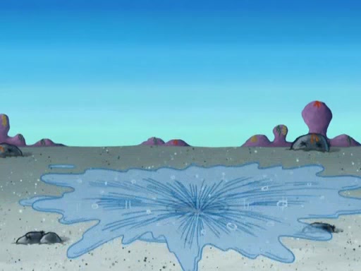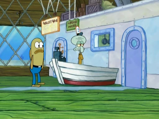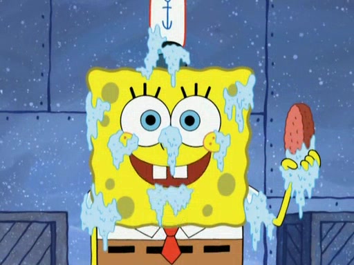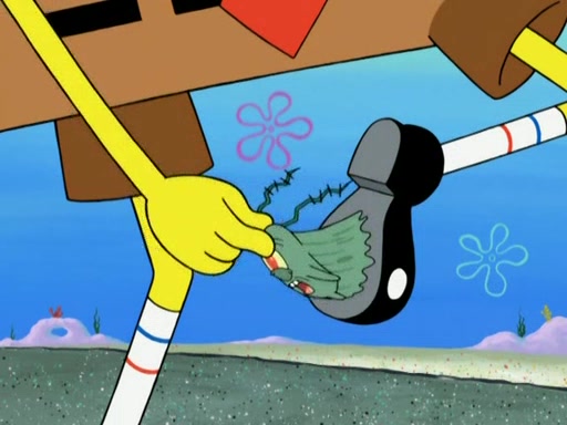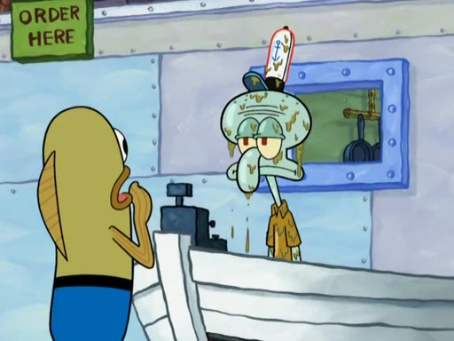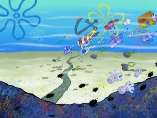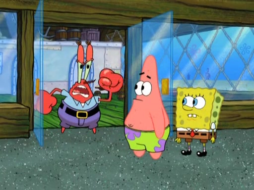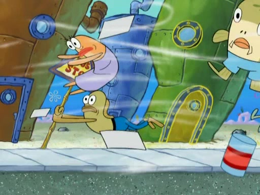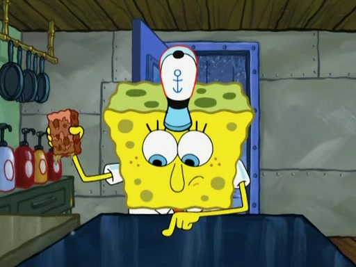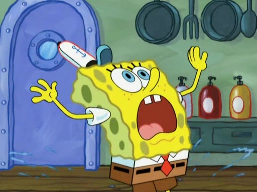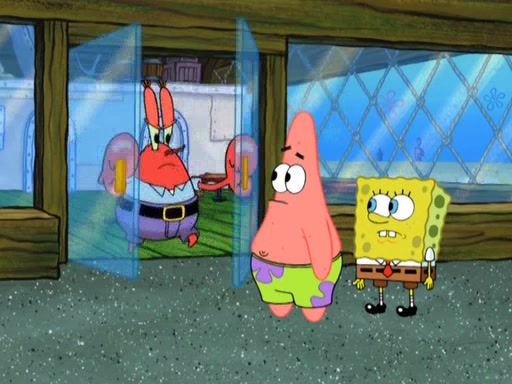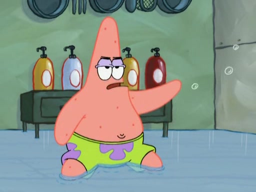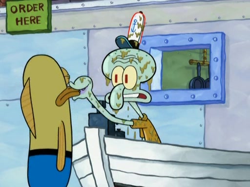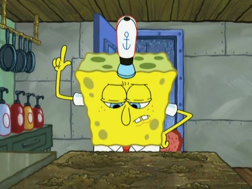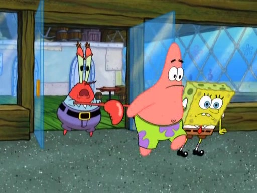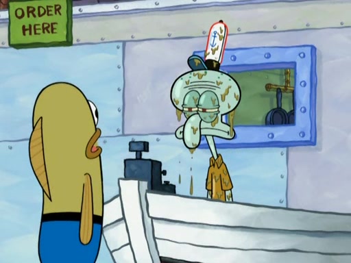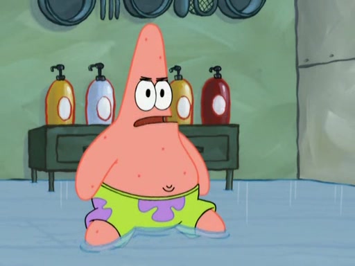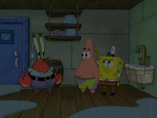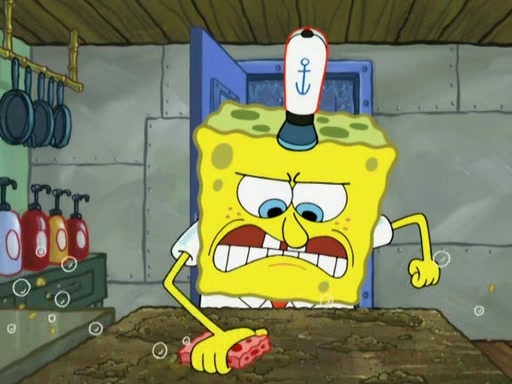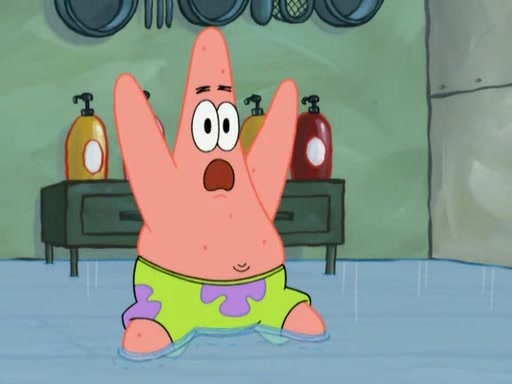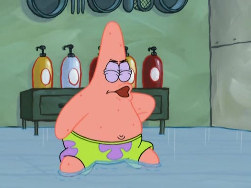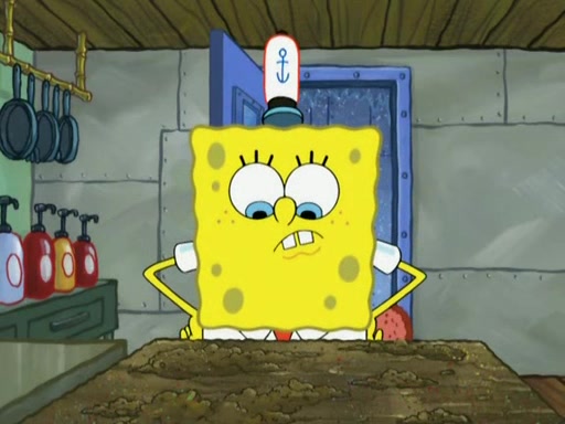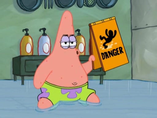 One day in Bikini Bottom, SpongeBob wipes the grill with a sponge (made from part of his own tongue) at the Krusty Krab. He proclaims that it is freshly clean and tries to convince a customer to eat a Krabby Patty that was on the grill. When SpongeBob went back inside to cook that patty, the customer asks Squidward why he doesn't want a Krabby Patty, and he replies that he has seen what SpongeBob cleans the grill with. It goes back to SpongeBob, who is on his way to the freezer for a patty when he slips on a puddle of water. Upon closer inspection, SpongeBob observes that the flood is coming from the sink, which is clogged with water. As he is trying to figure out how to unclog the drain, Patrick comes in and slips, but because he was his normal clumsy self.