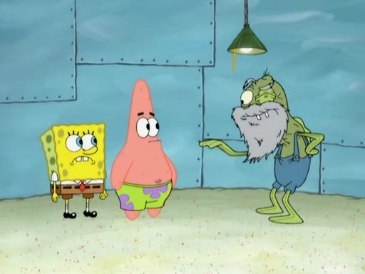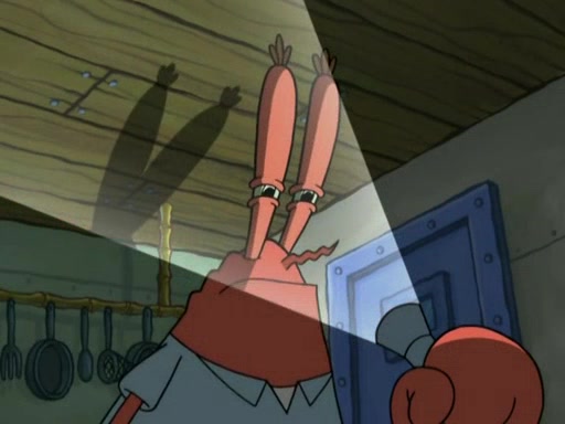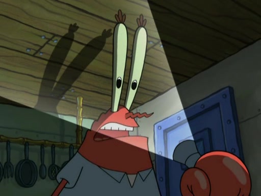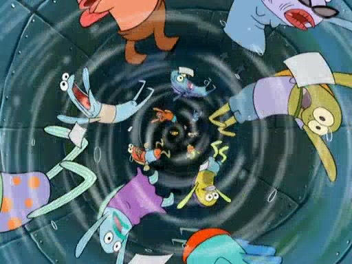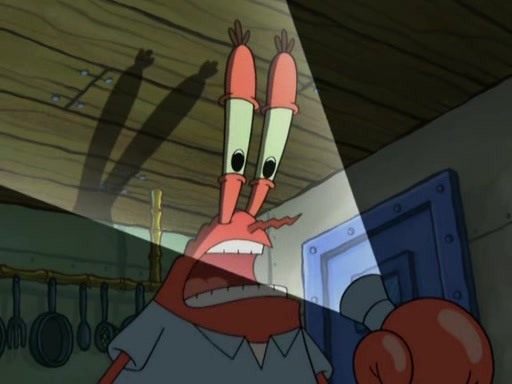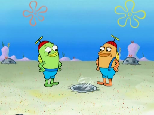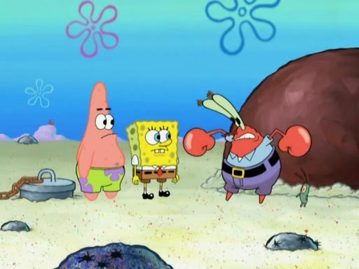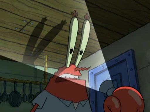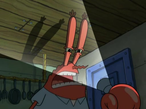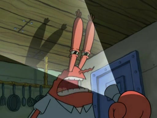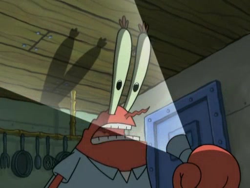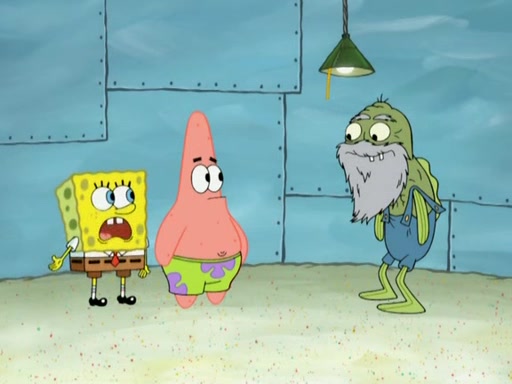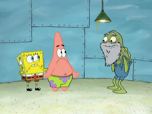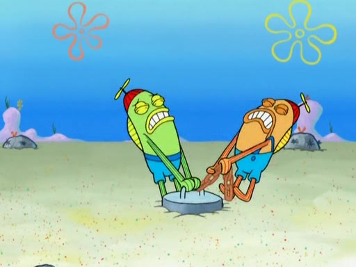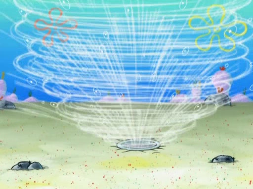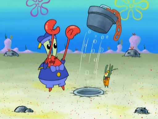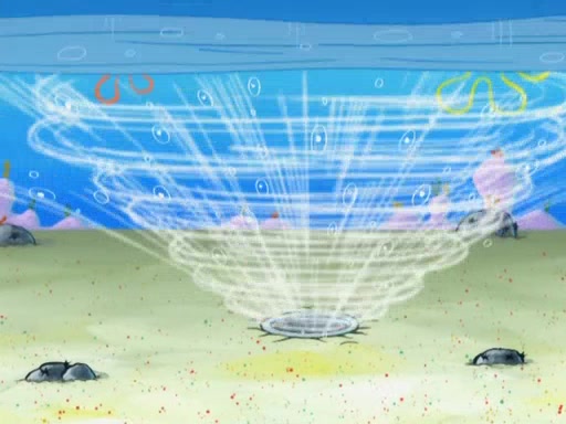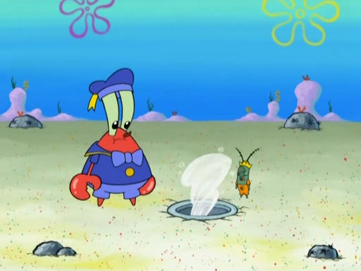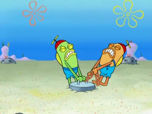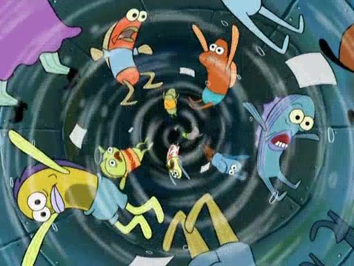 Eventually, Mr. Krabs overhears them trying to pull the drain, and stops them before they have a chance. They hear the story of the Main Drain, and Mr. Krabs tells the story. The story was that there was a plug that two kids supposedly pulled long ago that ended the world of Bikini Bottom. When they ask him where it is, he becomes nervous and tells them to go away. The two go outside and SpongeBob steps on Plankton, and then they ask him about it. He becomes nervous also and tells them to go away. SpongeBob says that he heard it from Mr. Krabs, and Plankton claims Mr. Krabs was lying. They ask him where it is and again, no results. They turn to Old Man Jenkins, but he yields no results.