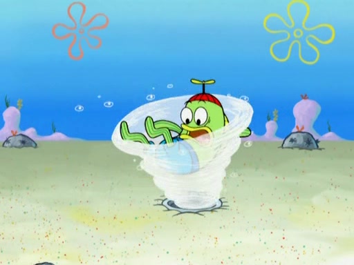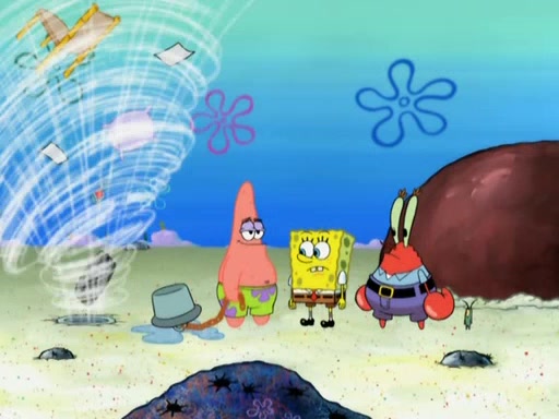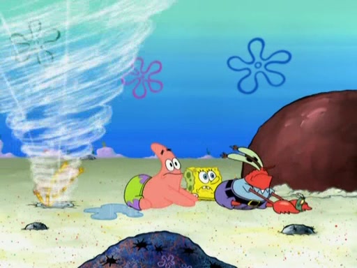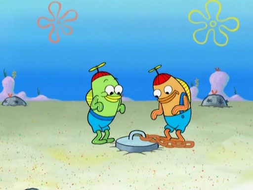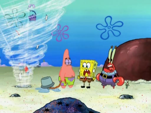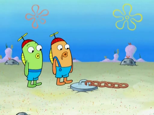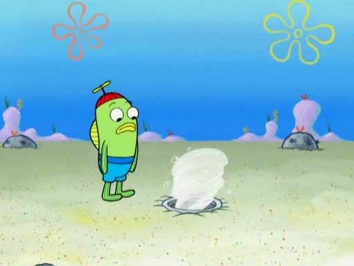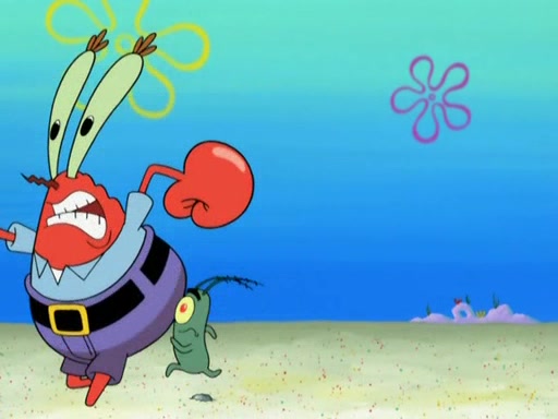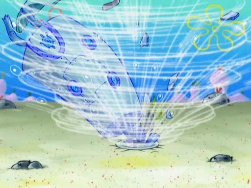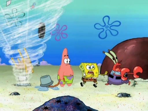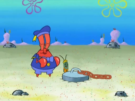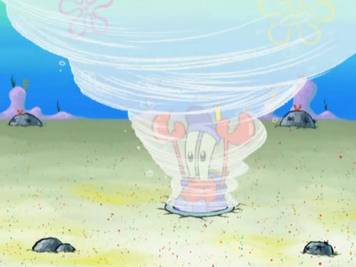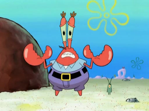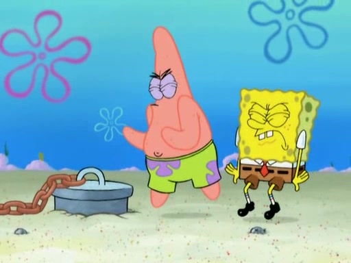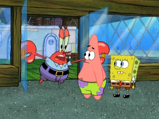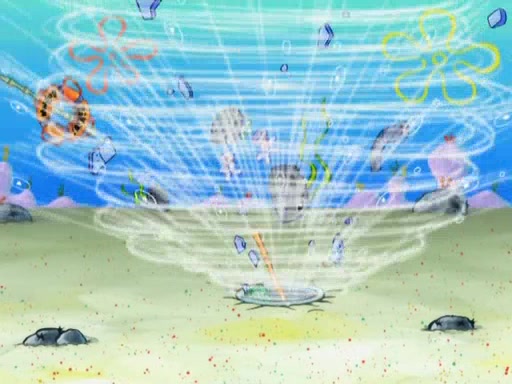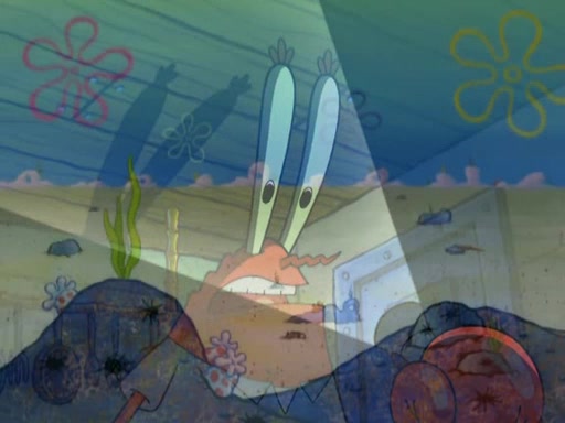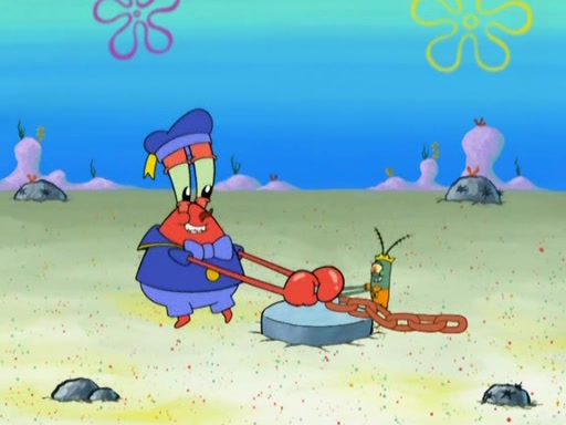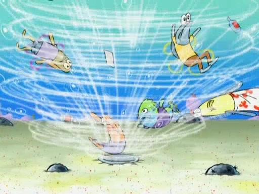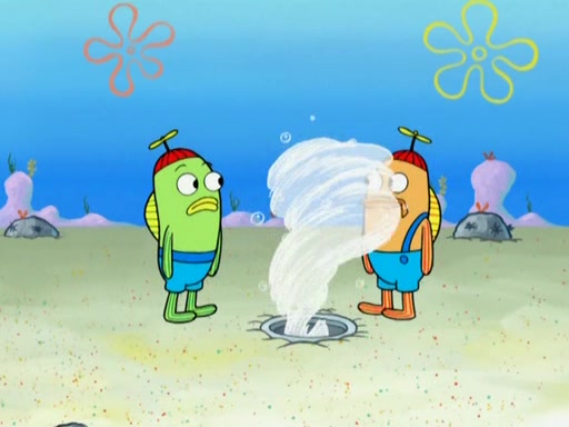 Eventually, Mr. Krabs overhears them trying to pull the drain, and stops them before they have a chance. They hear the story of the Main Drain, and Mr. Krabs tells the story. The story was that there was a plug that two kids supposedly pulled long ago that ended the world of Bikini Bottom. When they ask him where it is, he becomes nervous and tells them to go away. The two go outside and SpongeBob steps on Plankton, and then they ask him about it. He becomes nervous also and tells them to go away. SpongeBob says that he heard it from Mr. Krabs, and Plankton claims Mr. Krabs was lying. They ask him where it is and again, no results. They turn to Old Man Jenkins, but he yields no results.