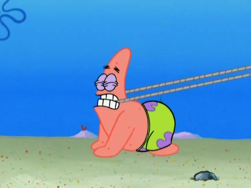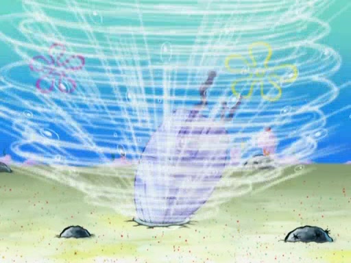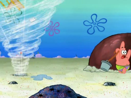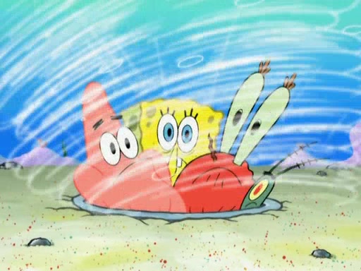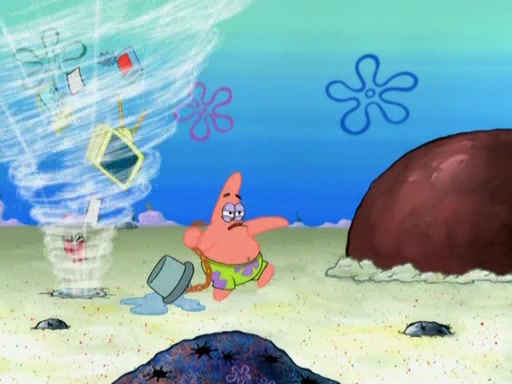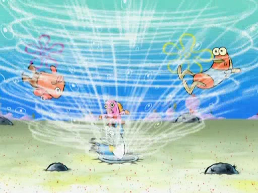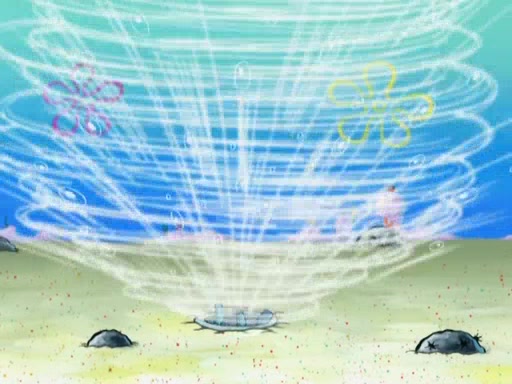 Patrick then sits up in his bed, after hearing SpongeBob's story of the drain, and claiming it's the most realistic story he has ever heard, indicating everything happens on the episode was only SpongeBob's story.