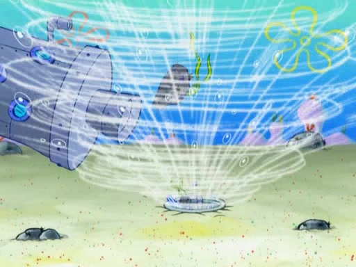 Then they go on the adventure for the plug by dragging Patrick's house. Just before they pull the plug, Mr. Krabs and Plankton stop them and tell the story of how they were the ones that pulled the plug when they were younger. They explain that they lied because they didn't want SpongeBob and Patrick to look for it. Unfortunately, Patrick already pulled the plug and everything (including themselves and the Bikini Bottomites) was sucked into the drain.