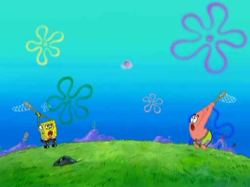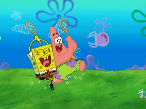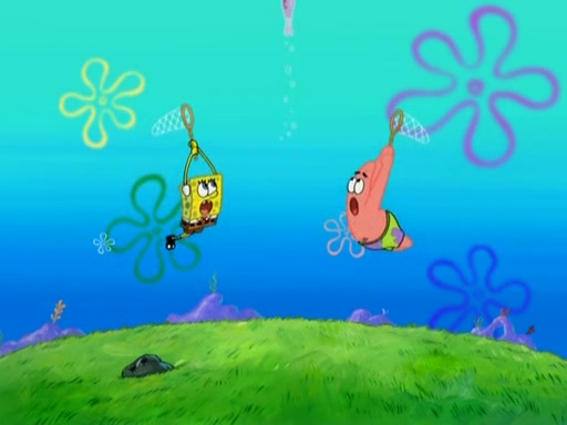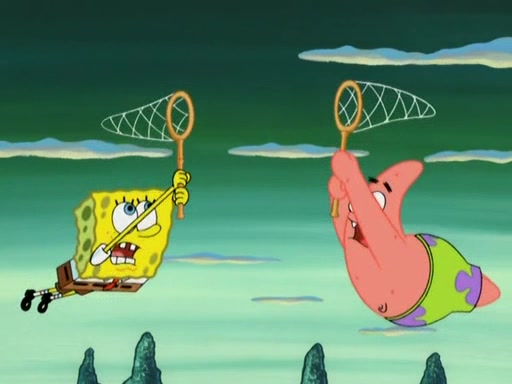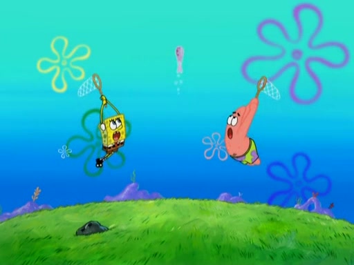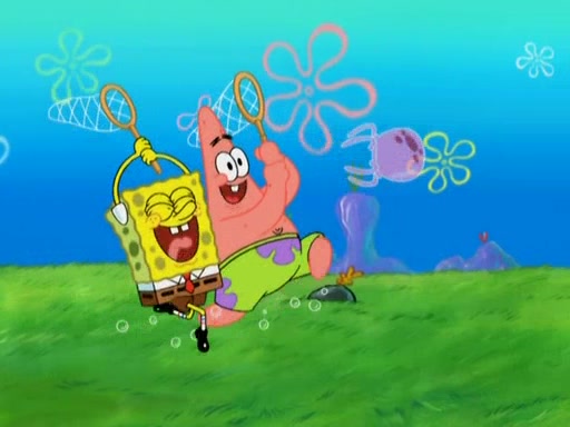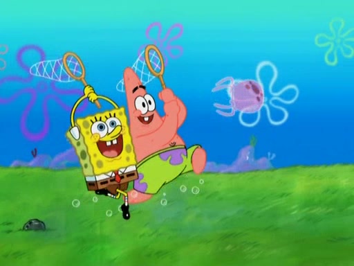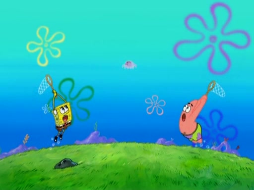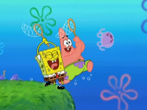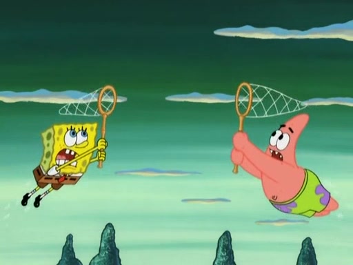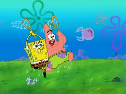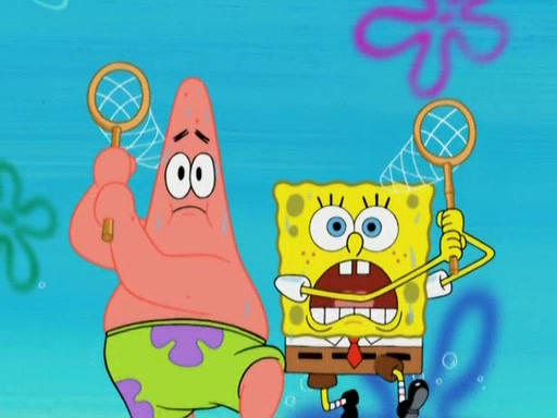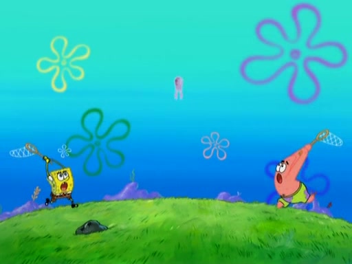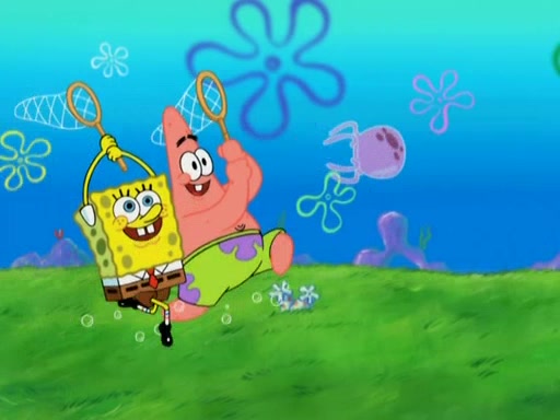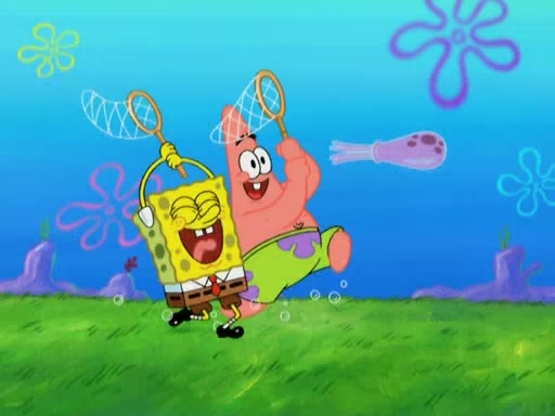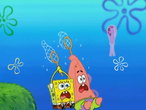After four days, SpongeBob and Patrick are still silently waiting for the jellyfishes to move. Finally, they swim away, and the chase is on! The plan is for SpongeBob to take one side, and Patrick then takes the other. But, as both approach the jellyfish, they end up colliding, letting the jellyfish escape.