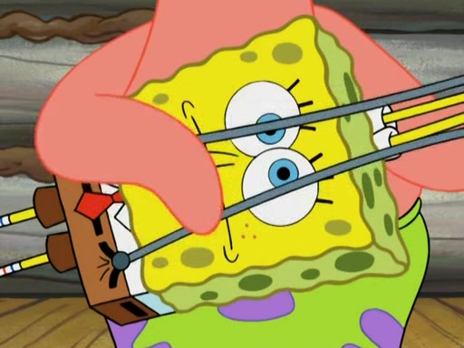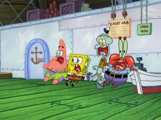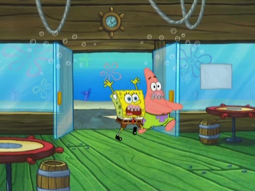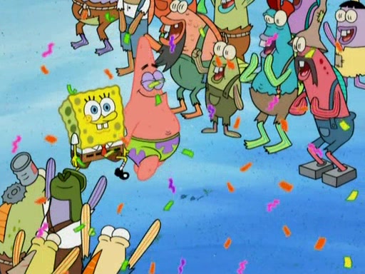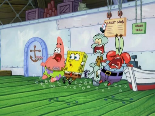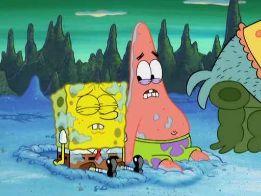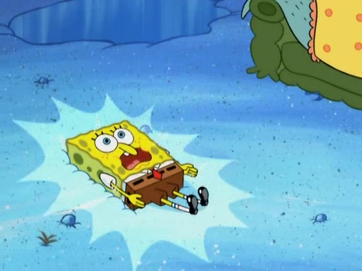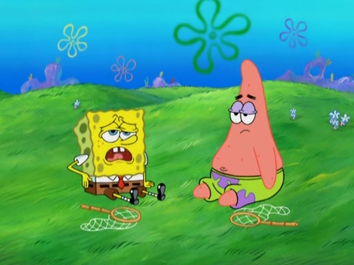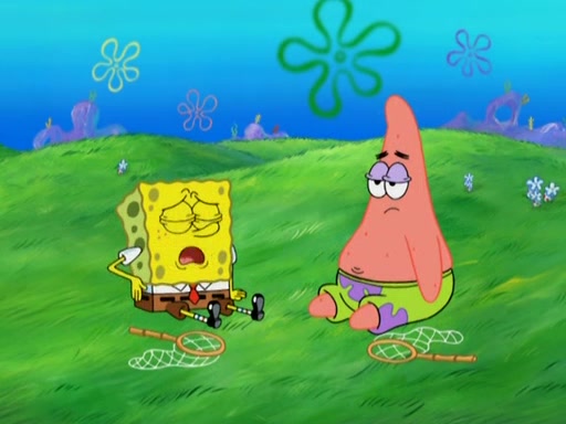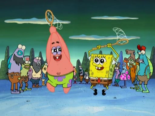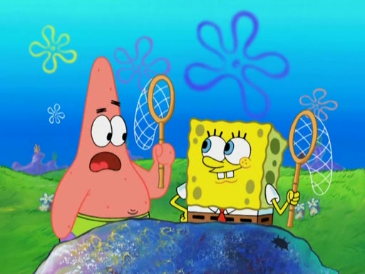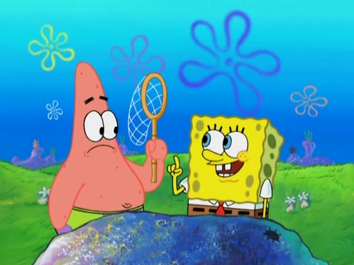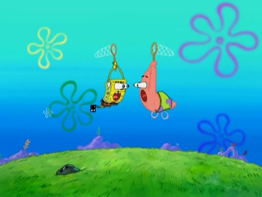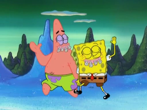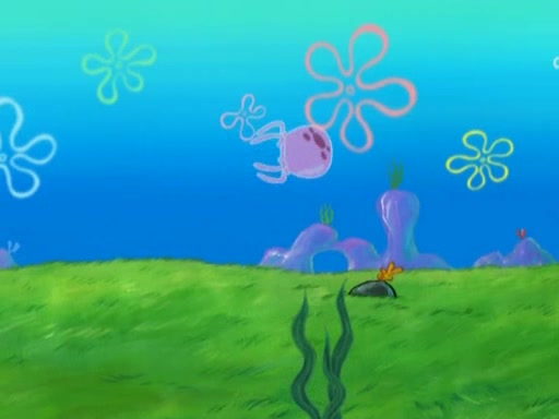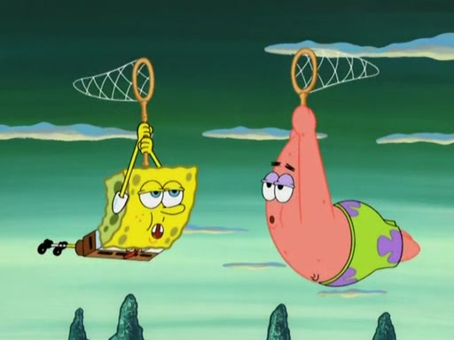 After four days, SpongeBob and Patrick are still silently waiting for the jellyfishes to move. Finally, they swim away, and the chase is on! The plan is for SpongeBob to take one side, and Patrick then takes the other. But, as both approach the jellyfish, they end up colliding, letting the jellyfish escape.