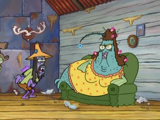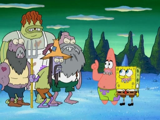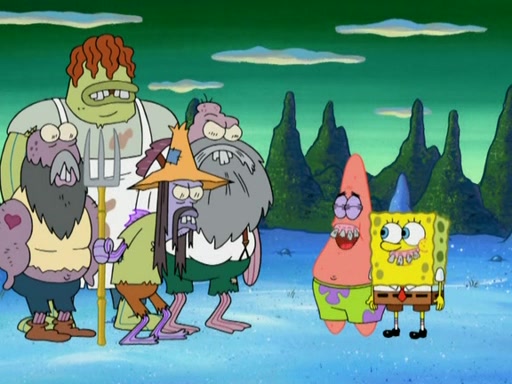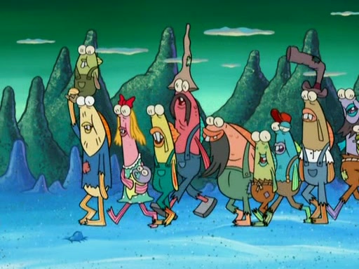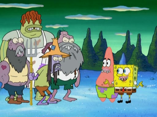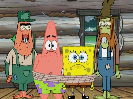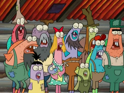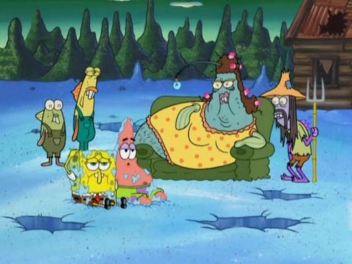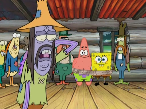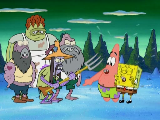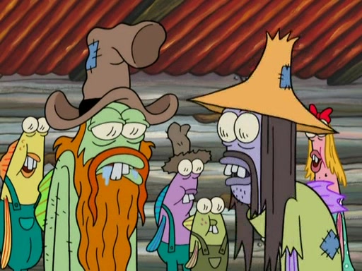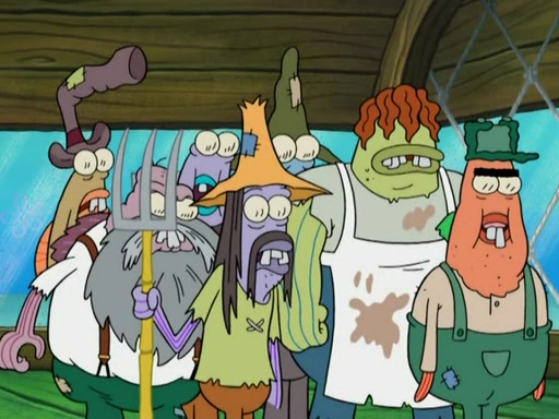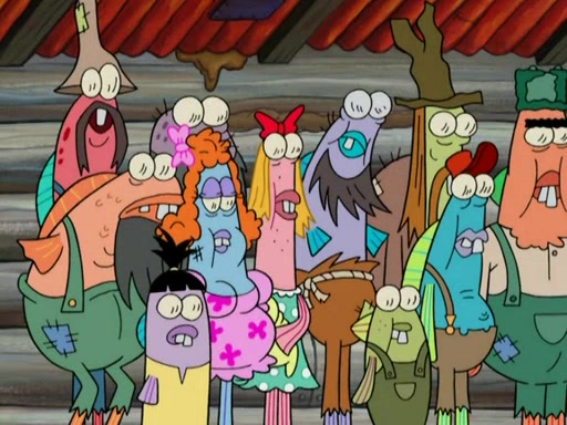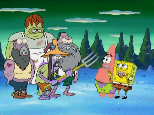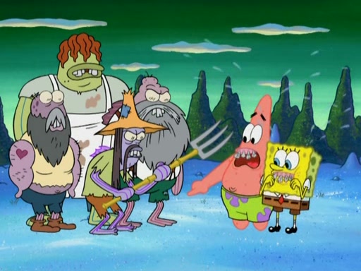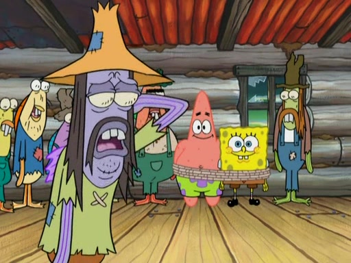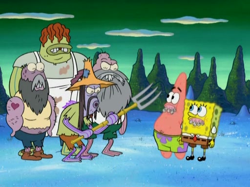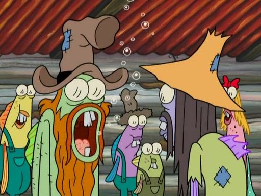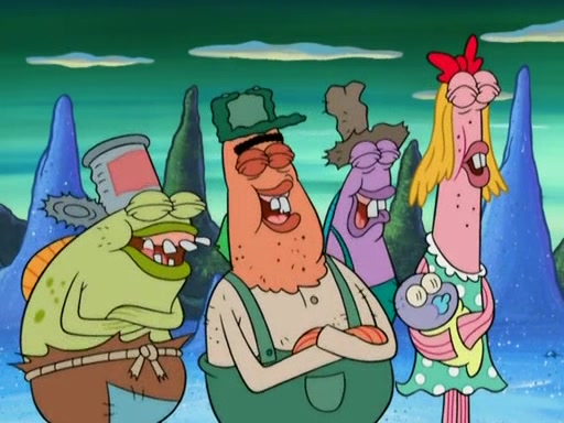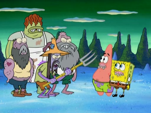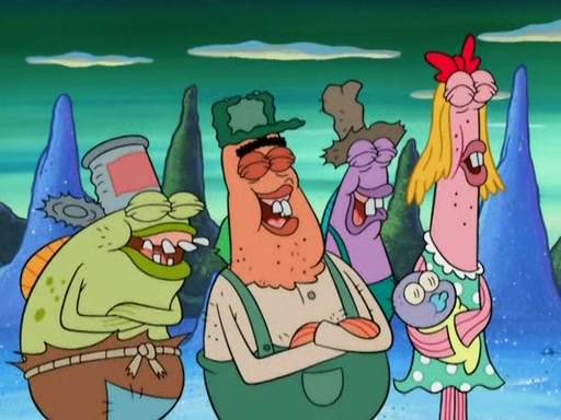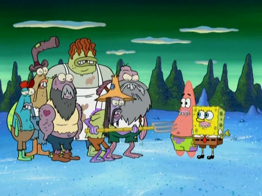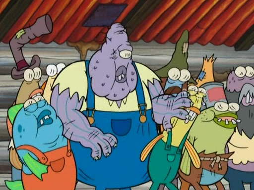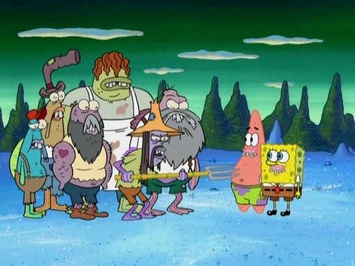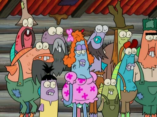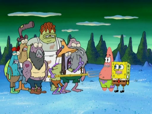 SpongeBob gives a short speech and attempts to leave, however, they are stopped by a group of trenchbillies. One of the trenchbillies says that they have to take care of Ma Angler for the rest of their lives. SpongeBob and Patrick try to convince them to let them leave but the trenchbillies won't let them.