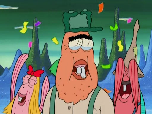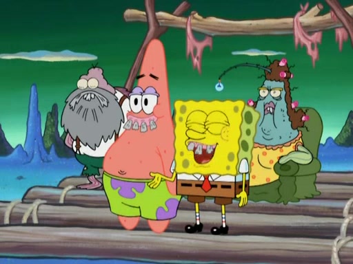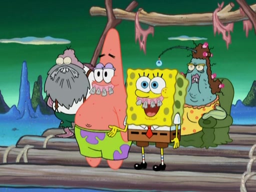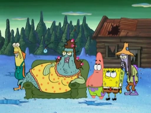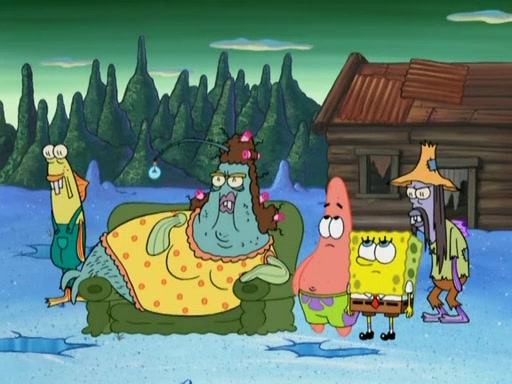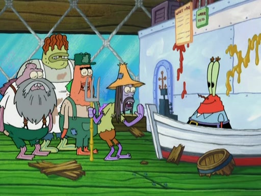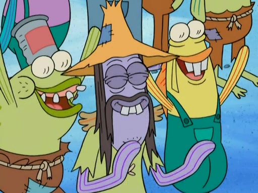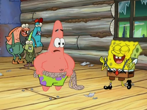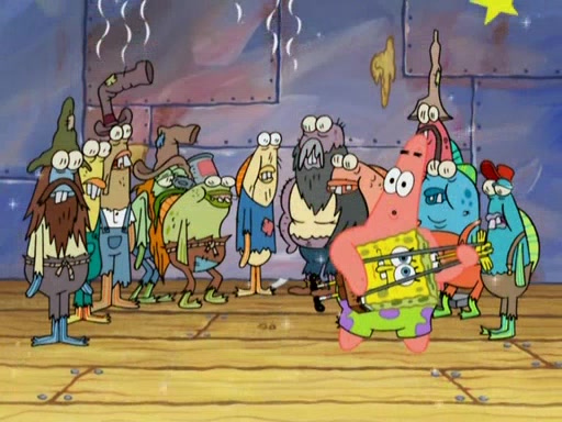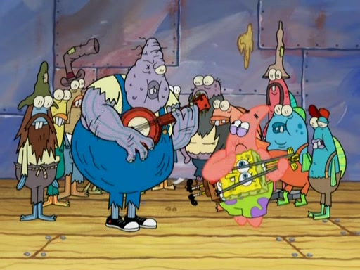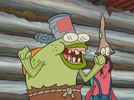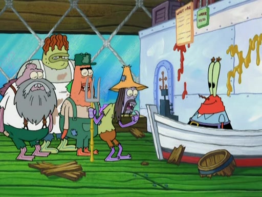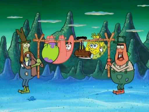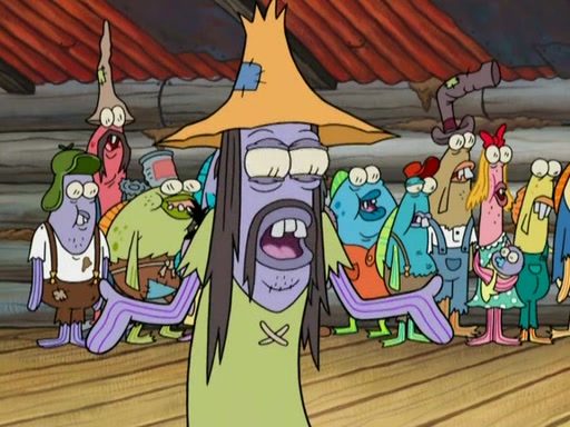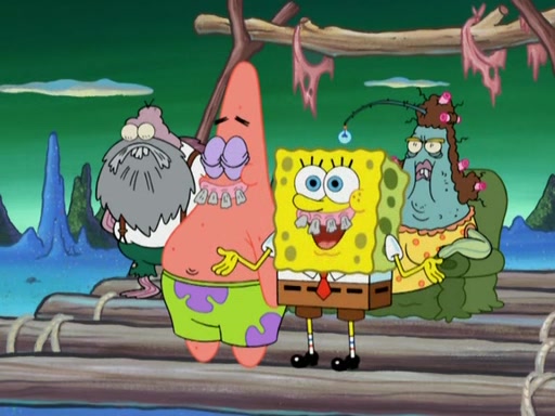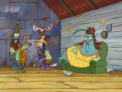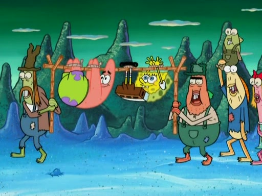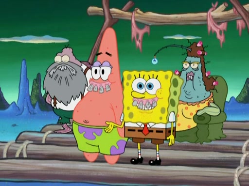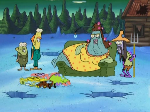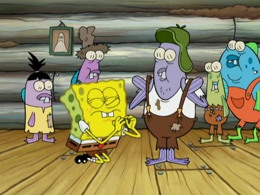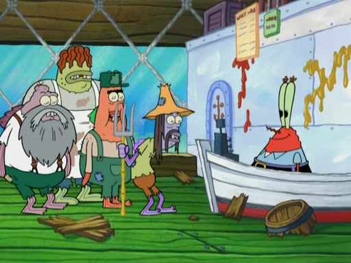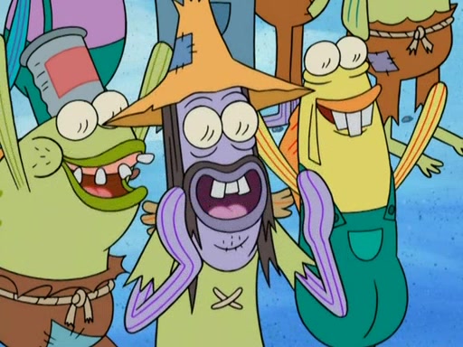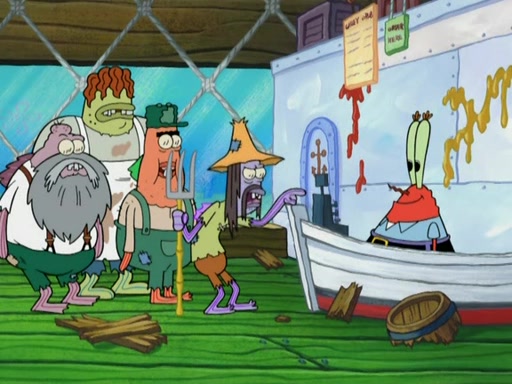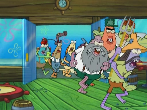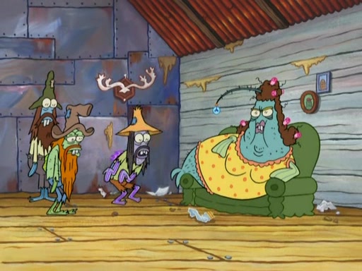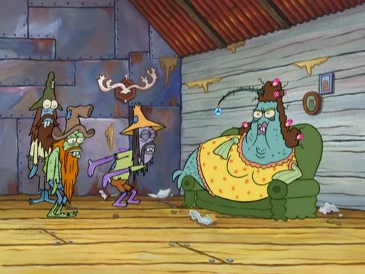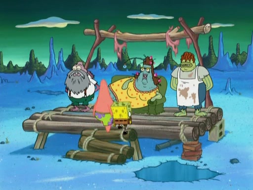SpongeBob gives a short speech and attempts to leave, however, they are stopped by a group of trenchbillies. One of the trenchbillies says that they have to take care of Ma Angler for the rest of their lives. SpongeBob and Patrick try to convince them to let them leave but the trenchbillies won't let them.