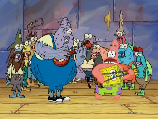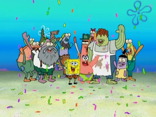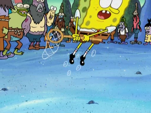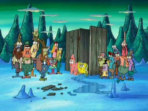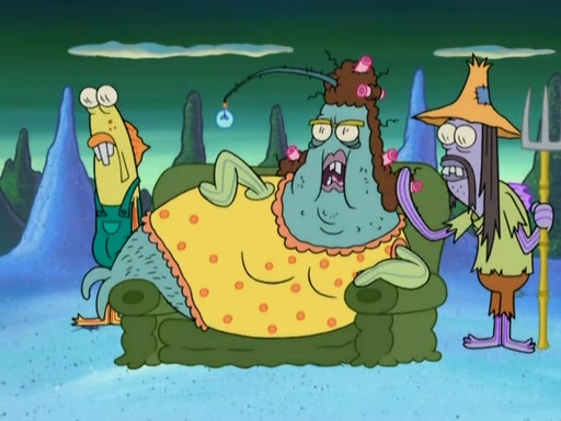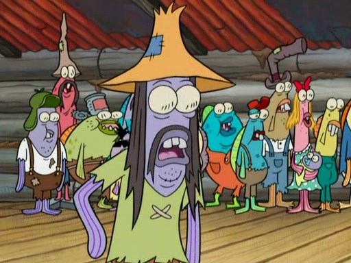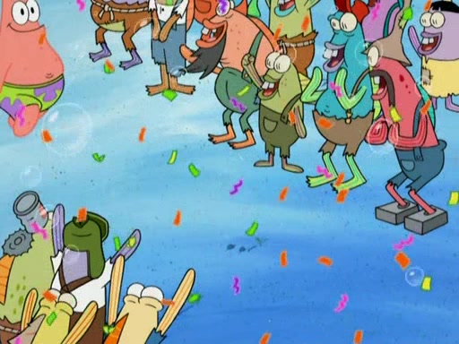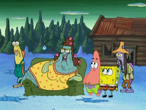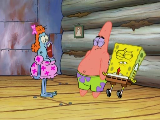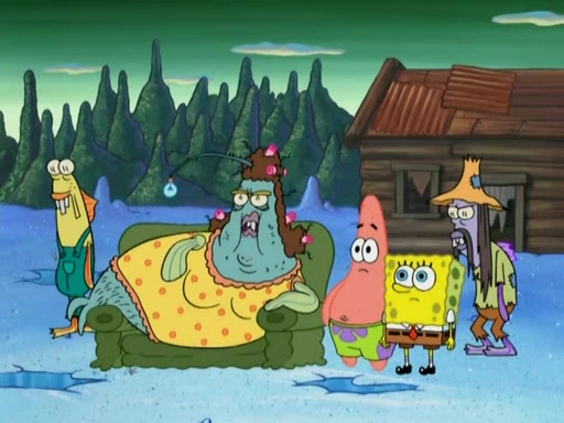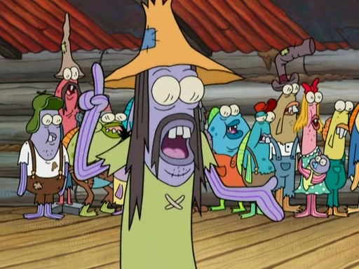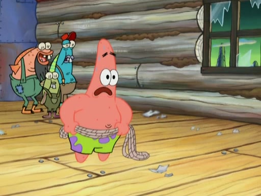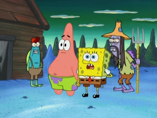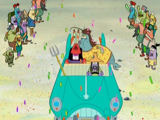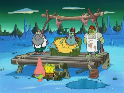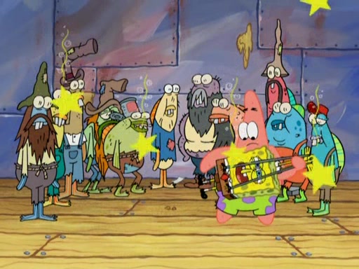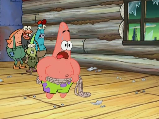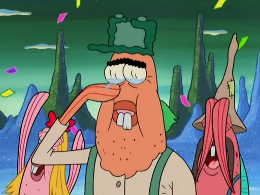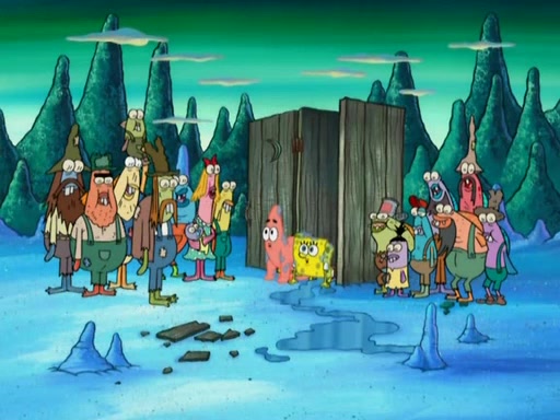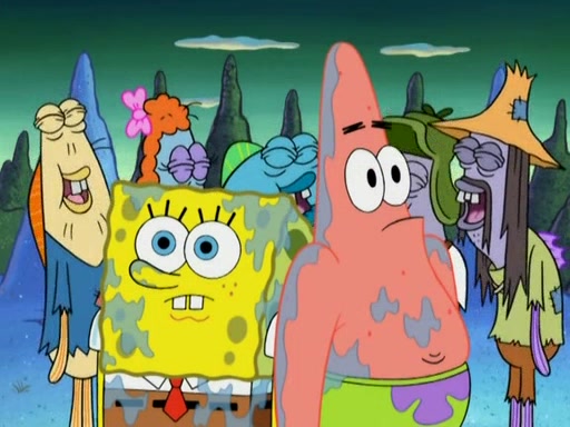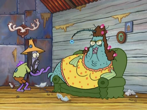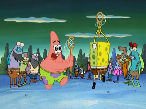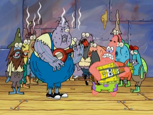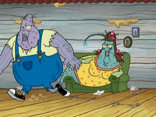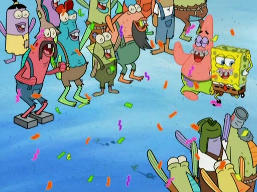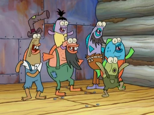 SpongeBob gives a short speech and attempts to leave, however, they are stopped by a group of trenchbillies. One of the trenchbillies says that they have to take care of Ma Angler for the rest of their lives. SpongeBob and Patrick try to convince them to let them leave but the trenchbillies won't let them.