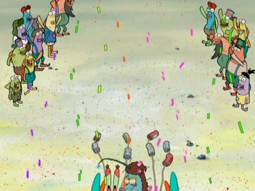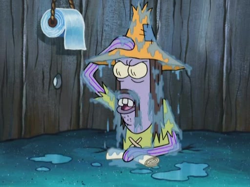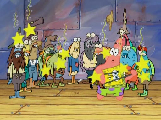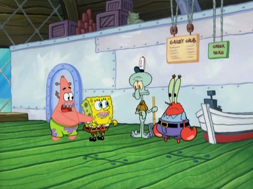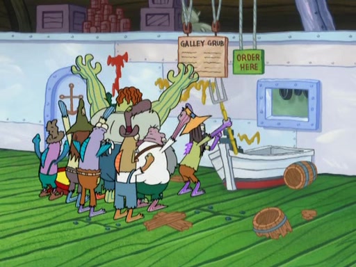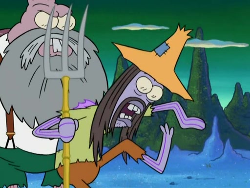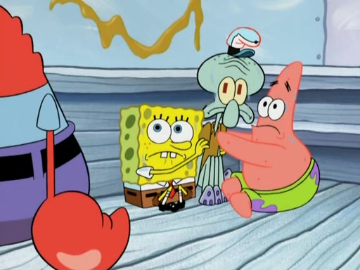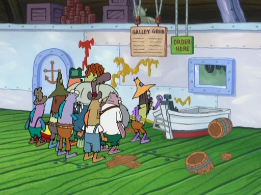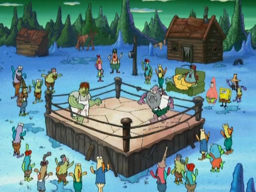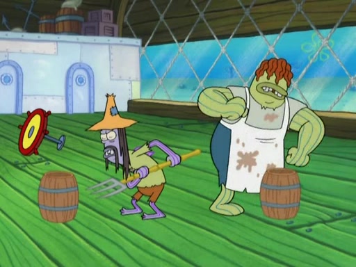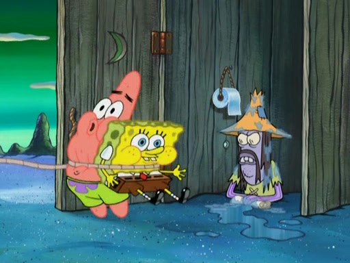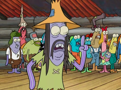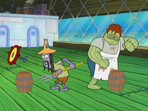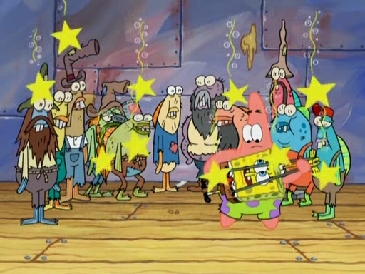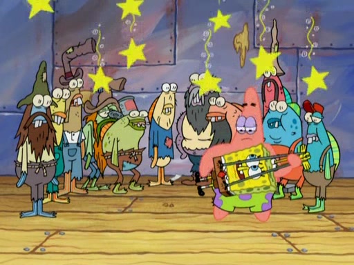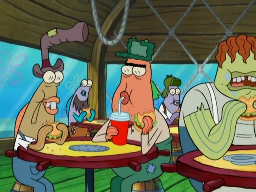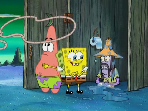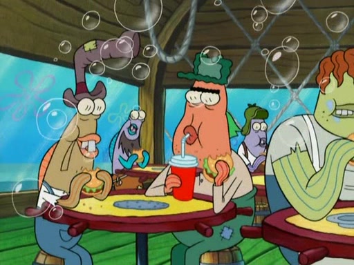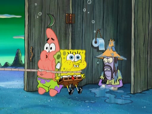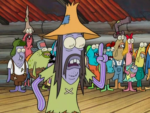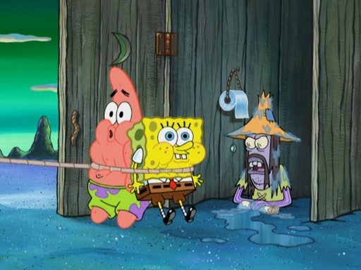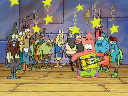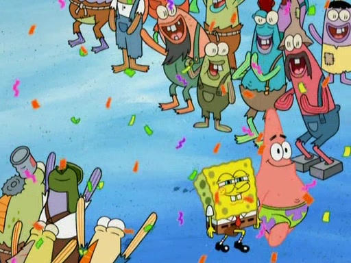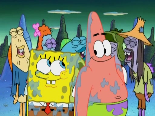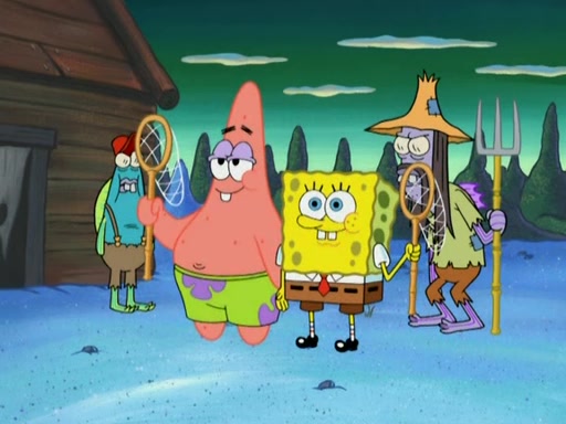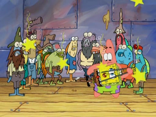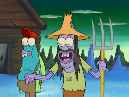 SpongeBob gives a short speech and attempts to leave, however, they are stopped by a group of trenchbillies. One of the trenchbillies says that they have to take care of Ma Angler for the rest of their lives. SpongeBob and Patrick try to convince them to let them leave but the trenchbillies won't let them.