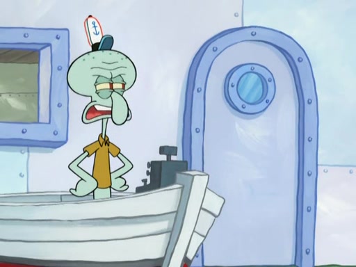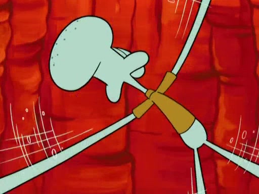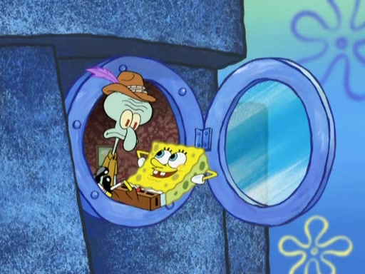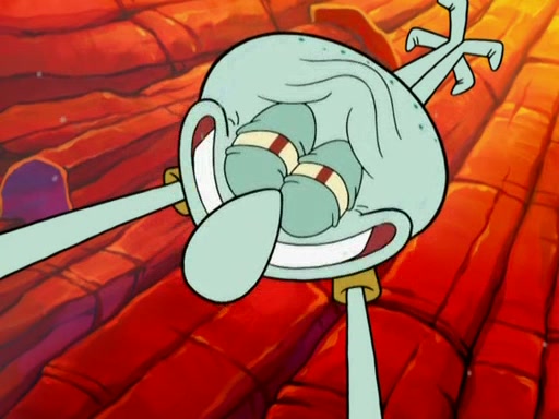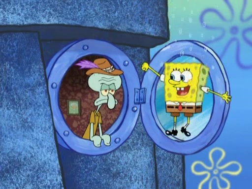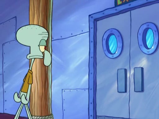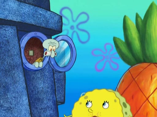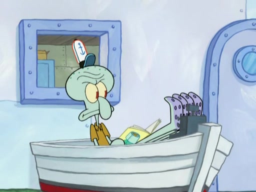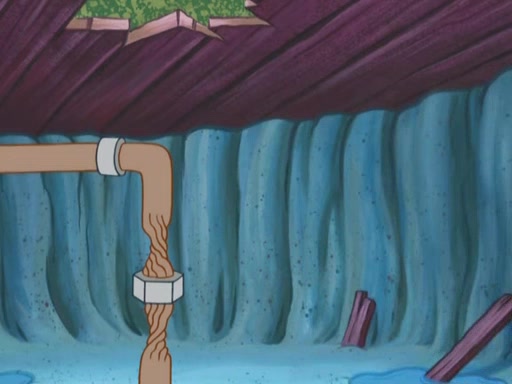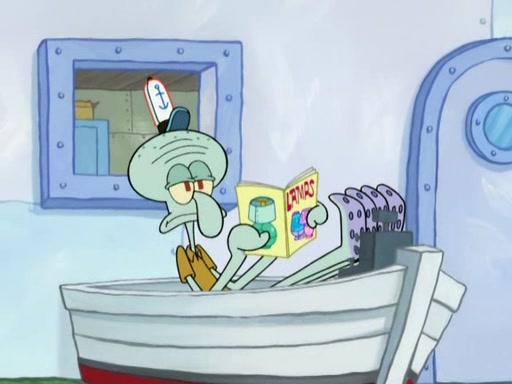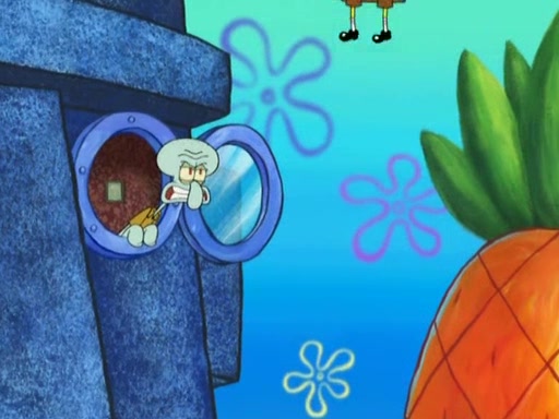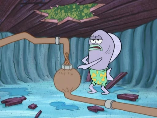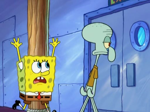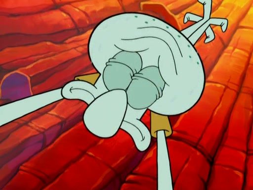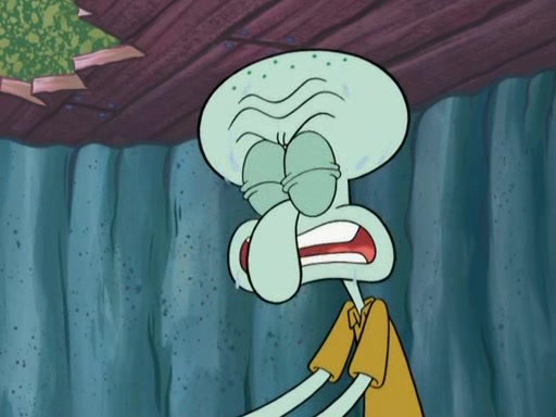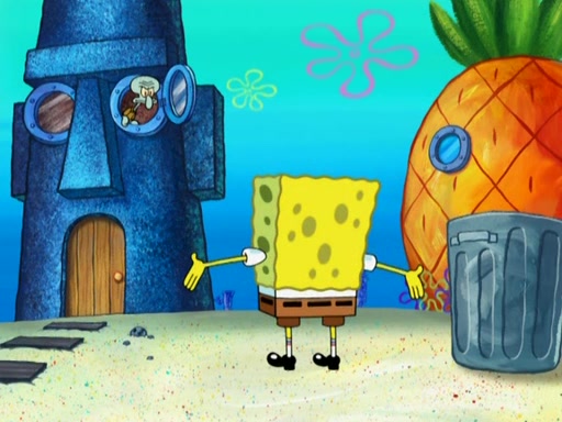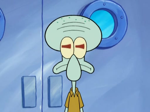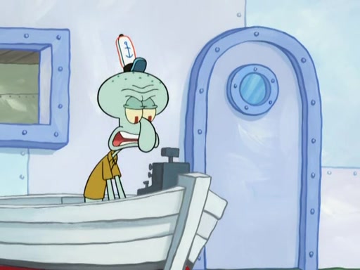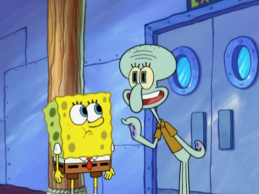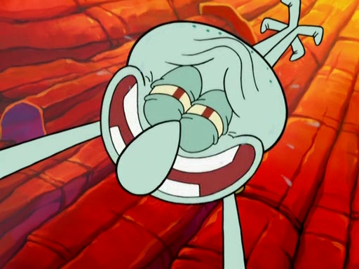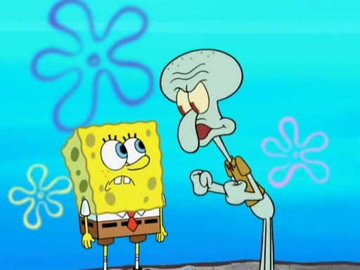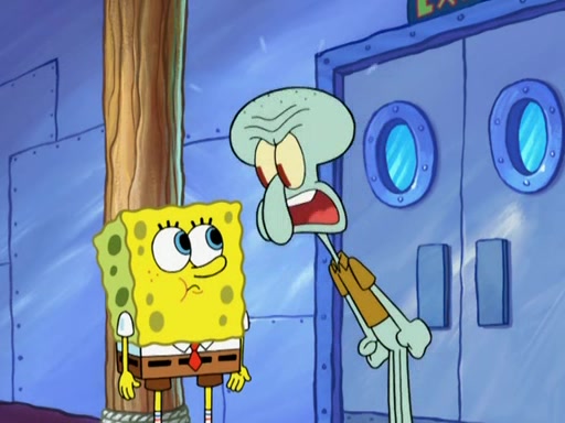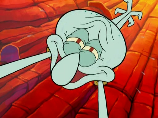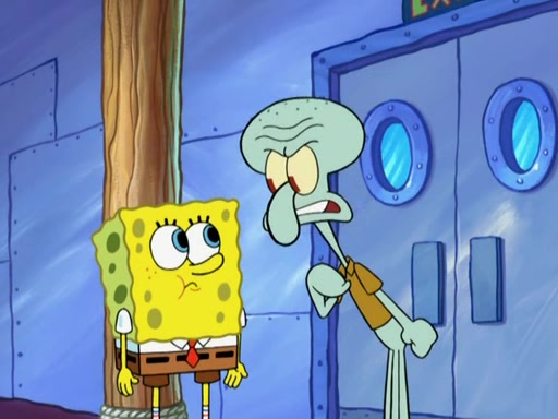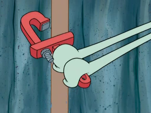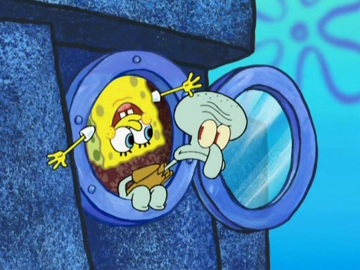 Squidward attempts to make a self-portrait when he is interrupted by a song that SpongeBob is singing about how he has an "attitude of gratitude." After Squidward tells SpongeBob to stop, he slips on some spilled paintbrushes, falls down the stairs and through the floor, breaks a plumage pipe, resulting in spewing water. When SpongeBob offers to help, Squidward denies that he needs help and tells SpongeBob not to help him ever again. He tightens the pipe so much that the water can't get through. Squidward then walks off grumpily as he's late for work.