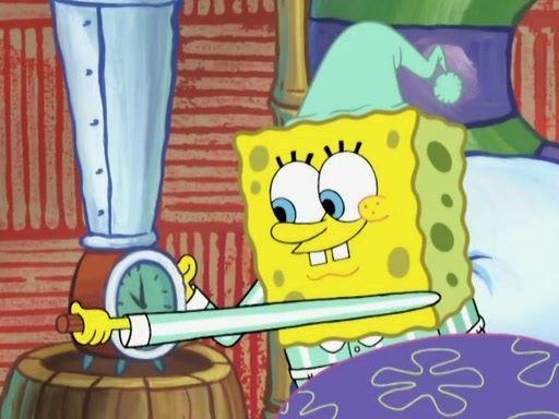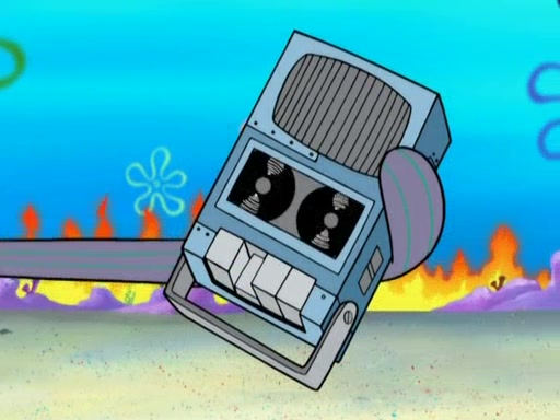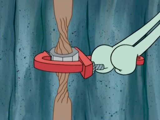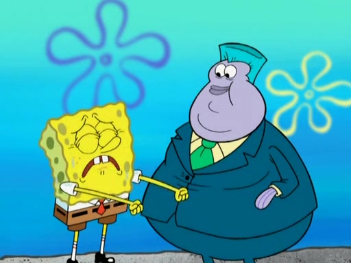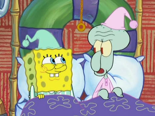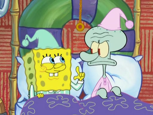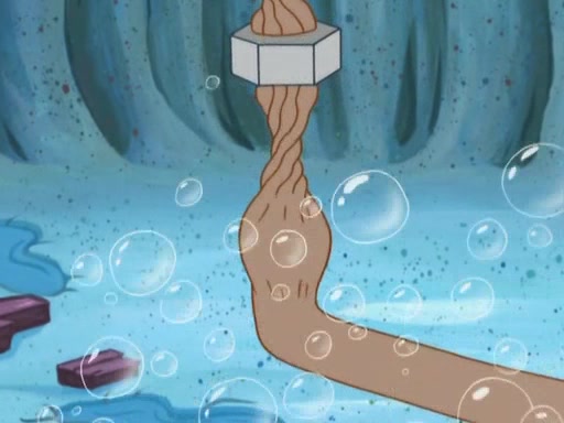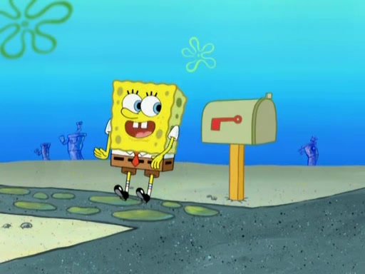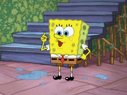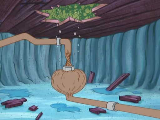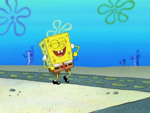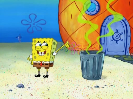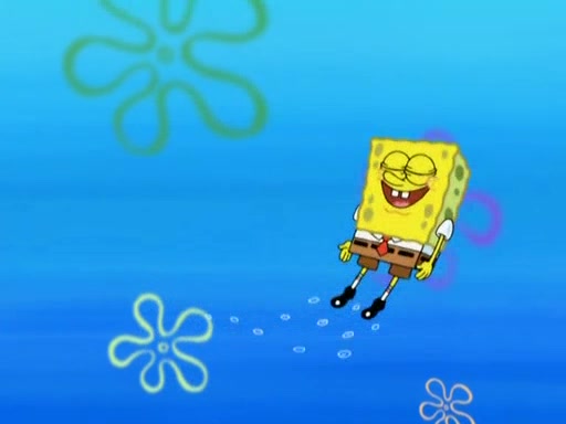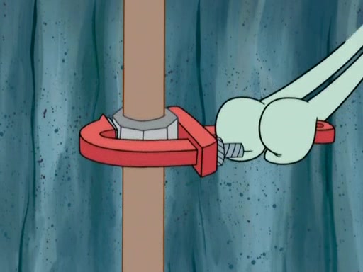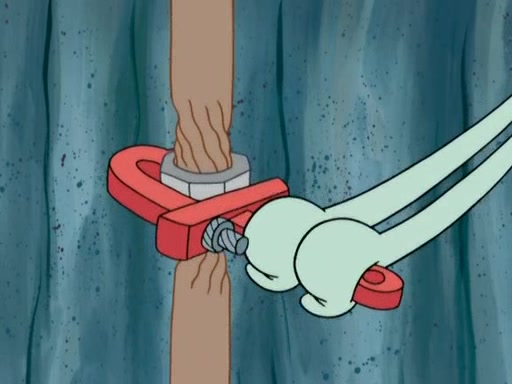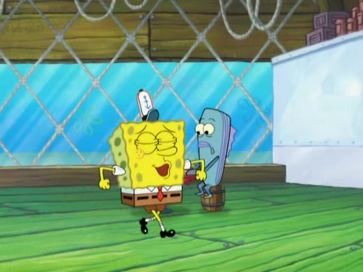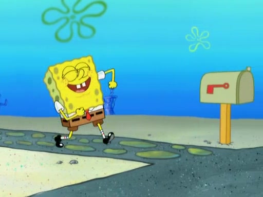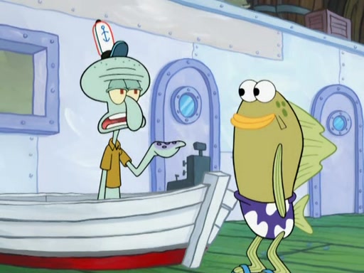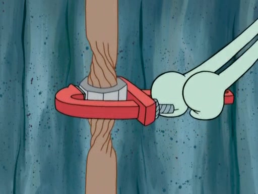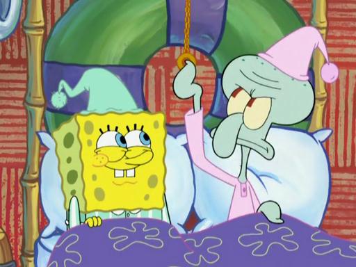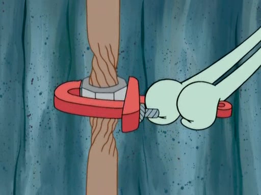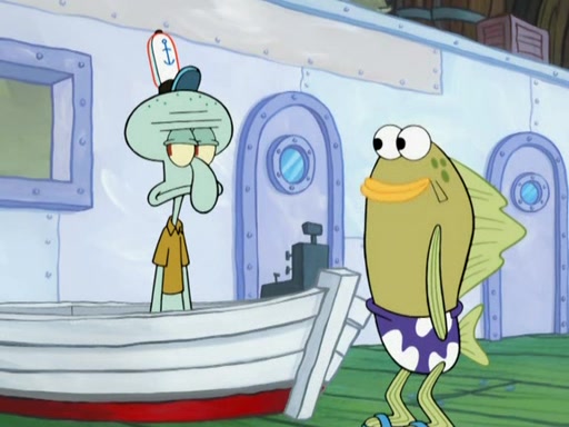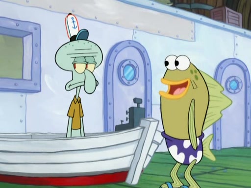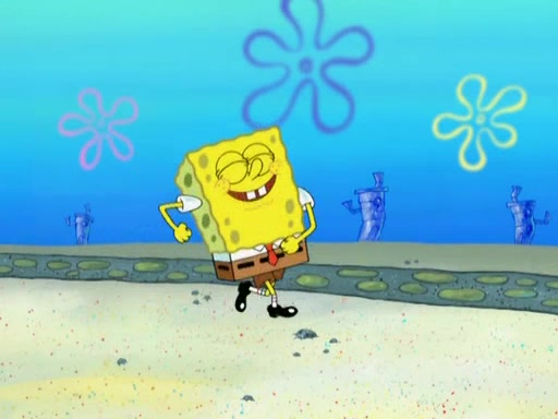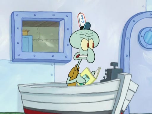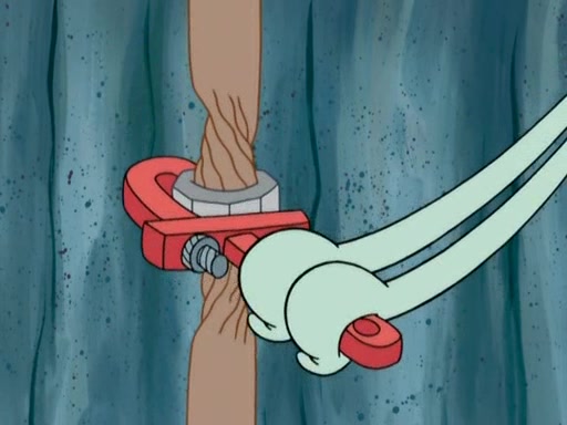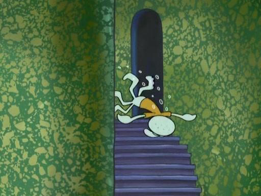 Squidward attempts to make a self-portrait when he is interrupted by a song that SpongeBob is singing about how he has an "attitude of gratitude." After Squidward tells SpongeBob to stop, he slips on some spilled paintbrushes, falls down the stairs and through the floor, breaks a plumage pipe, resulting in spewing water. When SpongeBob offers to help, Squidward denies that he needs help and tells SpongeBob not to help him ever again. He tightens the pipe so much that the water can't get through. Squidward then walks off grumpily as he's late for work.