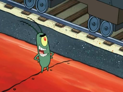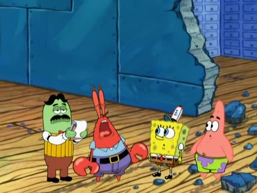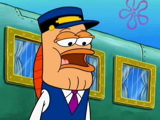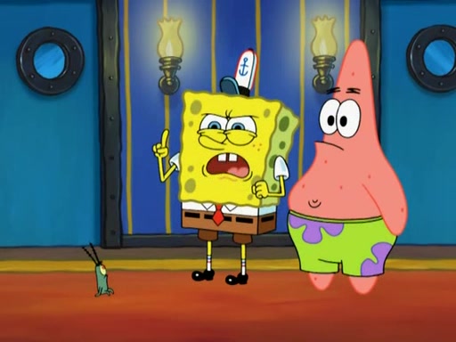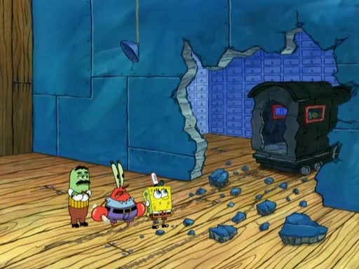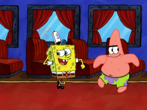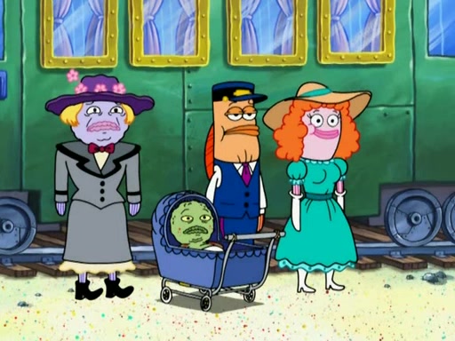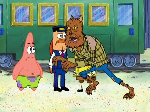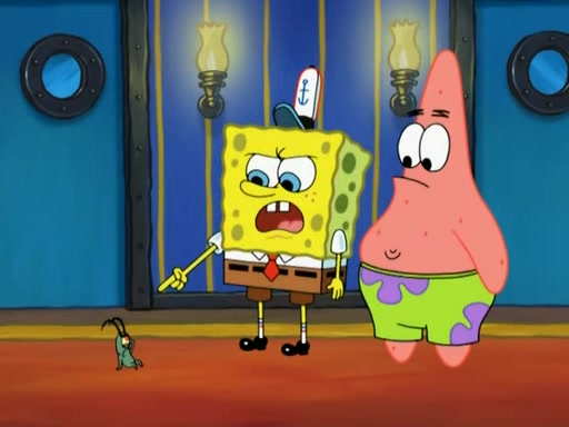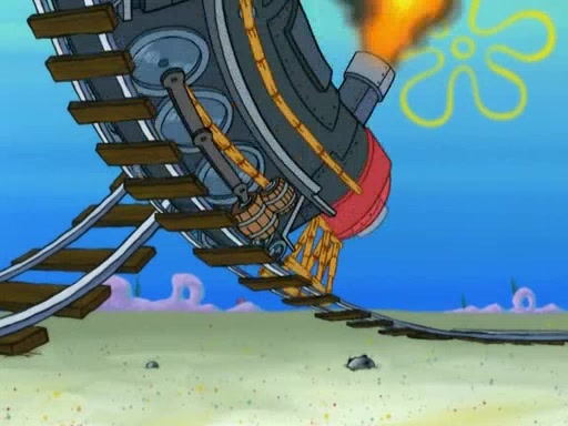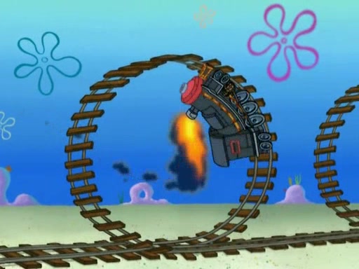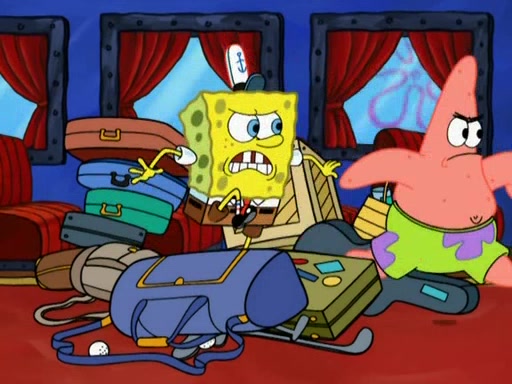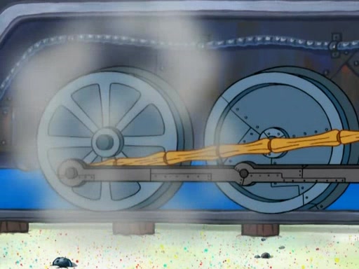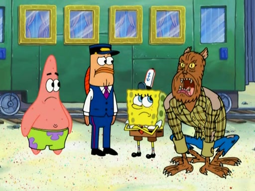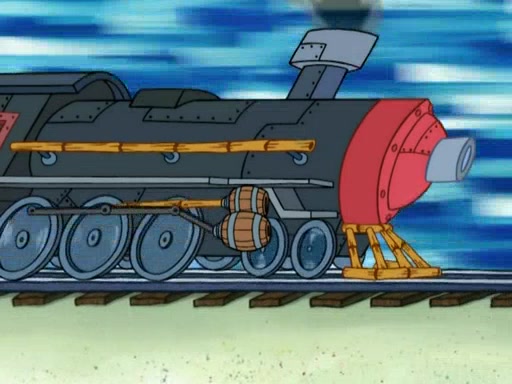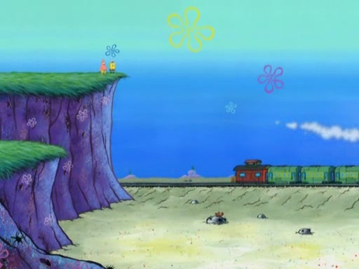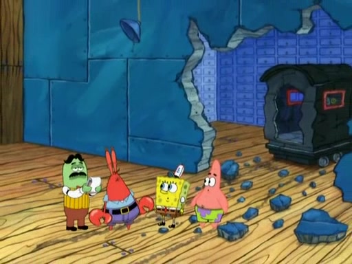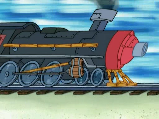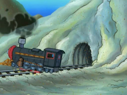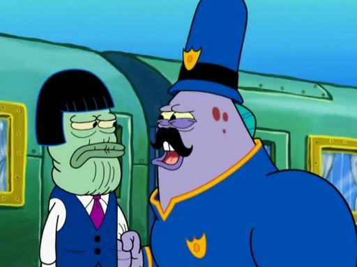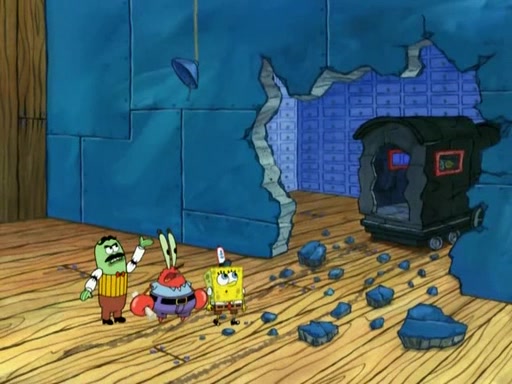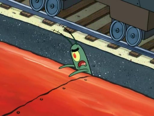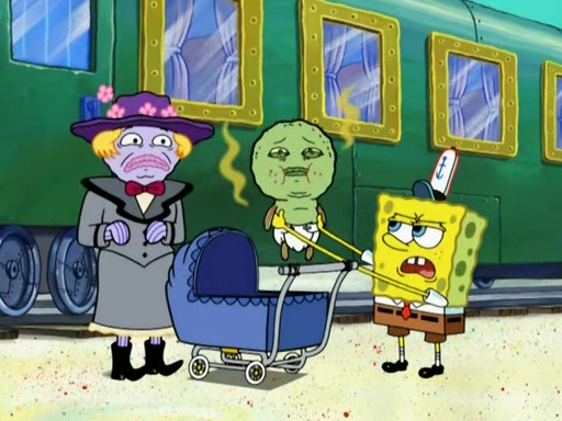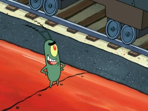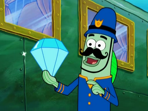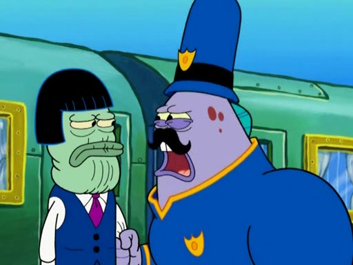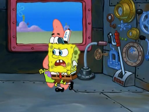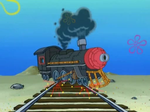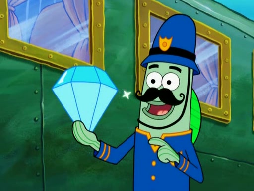 SpongeBob goes into the Krusty Krab freezer to find that the Krusty Krab has run out of Krabby Patties. He and Mr. Krabs try to make more, but cannot remember the recipe. Mr. Krabs gives SpongeBob the key to the vault in which the recipe is hidden, and he and Patrick board a train to the bank for the safety deposit box. Sometime during the ride, the key to the box is stolen and SpongeBob and Patrick must find the thief. Just then, Plankton walks up and Patrick searches him, but finds him clean. The duo stops the train to find the suspect responsible for stealing the key. A nanny and her baby were searched, only to find a stolen jewel that was stolen by triplets. The next suspect, the butler, was revealed to be a thief named Orin J. Ruffy who stole $75,000 worth of ham sandwiches. SpongeBob cried hopelessly but soon found Patrick having the key; in fact, he found it while he cleaned SpongeBob's shorts. They went back into the train and were on their way to the bank. Eventually, Plankton bats them out of a window and the best friends must chase the train. It is revealed that Plankton has the key. SpongeBob morphs himself into a hang glider and he and Patrick fly back onto the train to pursue him. Once they return, SpongeBob and Patrick chase Plankton. But, Plankton disconnects the cars of the train, leaving SpongeBob and Patrick in the front car. SpongeBob and Patrick try to stop the train but Patrick stupidly breaks the brake (of the train) causing the train to go out of control. He made several weird, futile attempts to stop the train, one of which is to put a heavy object on the tracks. This only caused the train to flip and move forward while some of the wheels were off the track. The two manage to bring all wheels back in place when they stopped in front of a retirement home. Then, Patrick stupidly breaks the throttle, which he thought said "BREAK." Meanwhile, Plankton was caught trying to steal the formula by Mr. Krabs. However, he still escapes with it, but the train comes into the bank and stops Plankton before he could leave. Plankton's plan failed again, while Mr. Krabs had to pay the damage to the bank with his bank account. 75 years later, Elderly SpongeBob finishes the story of the "Great Train Caper." His grandson responds with a cheer in excitement over his video game.