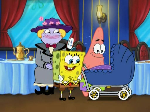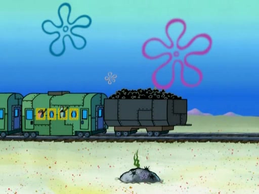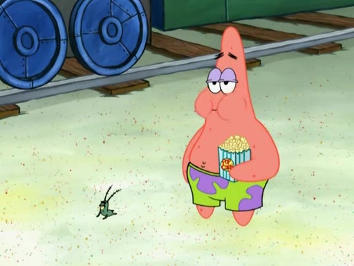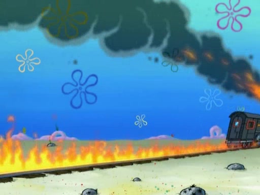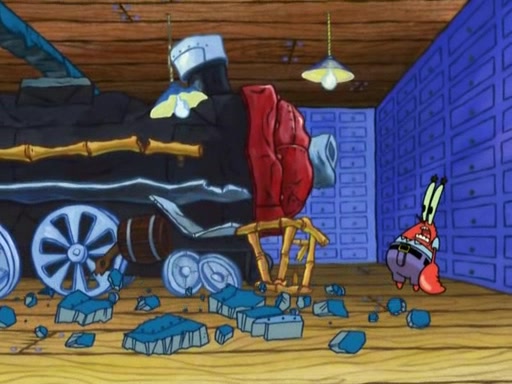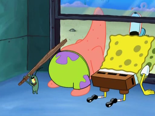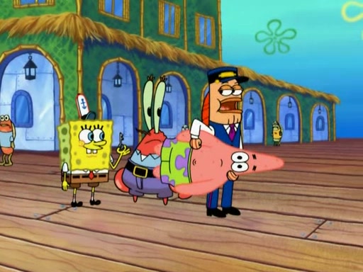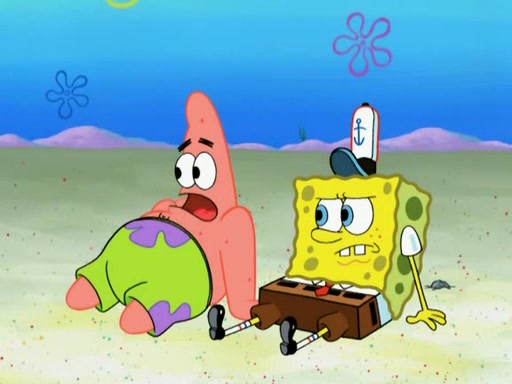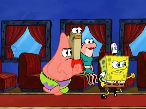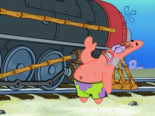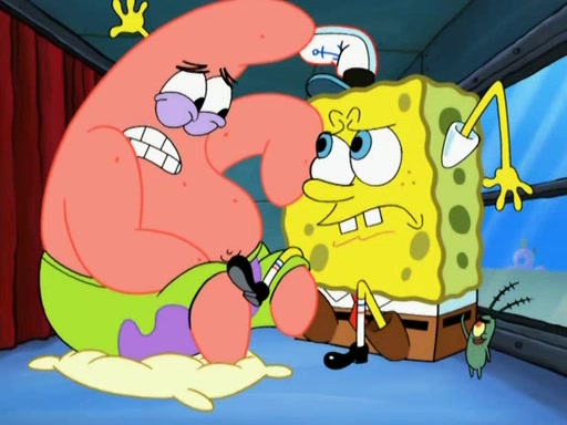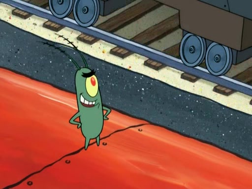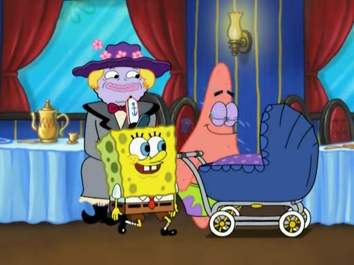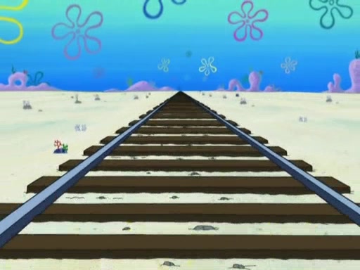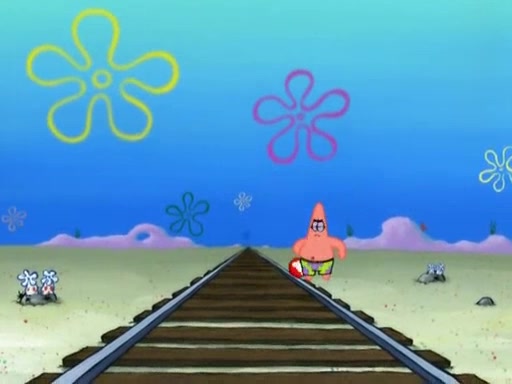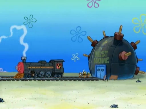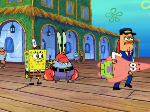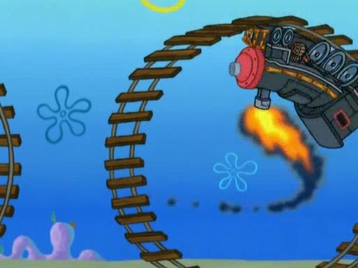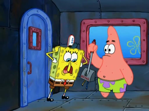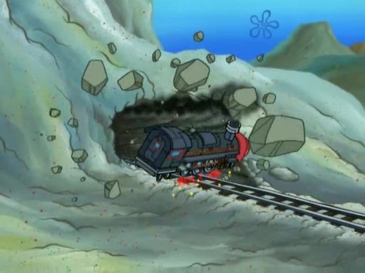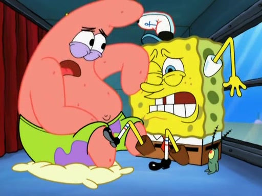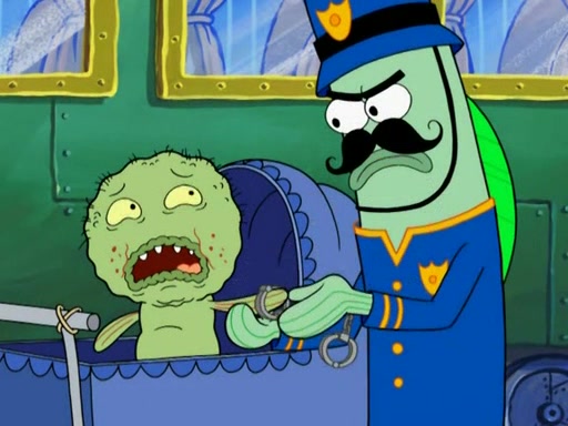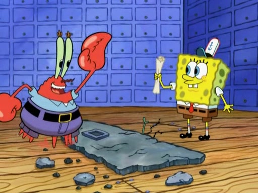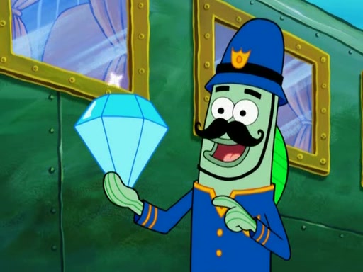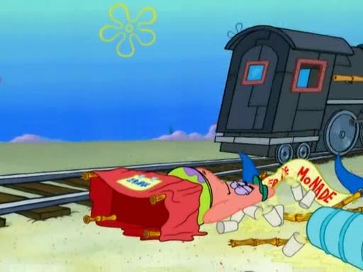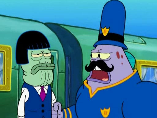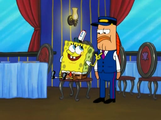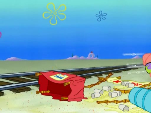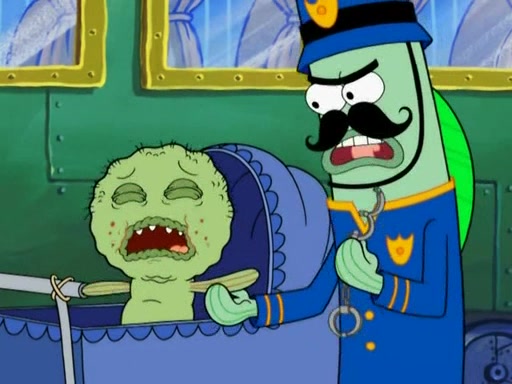 SpongeBob goes into the Krusty Krab freezer to find that the Krusty Krab has run out of Krabby Patties. He and Mr. Krabs try to make more, but cannot remember the recipe. Mr. Krabs gives SpongeBob the key to the vault in which the recipe is hidden, and he and Patrick board a train to the bank for the safety deposit box. Sometime during the ride, the key to the box is stolen and SpongeBob and Patrick must find the thief. Just then, Plankton walks up and Patrick searches him, but finds him clean. The duo stops the train to find the suspect responsible for stealing the key. A nanny and her baby were searched, only to find a stolen jewel that was stolen by triplets. The next suspect, the butler, was revealed to be a thief named Orin J. Ruffy who stole $75,000 worth of ham sandwiches. SpongeBob cried hopelessly but soon found Patrick having the key; in fact, he found it while he cleaned SpongeBob's shorts. They went back into the train and were on their way to the bank. Eventually, Plankton bats them out of a window and the best friends must chase the train. It is revealed that Plankton has the key. SpongeBob morphs himself into a hang glider and he and Patrick fly back onto the train to pursue him. Once they return, SpongeBob and Patrick chase Plankton. But, Plankton disconnects the cars of the train, leaving SpongeBob and Patrick in the front car. SpongeBob and Patrick try to stop the train but Patrick stupidly breaks the brake (of the train) causing the train to go out of control. He made several weird, futile attempts to stop the train, one of which is to put a heavy object on the tracks. This only caused the train to flip and move forward while some of the wheels were off the track. The two manage to bring all wheels back in place when they stopped in front of a retirement home. Then, Patrick stupidly breaks the throttle, which he thought said "BREAK." Meanwhile, Plankton was caught trying to steal the formula by Mr. Krabs. However, he still escapes with it, but the train comes into the bank and stops Plankton before he could leave. Plankton's plan failed again, while Mr. Krabs had to pay the damage to the bank with his bank account. 75 years later, Elderly SpongeBob finishes the story of the "Great Train Caper." His grandson responds with a cheer in excitement over his video game.