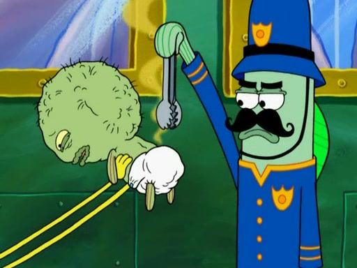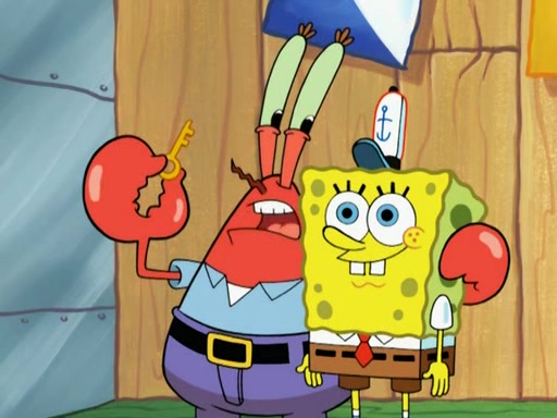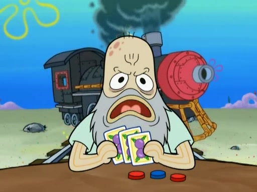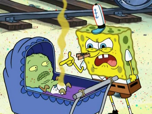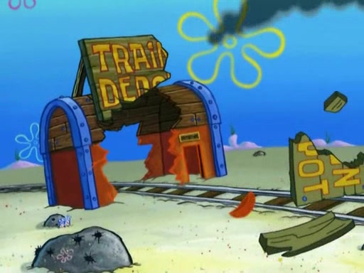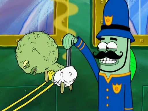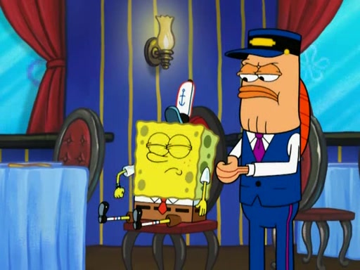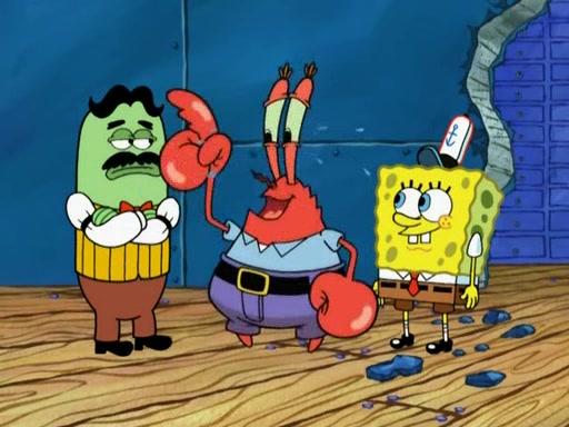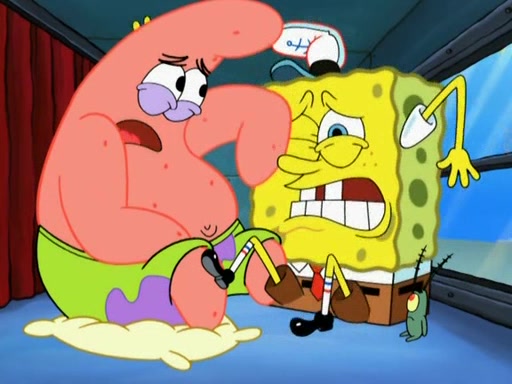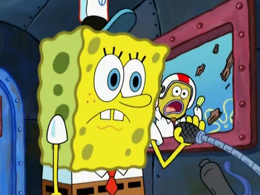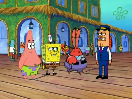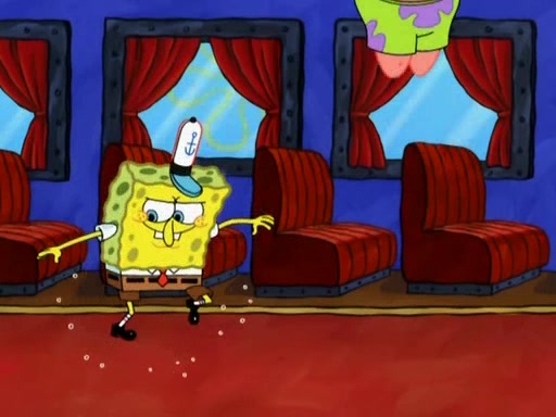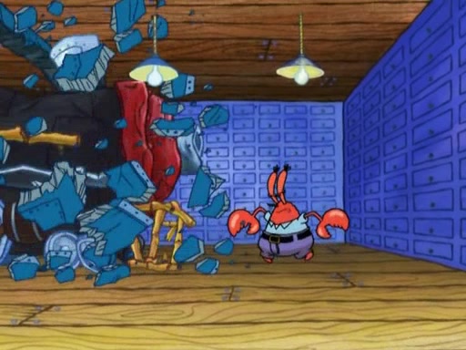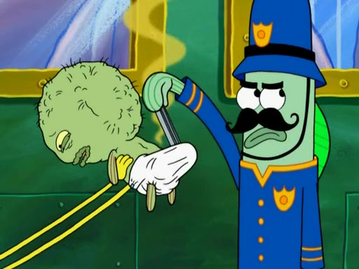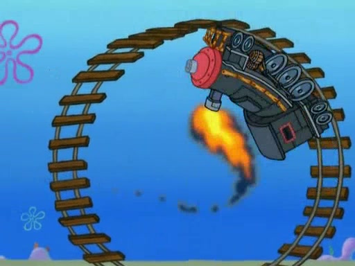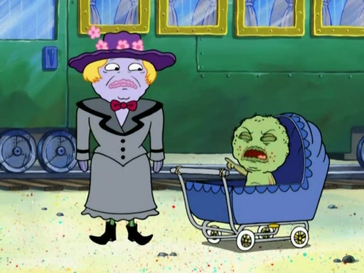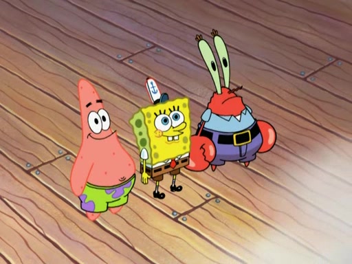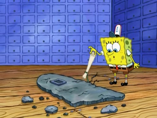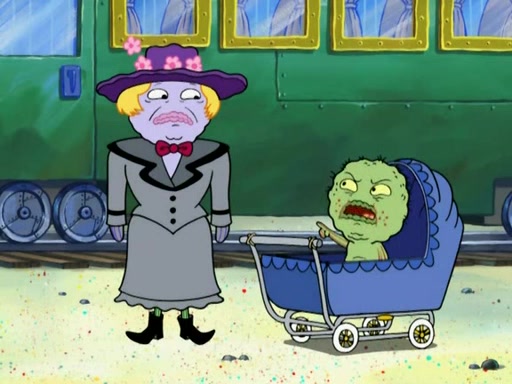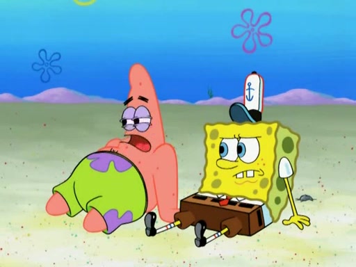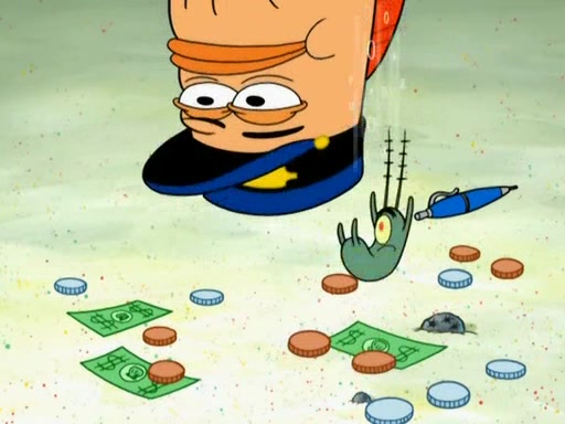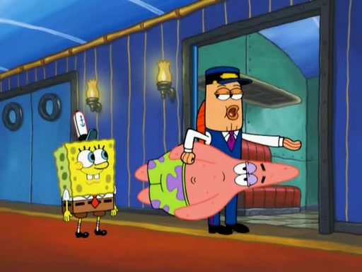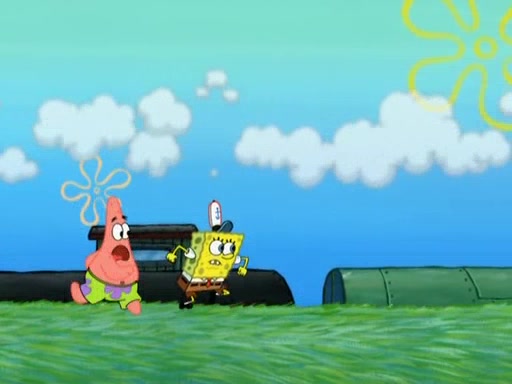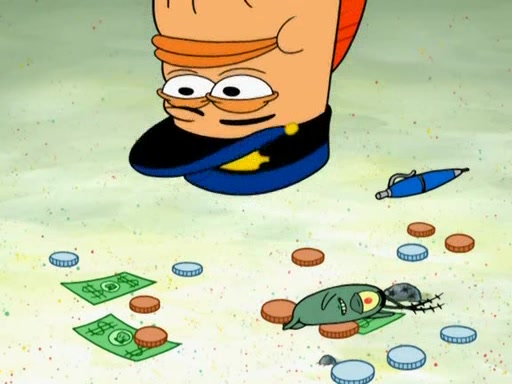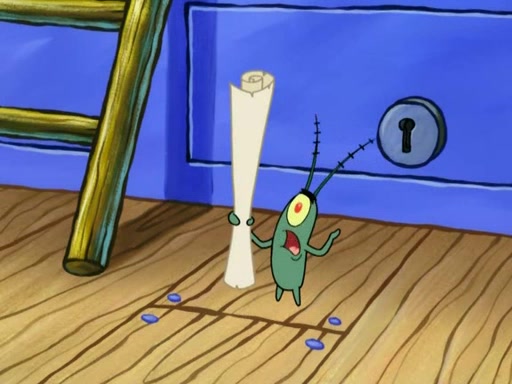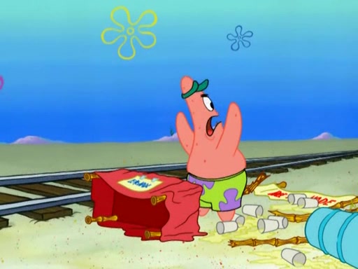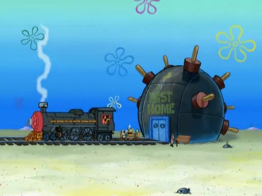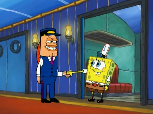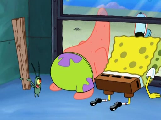SpongeBob goes into the Krusty Krab freezer to find that the Krusty Krab has run out of Krabby Patties. He and Mr. Krabs try to make more, but cannot remember the recipe. Mr. Krabs gives SpongeBob the key to the vault in which the recipe is hidden, and he and Patrick board a train to the bank for the safety deposit box. Sometime during the ride, the key to the box is stolen and SpongeBob and Patrick must find the thief. Just then, Plankton walks up and Patrick searches him, but finds him clean. The duo stops the train to find the suspect responsible for stealing the key. A nanny and her baby were searched, only to find a stolen jewel that was stolen by triplets. The next suspect, the butler, was revealed to be a thief named Orin J. Ruffy who stole $75,000 worth of ham sandwiches. SpongeBob cried hopelessly but soon found Patrick having the key; in fact, he found it while he cleaned SpongeBob's shorts. They went back into the train and were on their way to the bank. Eventually, Plankton bats them out of a window and the best friends must chase the train. It is revealed that Plankton has the key. SpongeBob morphs himself into a hang glider and he and Patrick fly back onto the train to pursue him. Once they return, SpongeBob and Patrick chase Plankton. But, Plankton disconnects the cars of the train, leaving SpongeBob and Patrick in the front car. SpongeBob and Patrick try to stop the train but Patrick stupidly breaks the brake (of the train) causing the train to go out of control. He made several weird, futile attempts to stop the train, one of which is to put a heavy object on the tracks. This only caused the train to flip and move forward while some of the wheels were off the track. The two manage to bring all wheels back in place when they stopped in front of a retirement home. Then, Patrick stupidly breaks the throttle, which he thought said "BREAK." Meanwhile, Plankton was caught trying to steal the formula by Mr. Krabs. However, he still escapes with it, but the train comes into the bank and stops Plankton before he could leave. Plankton's plan failed again, while Mr. Krabs had to pay the damage to the bank with his bank account. 75 years later, Elderly SpongeBob finishes the story of the "Great Train Caper." His grandson responds with a cheer in excitement over his video game.