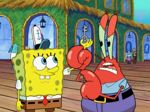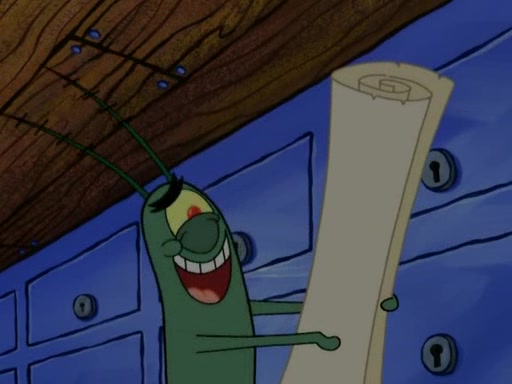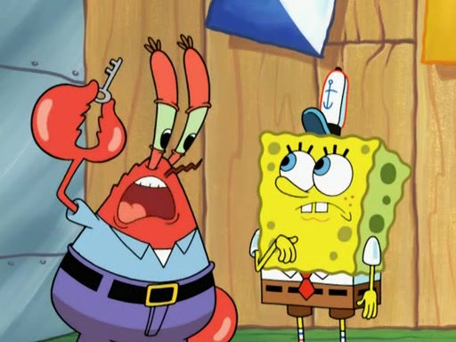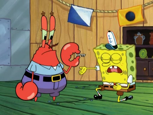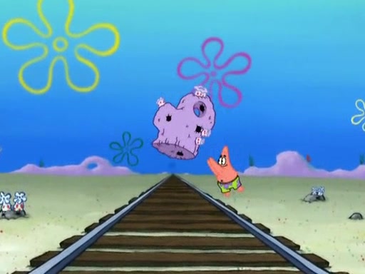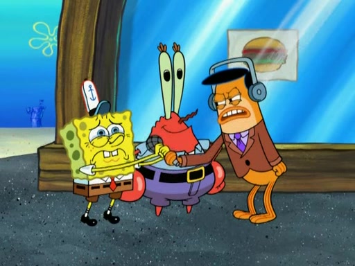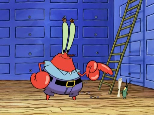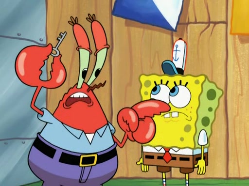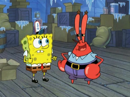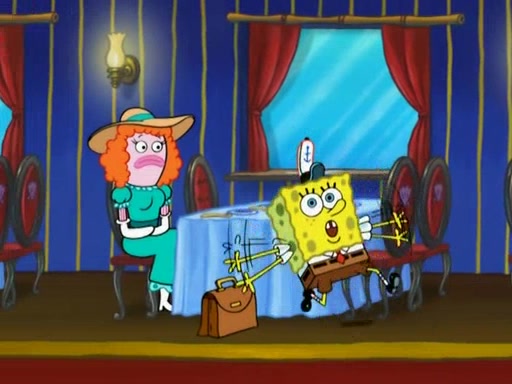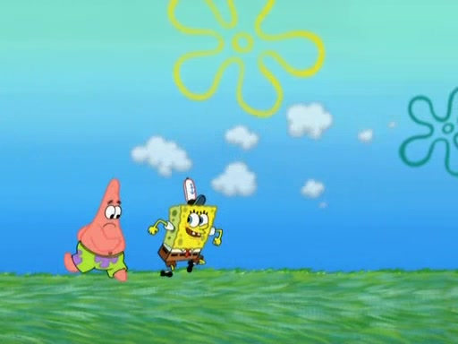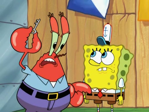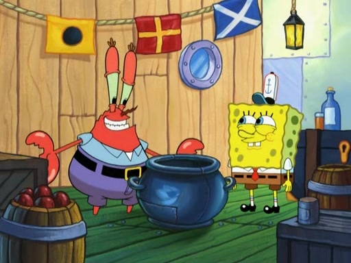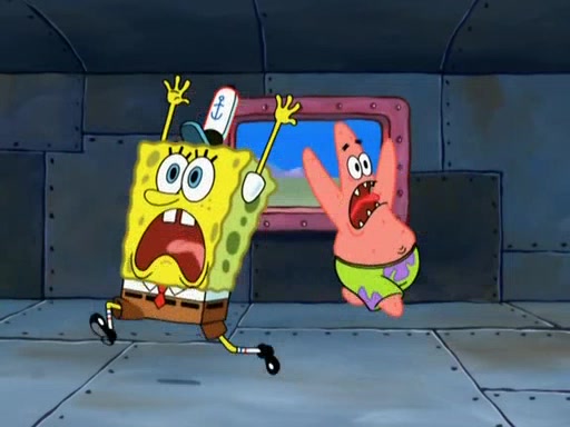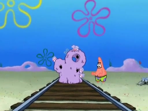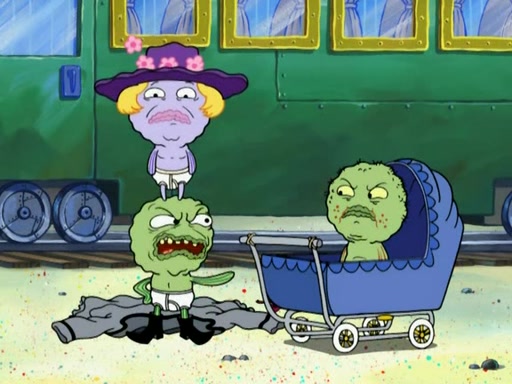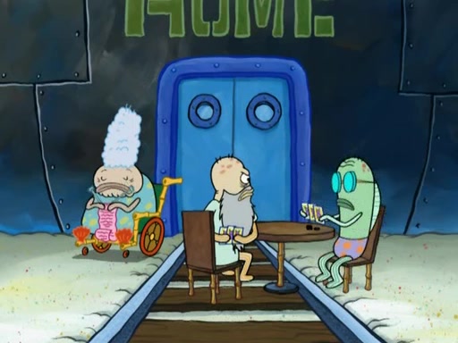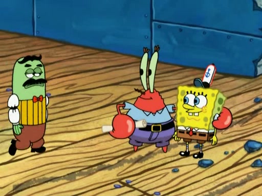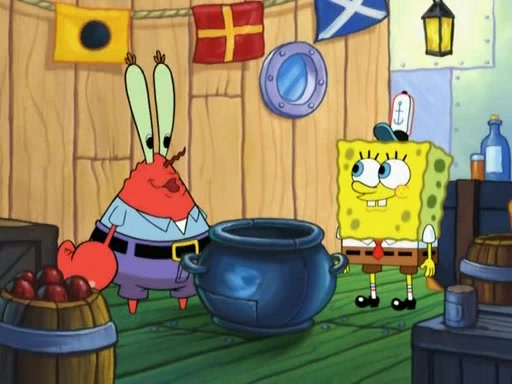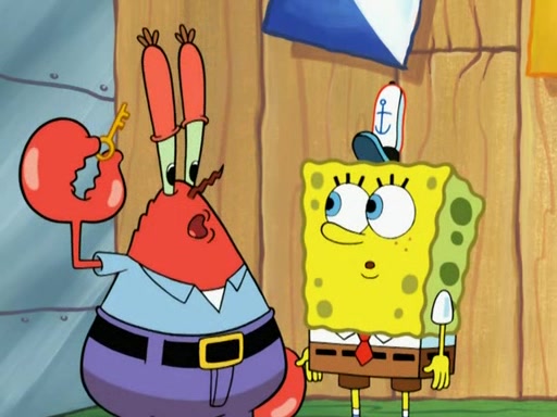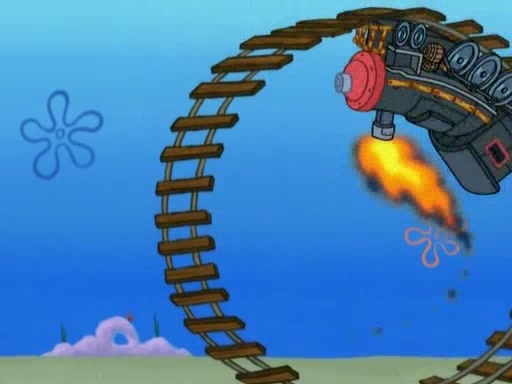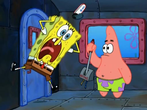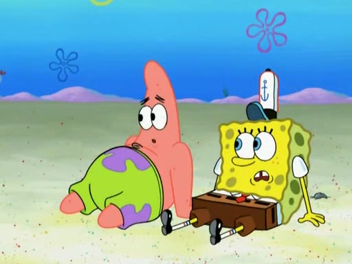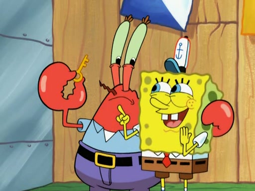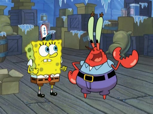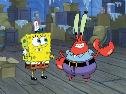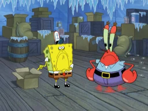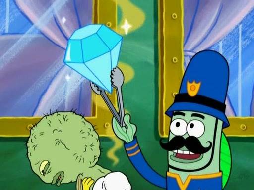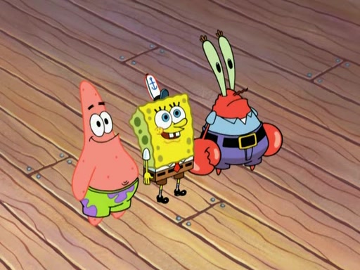 SpongeBob goes into the Krusty Krab freezer to find that the Krusty Krab has run out of Krabby Patties. He and Mr. Krabs try to make more, but cannot remember the recipe. Mr. Krabs gives SpongeBob the key to the vault in which the recipe is hidden, and he and Patrick board a train to the bank for the safety deposit box. Sometime during the ride, the key to the box is stolen and SpongeBob and Patrick must find the thief. Just then, Plankton walks up and Patrick searches him, but finds him clean. The duo stops the train to find the suspect responsible for stealing the key. A nanny and her baby were searched, only to find a stolen jewel that was stolen by triplets. The next suspect, the butler, was revealed to be a thief named Orin J. Ruffy who stole $75,000 worth of ham sandwiches. SpongeBob cried hopelessly but soon found Patrick having the key; in fact, he found it while he cleaned SpongeBob's shorts. They went back into the train and were on their way to the bank. Eventually, Plankton bats them out of a window and the best friends must chase the train. It is revealed that Plankton has the key. SpongeBob morphs himself into a hang glider and he and Patrick fly back onto the train to pursue him. Once they return, SpongeBob and Patrick chase Plankton. But, Plankton disconnects the cars of the train, leaving SpongeBob and Patrick in the front car. SpongeBob and Patrick try to stop the train but Patrick stupidly breaks the brake (of the train) causing the train to go out of control. He made several weird, futile attempts to stop the train, one of which is to put a heavy object on the tracks. This only caused the train to flip and move forward while some of the wheels were off the track. The two manage to bring all wheels back in place when they stopped in front of a retirement home. Then, Patrick stupidly breaks the throttle, which he thought said "BREAK." Meanwhile, Plankton was caught trying to steal the formula by Mr. Krabs. However, he still escapes with it, but the train comes into the bank and stops Plankton before he could leave. Plankton's plan failed again, while Mr. Krabs had to pay the damage to the bank with his bank account. 75 years later, Elderly SpongeBob finishes the story of the "Great Train Caper." His grandson responds with a cheer in excitement over his video game.