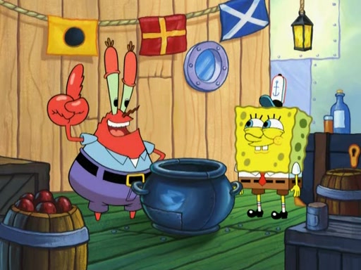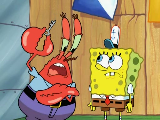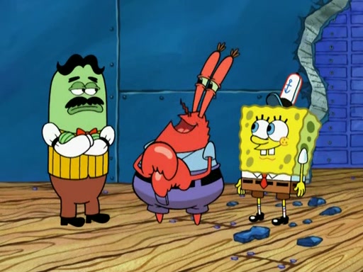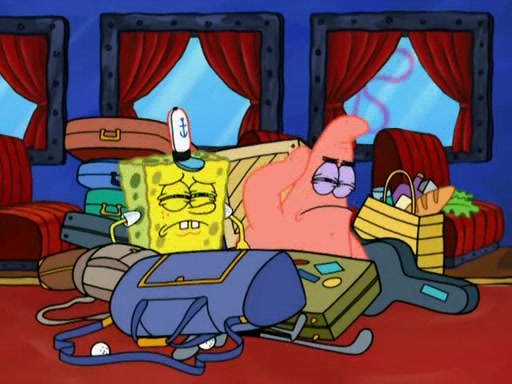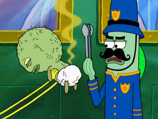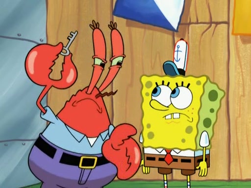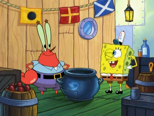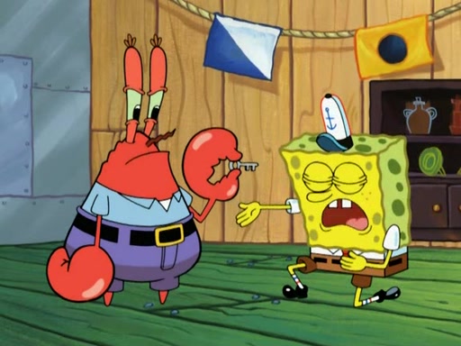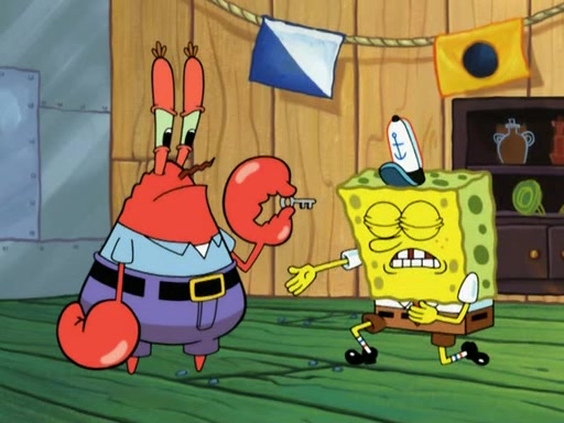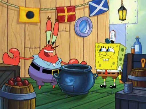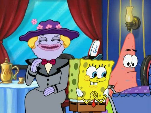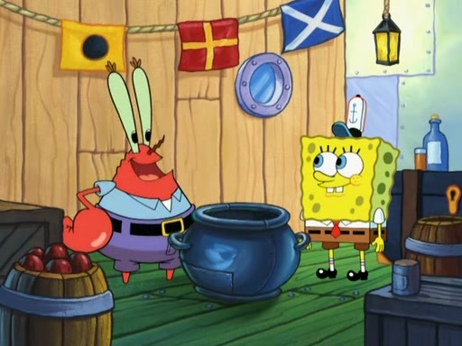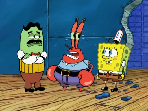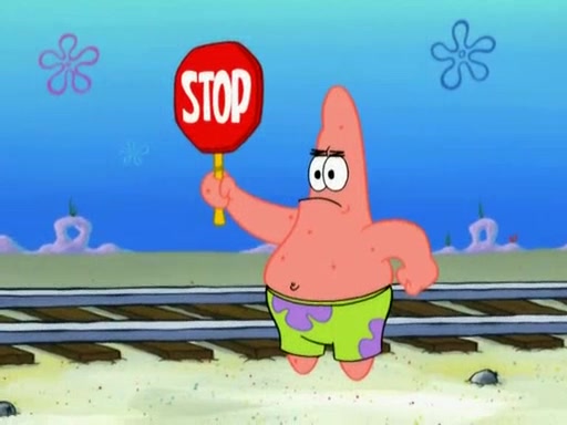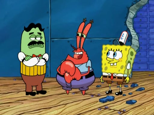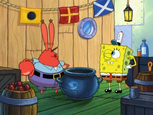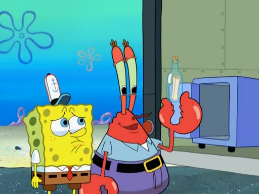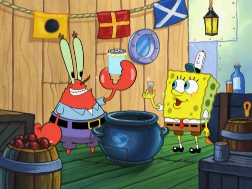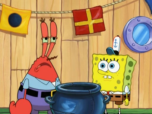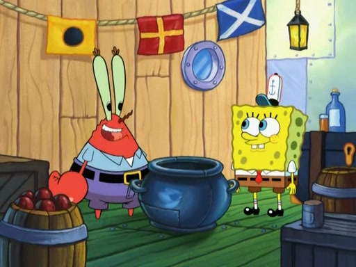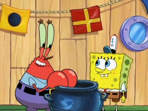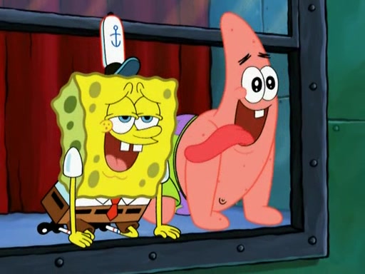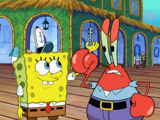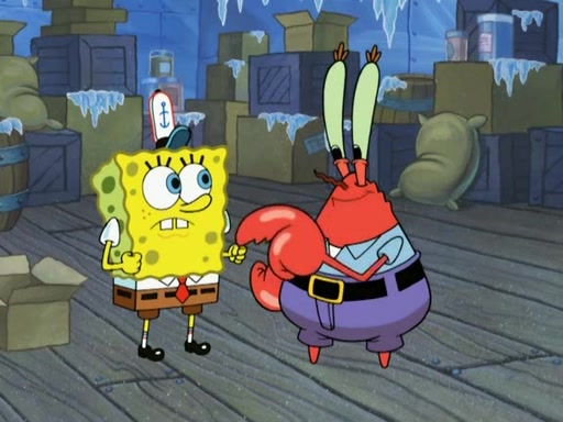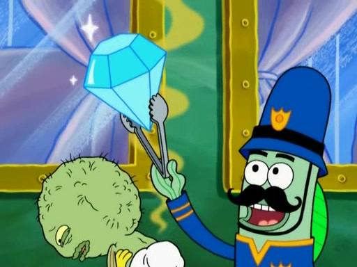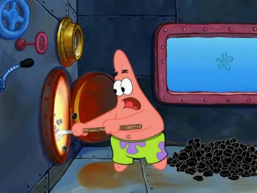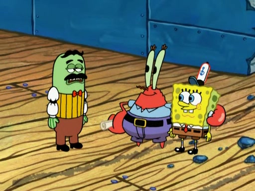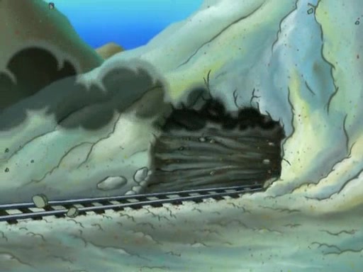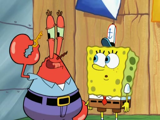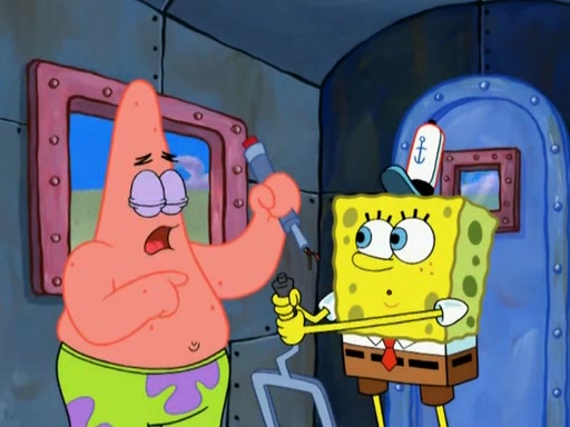 SpongeBob goes into the Krusty Krab freezer to find that the Krusty Krab has run out of Krabby Patties. He and Mr. Krabs try to make more, but cannot remember the recipe. Mr. Krabs gives SpongeBob the key to the vault in which the recipe is hidden, and he and Patrick board a train to the bank for the safety deposit box. Sometime during the ride, the key to the box is stolen and SpongeBob and Patrick must find the thief. Just then, Plankton walks up and Patrick searches him, but finds him clean. The duo stops the train to find the suspect responsible for stealing the key. A nanny and her baby were searched, only to find a stolen jewel that was stolen by triplets. The next suspect, the butler, was revealed to be a thief named Orin J. Ruffy who stole $75,000 worth of ham sandwiches. SpongeBob cried hopelessly but soon found Patrick having the key; in fact, he found it while he cleaned SpongeBob's shorts. They went back into the train and were on their way to the bank. Eventually, Plankton bats them out of a window and the best friends must chase the train. It is revealed that Plankton has the key. SpongeBob morphs himself into a hang glider and he and Patrick fly back onto the train to pursue him. Once they return, SpongeBob and Patrick chase Plankton. But, Plankton disconnects the cars of the train, leaving SpongeBob and Patrick in the front car. SpongeBob and Patrick try to stop the train but Patrick stupidly breaks the brake (of the train) causing the train to go out of control. He made several weird, futile attempts to stop the train, one of which is to put a heavy object on the tracks. This only caused the train to flip and move forward while some of the wheels were off the track. The two manage to bring all wheels back in place when they stopped in front of a retirement home. Then, Patrick stupidly breaks the throttle, which he thought said "BREAK." Meanwhile, Plankton was caught trying to steal the formula by Mr. Krabs. However, he still escapes with it, but the train comes into the bank and stops Plankton before he could leave. Plankton's plan failed again, while Mr. Krabs had to pay the damage to the bank with his bank account. 75 years later, Elderly SpongeBob finishes the story of the "Great Train Caper." His grandson responds with a cheer in excitement over his video game.