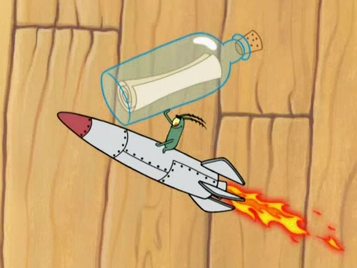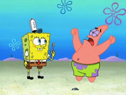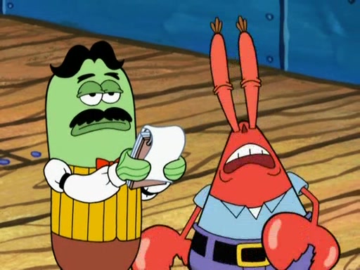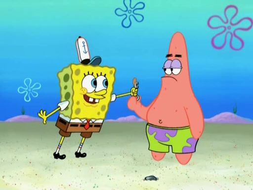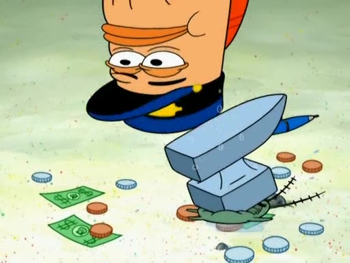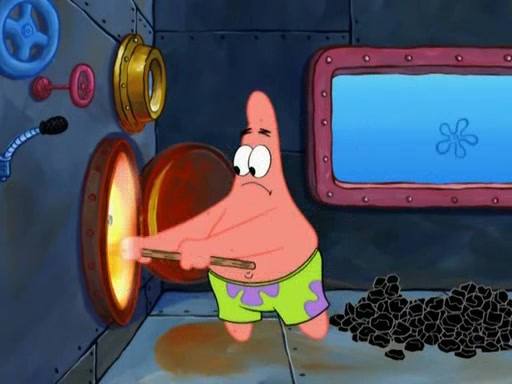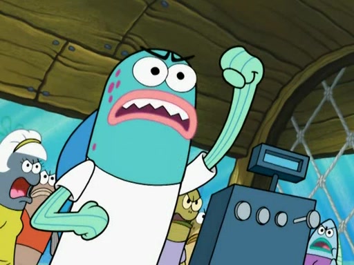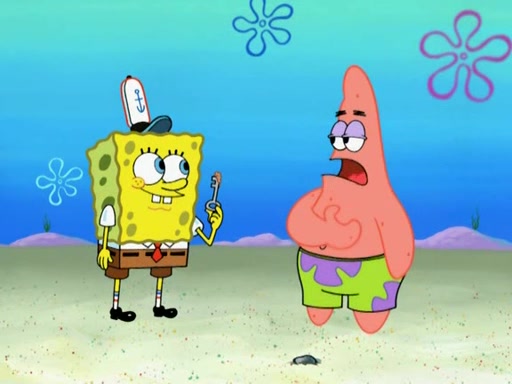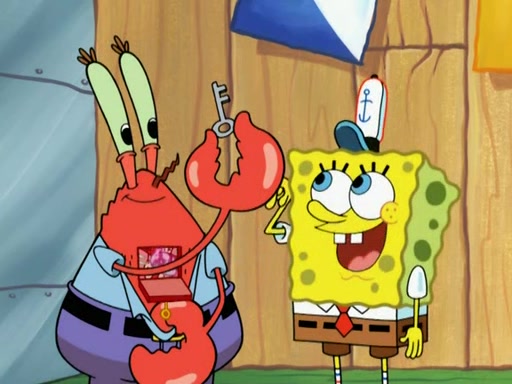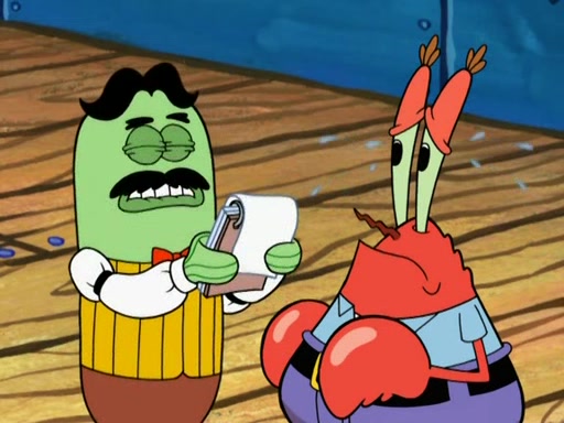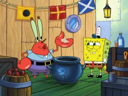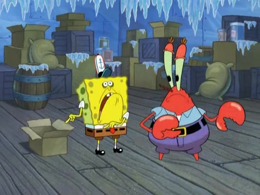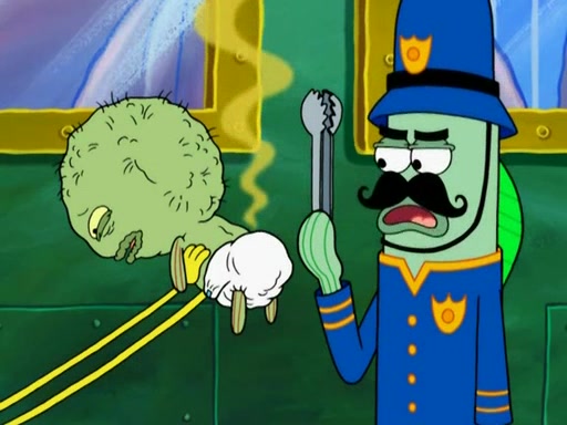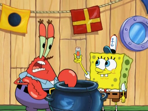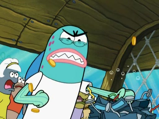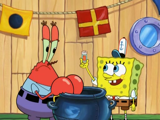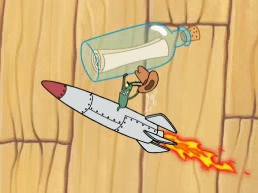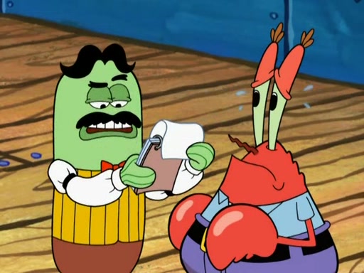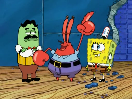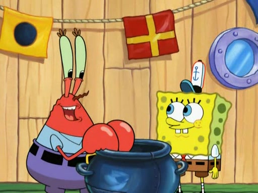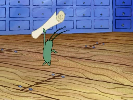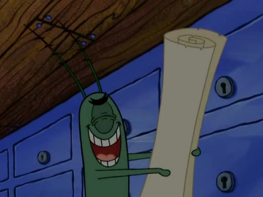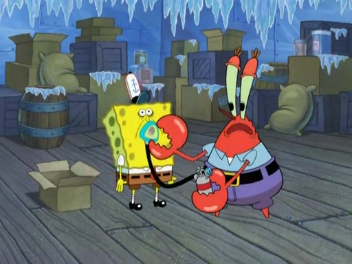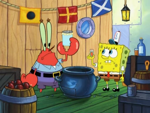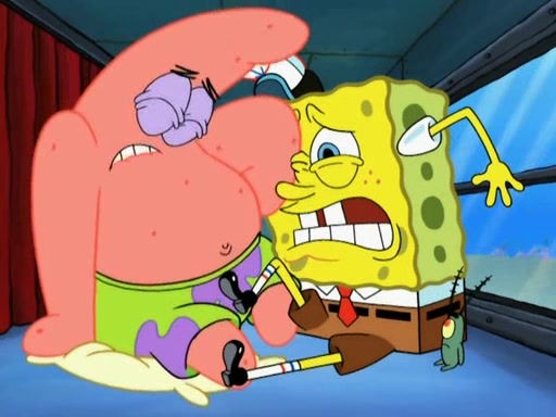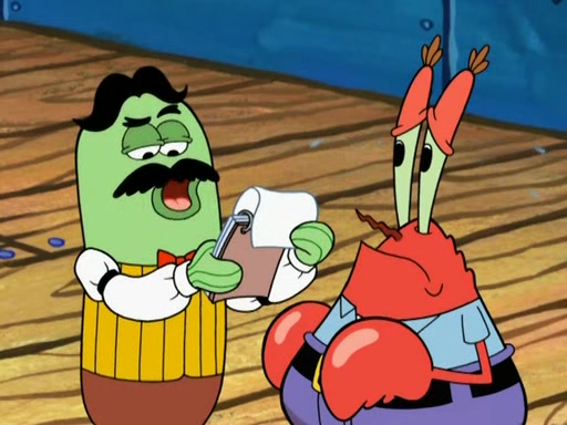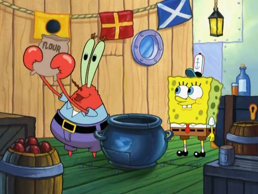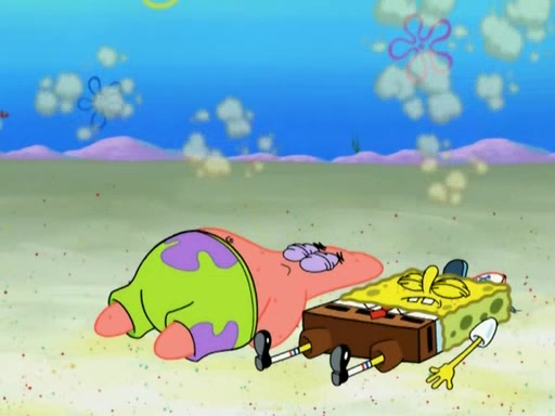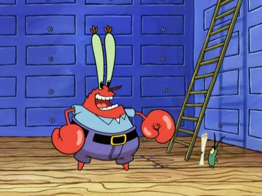 SpongeBob goes into the Krusty Krab freezer to find that the Krusty Krab has run out of Krabby Patties. He and Mr. Krabs try to make more, but cannot remember the recipe. Mr. Krabs gives SpongeBob the key to the vault in which the recipe is hidden, and he and Patrick board a train to the bank for the safety deposit box. Sometime during the ride, the key to the box is stolen and SpongeBob and Patrick must find the thief. Just then, Plankton walks up and Patrick searches him, but finds him clean. The duo stops the train to find the suspect responsible for stealing the key. A nanny and her baby were searched, only to find a stolen jewel that was stolen by triplets. The next suspect, the butler, was revealed to be a thief named Orin J. Ruffy who stole $75,000 worth of ham sandwiches. SpongeBob cried hopelessly but soon found Patrick having the key; in fact, he found it while he cleaned SpongeBob's shorts. They went back into the train and were on their way to the bank. Eventually, Plankton bats them out of a window and the best friends must chase the train. It is revealed that Plankton has the key. SpongeBob morphs himself into a hang glider and he and Patrick fly back onto the train to pursue him. Once they return, SpongeBob and Patrick chase Plankton. But, Plankton disconnects the cars of the train, leaving SpongeBob and Patrick in the front car. SpongeBob and Patrick try to stop the train but Patrick stupidly breaks the brake (of the train) causing the train to go out of control. He made several weird, futile attempts to stop the train, one of which is to put a heavy object on the tracks. This only caused the train to flip and move forward while some of the wheels were off the track. The two manage to bring all wheels back in place when they stopped in front of a retirement home. Then, Patrick stupidly breaks the throttle, which he thought said "BREAK." Meanwhile, Plankton was caught trying to steal the formula by Mr. Krabs. However, he still escapes with it, but the train comes into the bank and stops Plankton before he could leave. Plankton's plan failed again, while Mr. Krabs had to pay the damage to the bank with his bank account. 75 years later, Elderly SpongeBob finishes the story of the "Great Train Caper." His grandson responds with a cheer in excitement over his video game.