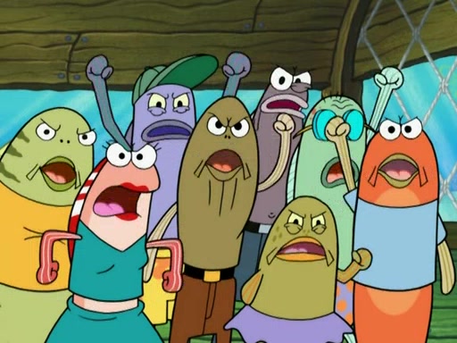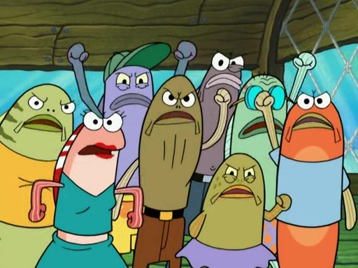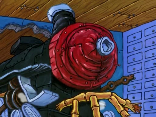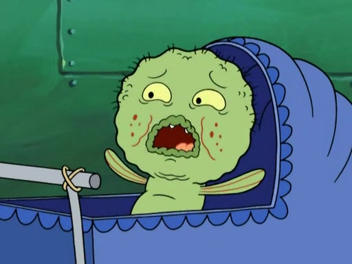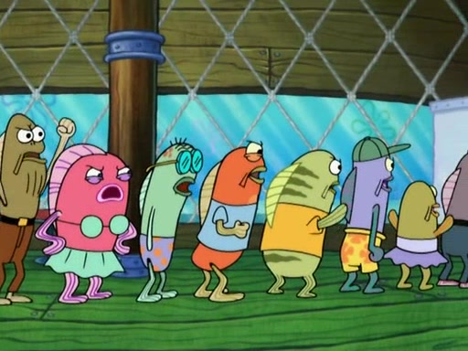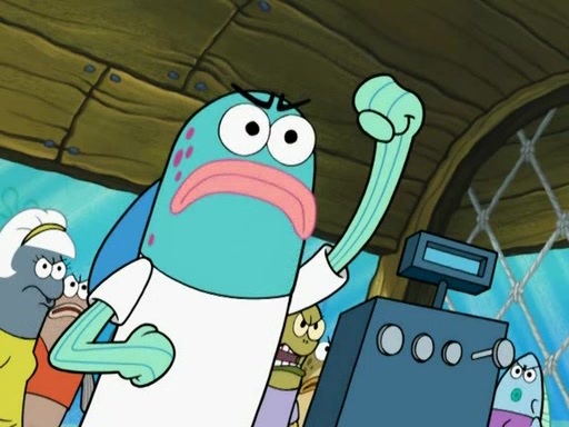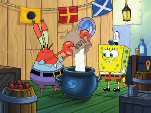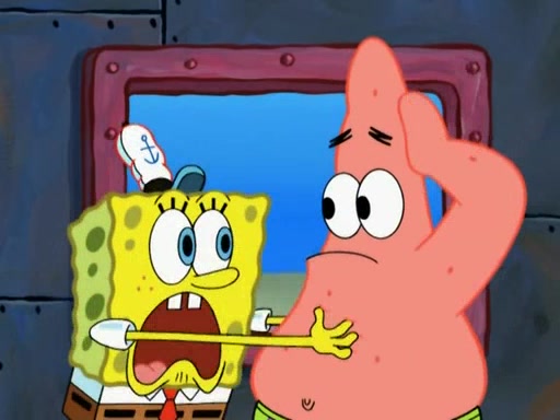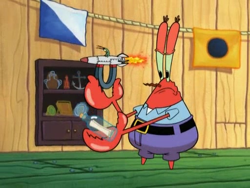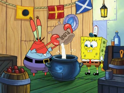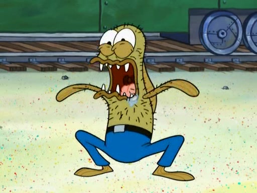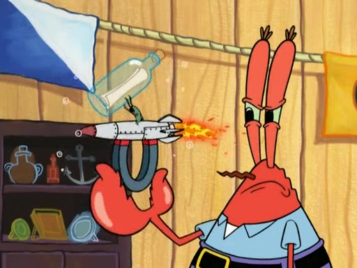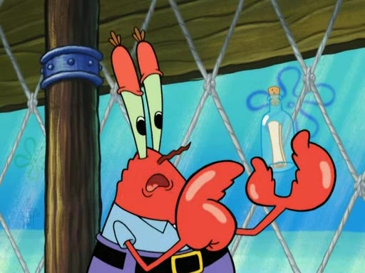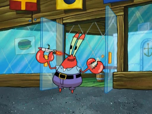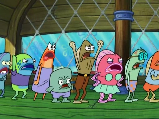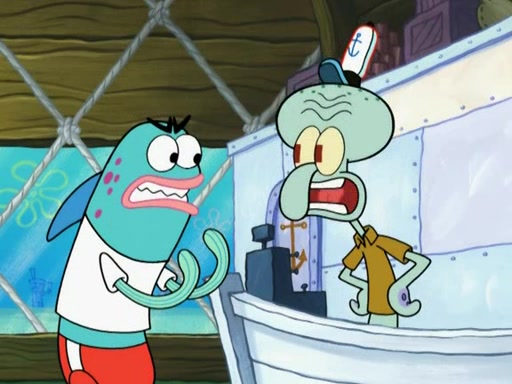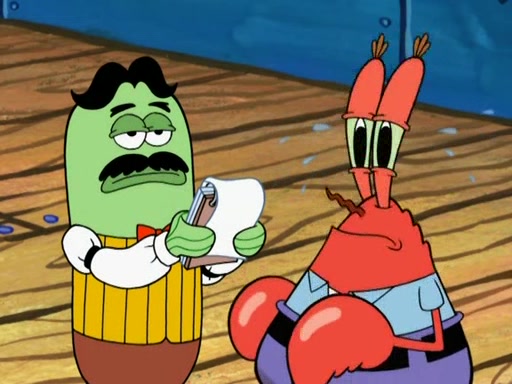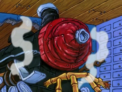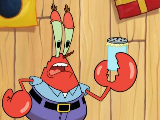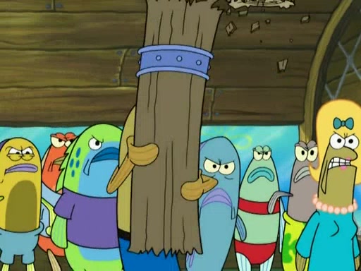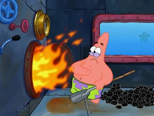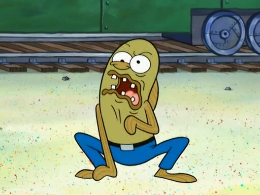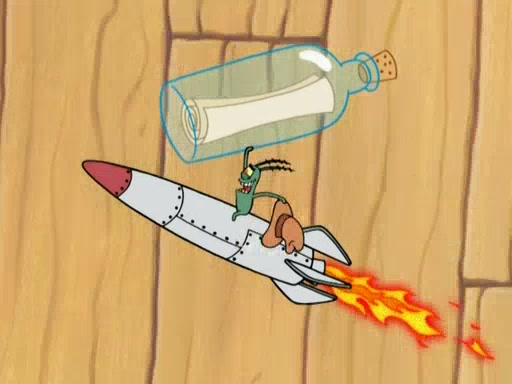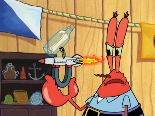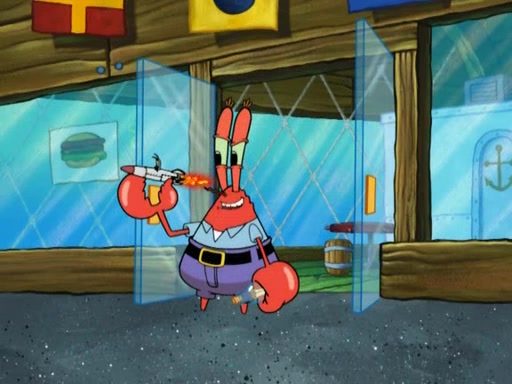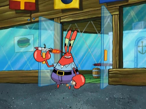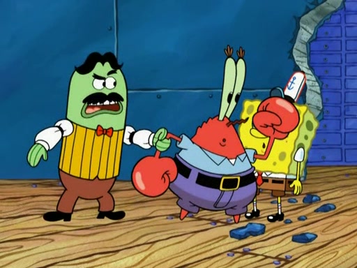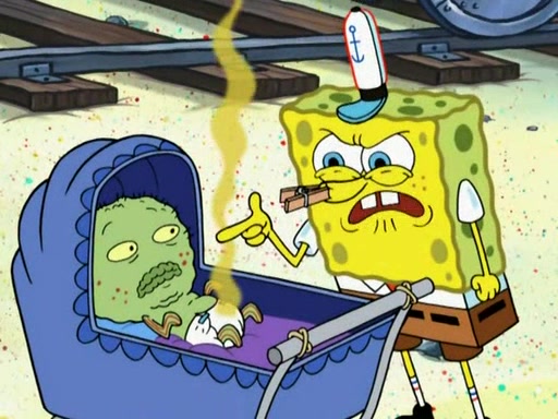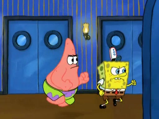 SpongeBob goes into the Krusty Krab freezer to find that the Krusty Krab has run out of Krabby Patties. He and Mr. Krabs try to make more, but cannot remember the recipe. Mr. Krabs gives SpongeBob the key to the vault in which the recipe is hidden, and he and Patrick board a train to the bank for the safety deposit box. Sometime during the ride, the key to the box is stolen and SpongeBob and Patrick must find the thief. Just then, Plankton walks up and Patrick searches him, but finds him clean. The duo stops the train to find the suspect responsible for stealing the key. A nanny and her baby were searched, only to find a stolen jewel that was stolen by triplets. The next suspect, the butler, was revealed to be a thief named Orin J. Ruffy who stole $75,000 worth of ham sandwiches. SpongeBob cried hopelessly but soon found Patrick having the key; in fact, he found it while he cleaned SpongeBob's shorts. They went back into the train and were on their way to the bank. Eventually, Plankton bats them out of a window and the best friends must chase the train. It is revealed that Plankton has the key. SpongeBob morphs himself into a hang glider and he and Patrick fly back onto the train to pursue him. Once they return, SpongeBob and Patrick chase Plankton. But, Plankton disconnects the cars of the train, leaving SpongeBob and Patrick in the front car. SpongeBob and Patrick try to stop the train but Patrick stupidly breaks the brake (of the train) causing the train to go out of control. He made several weird, futile attempts to stop the train, one of which is to put a heavy object on the tracks. This only caused the train to flip and move forward while some of the wheels were off the track. The two manage to bring all wheels back in place when they stopped in front of a retirement home. Then, Patrick stupidly breaks the throttle, which he thought said "BREAK." Meanwhile, Plankton was caught trying to steal the formula by Mr. Krabs. However, he still escapes with it, but the train comes into the bank and stops Plankton before he could leave. Plankton's plan failed again, while Mr. Krabs had to pay the damage to the bank with his bank account. 75 years later, Elderly SpongeBob finishes the story of the "Great Train Caper." His grandson responds with a cheer in excitement over his video game.
