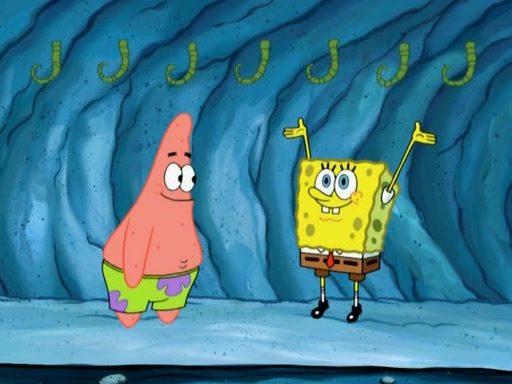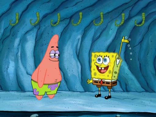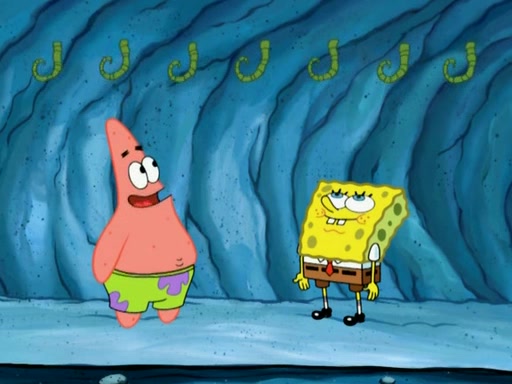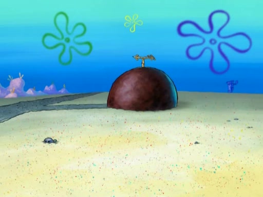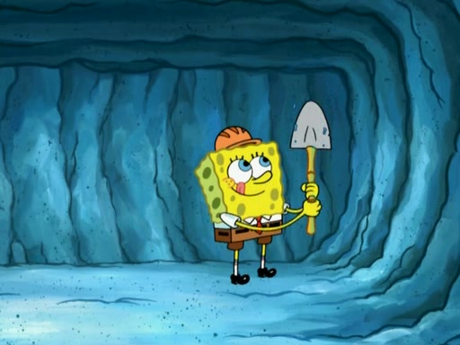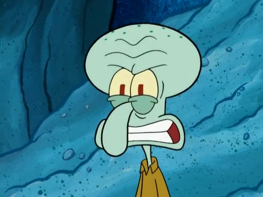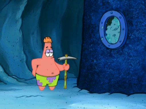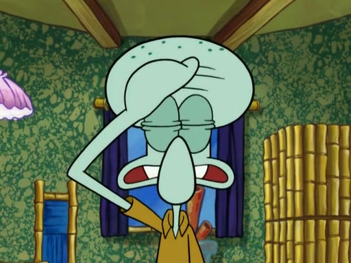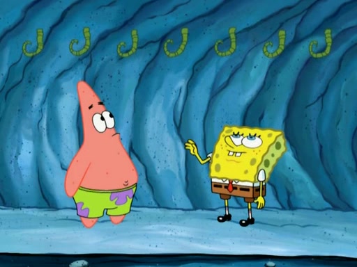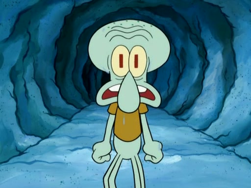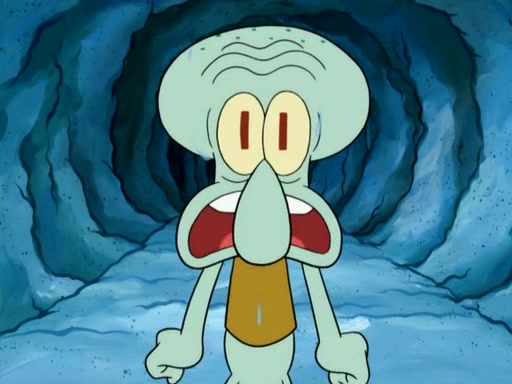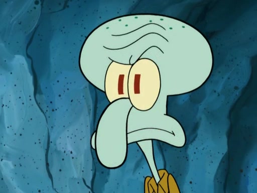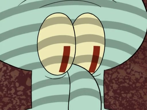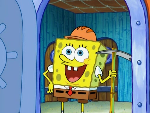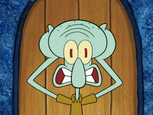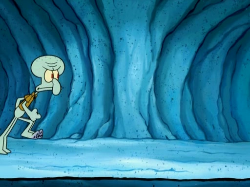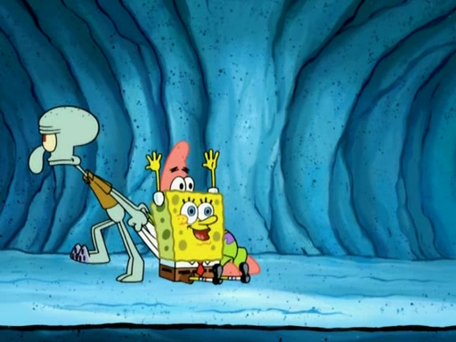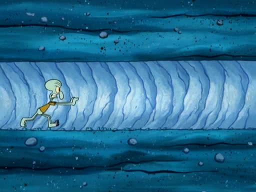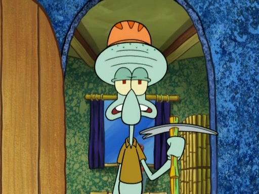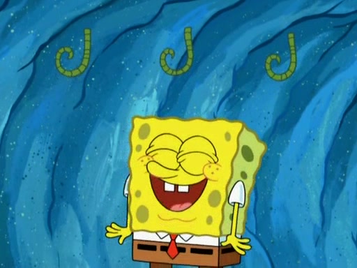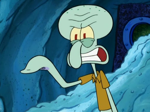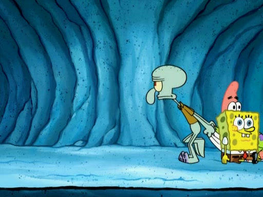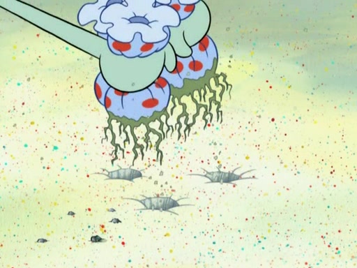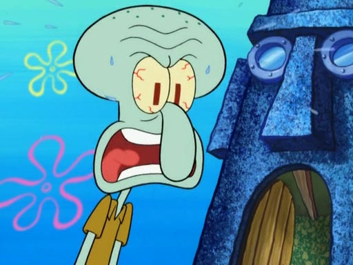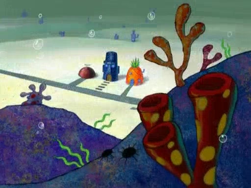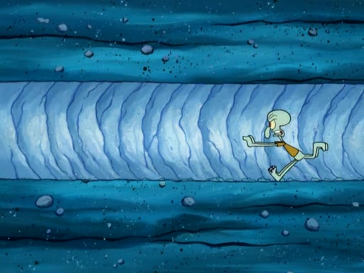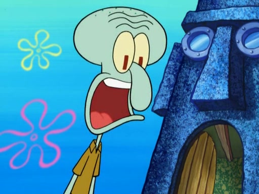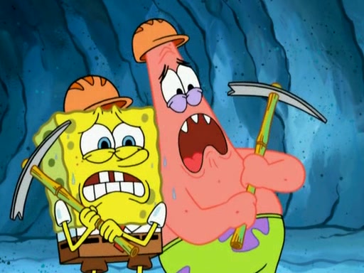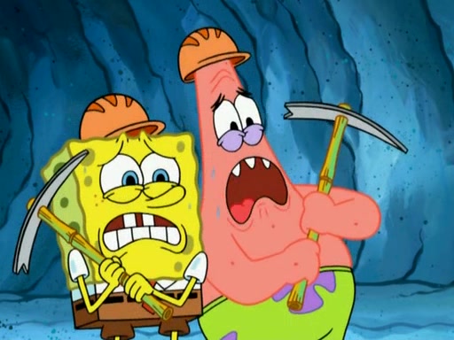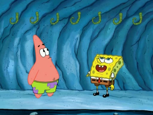 They eventually meet up and start playing. Squidward can hear them playing, so he goes outside, but they are not in his yard. He looks in Patrick's house, but they are not there. He looks all around SpongeBob's house, but they are not there. He can't find them anywhere and eventually, that sends Squidward into a rage as he believes SpongeBob and Patrick have finally become ghosts, so he shouts "WHERE ARE THEY?!" and starts jumping up and down. This causes the roots underground to wiggle, and SpongeBob and Patrick think they are dancing. So they start dancing. This sinks Squidward's house and Squidward finally realizes that they've been underground the whole time and enters his house through the roof hatch. Squidward comes out of his house and makes SpongeBob and Patrick dig it back out while he relaxes, but Patrick accidentally breaks Squidward's window and SpongeBob accidentally lets all the dirt flood Squidward and SpongeBob out of the house and Squidward threatens SpongeBob and Patrick if they don't obey Squidward and dig out his house by the count of 3, Squidward will turn them into chum. SpongeBob and Patrick dig more, but when Squidward reaches 3, they start running away in panic from Squidward, digging more tunnels. As they are doing this, SpongeBob and Patrick sink all the buildings in Bikini Bottom, including their own houses, downtown, and even The Krusty Krab. Plankton then realizes that The Chum Bucket is the only restaurant in town, but it sinks too. After a whole lot of digging, SpongeBob and Patrick come to a rock, and a furious Squidward corners towards them. After he yells at them, all of Bikini Bottom sinks underground. Sometime later, SpongeBob, Squidward, and the other Bikini Bottomites are digging out Bikini Bottom. The episode ends with SpongeBob saying "Another beautiful day under Bikini Bottom," and Squidward putting on a mining helmet, and saying "I hate neighbours."