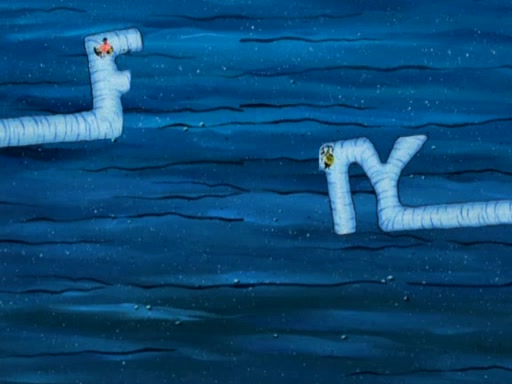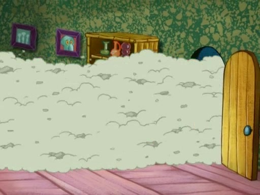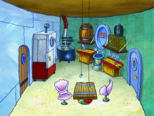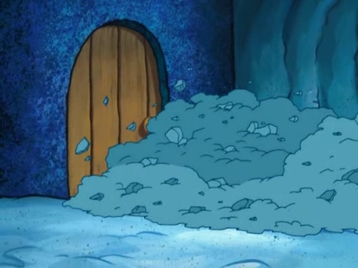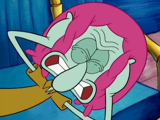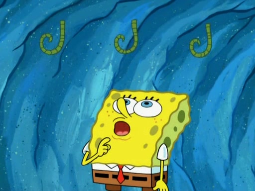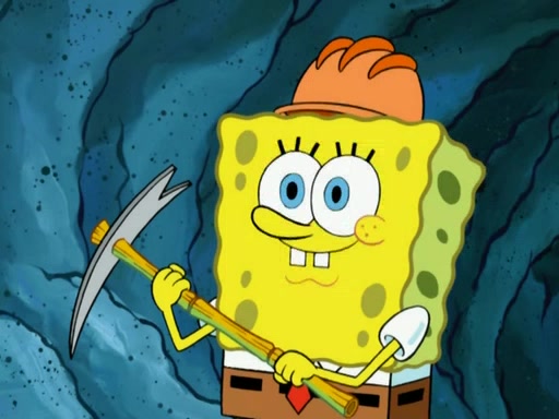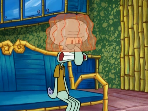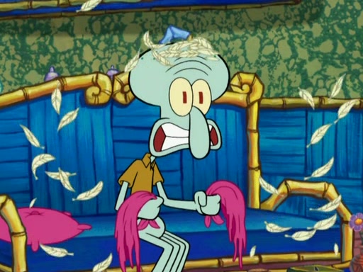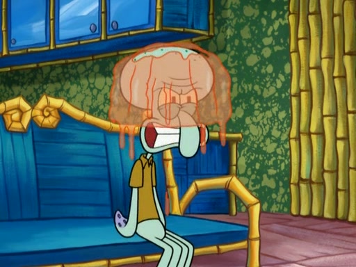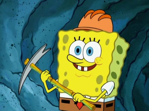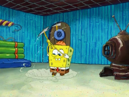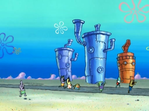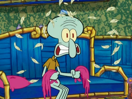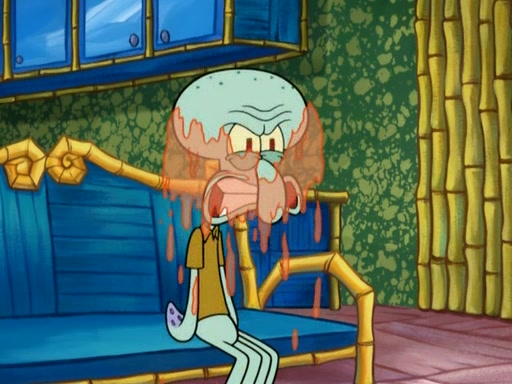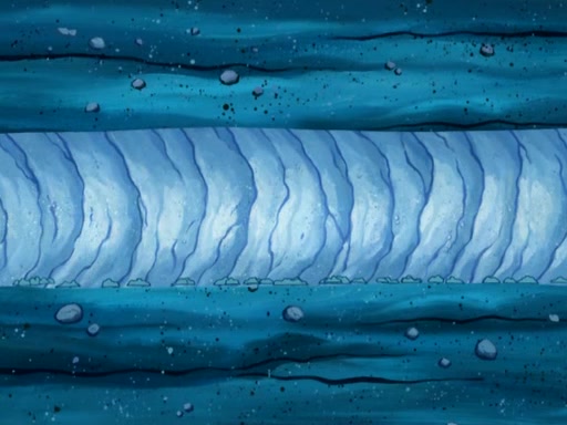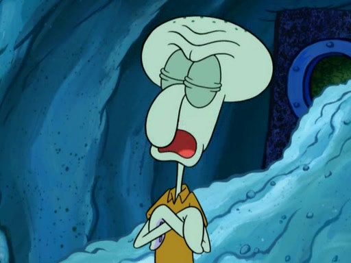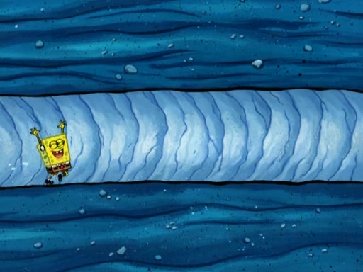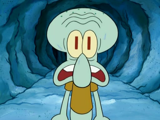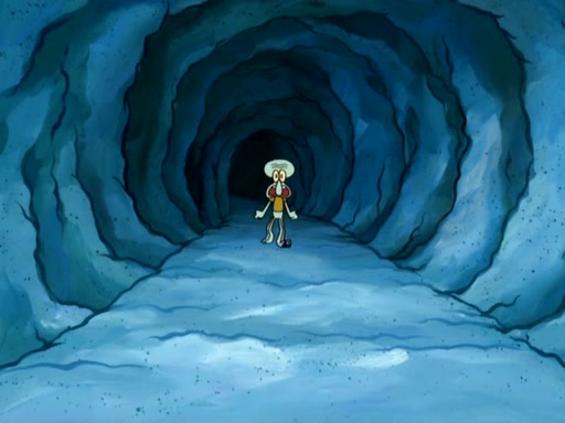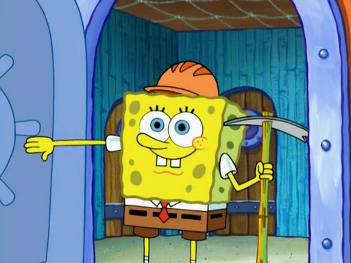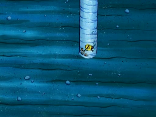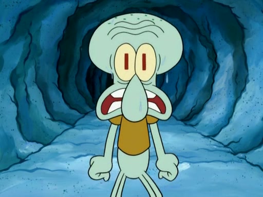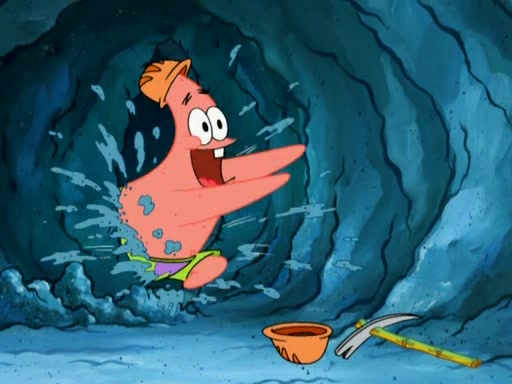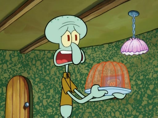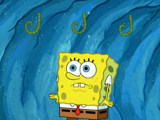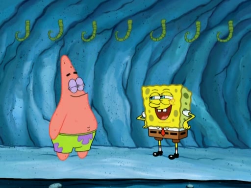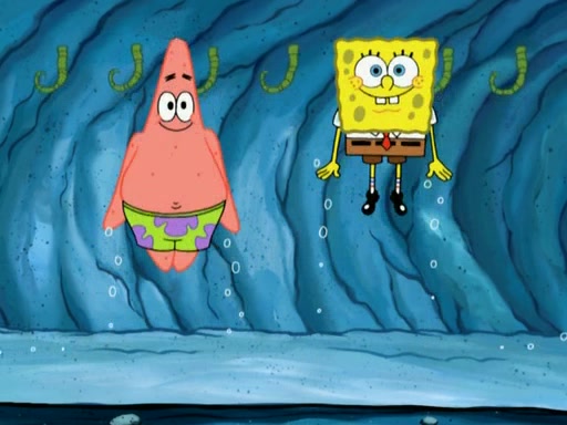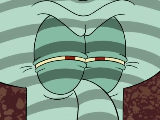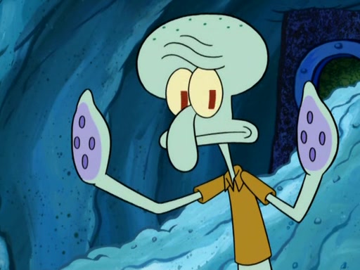 They eventually meet up and start playing. Squidward can hear them playing, so he goes outside, but they are not in his yard. He looks in Patrick's house, but they are not there. He looks all around SpongeBob's house, but they are not there. He can't find them anywhere and eventually, that sends Squidward into a rage as he believes SpongeBob and Patrick have finally become ghosts, so he shouts "WHERE ARE THEY?!" and starts jumping up and down. This causes the roots underground to wiggle, and SpongeBob and Patrick think they are dancing. So they start dancing. This sinks Squidward's house and Squidward finally realizes that they've been underground the whole time and enters his house through the roof hatch. Squidward comes out of his house and makes SpongeBob and Patrick dig it back out while he relaxes, but Patrick accidentally breaks Squidward's window and SpongeBob accidentally lets all the dirt flood Squidward and SpongeBob out of the house and Squidward threatens SpongeBob and Patrick if they don't obey Squidward and dig out his house by the count of 3, Squidward will turn them into chum. SpongeBob and Patrick dig more, but when Squidward reaches 3, they start running away in panic from Squidward, digging more tunnels. As they are doing this, SpongeBob and Patrick sink all the buildings in Bikini Bottom, including their own houses, downtown, and even The Krusty Krab. Plankton then realizes that The Chum Bucket is the only restaurant in town, but it sinks too. After a whole lot of digging, SpongeBob and Patrick come to a rock, and a furious Squidward corners towards them. After he yells at them, all of Bikini Bottom sinks underground. Sometime later, SpongeBob, Squidward, and the other Bikini Bottomites are digging out Bikini Bottom. The episode ends with SpongeBob saying "Another beautiful day under Bikini Bottom," and Squidward putting on a mining helmet, and saying "I hate neighbours."