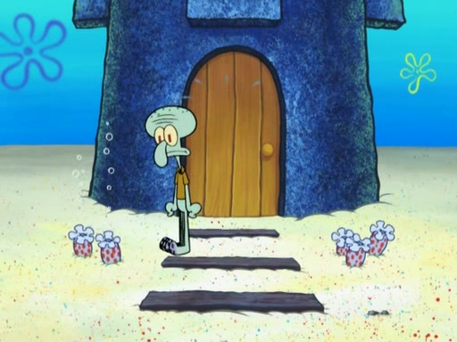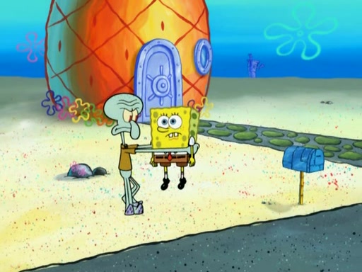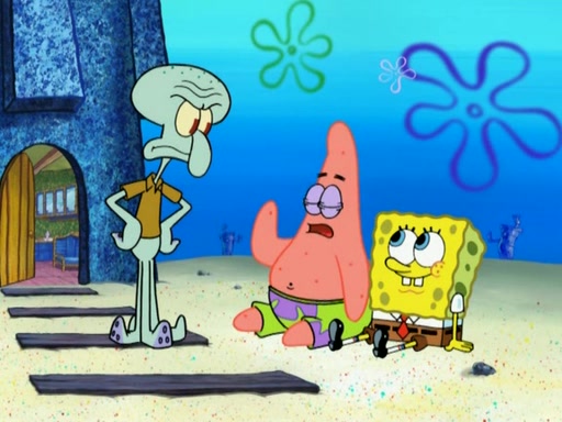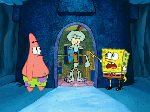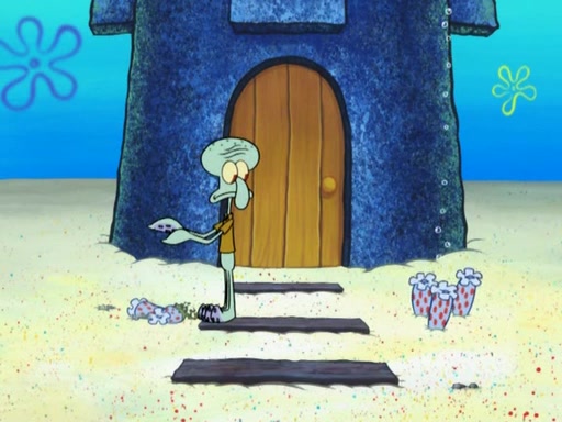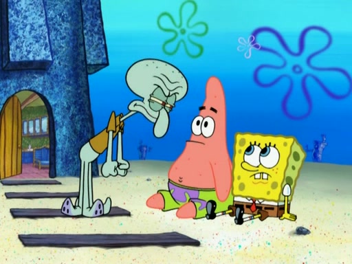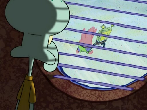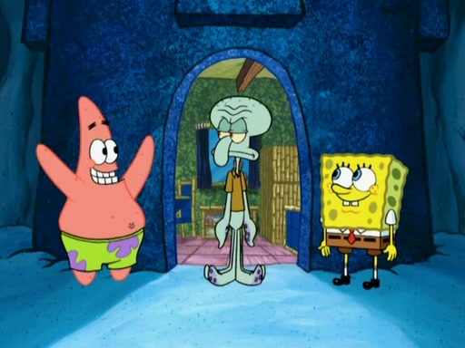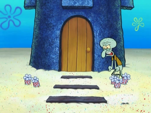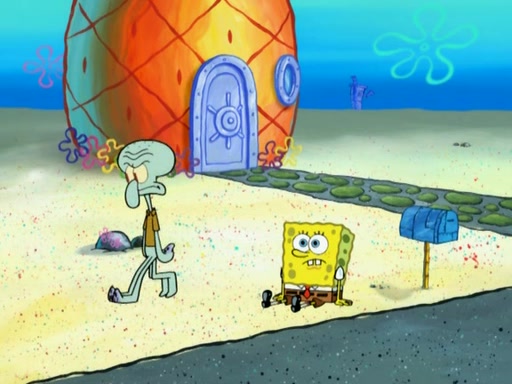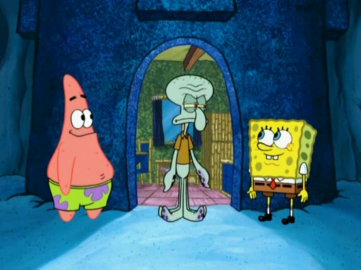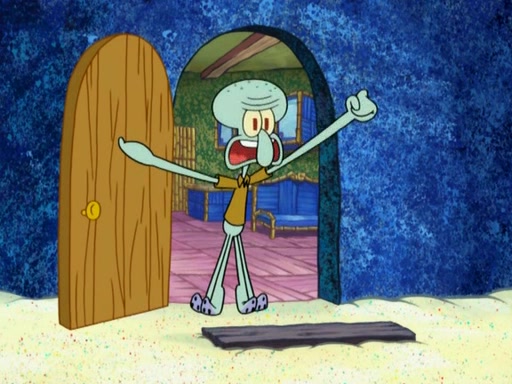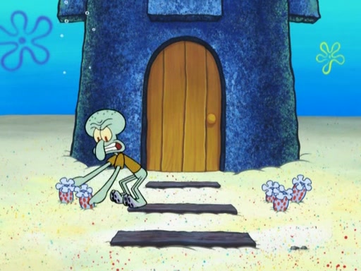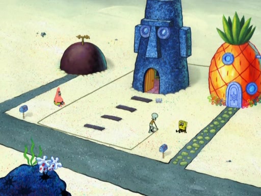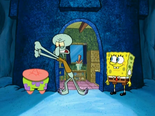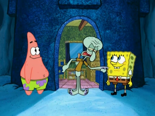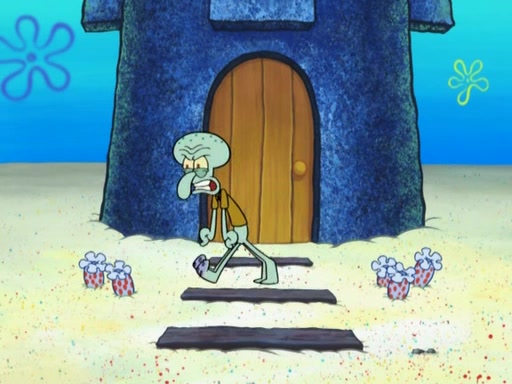 It is a beautiful day on Conch Street, where SpongeBob and Patrick are giggling and playing by running back and forth between their houses. Squidward finally opens up his blinds to look out of his window, and this annoys him because they are running in his yard the whole time. He finally loses his temper, and he walks outside to confront them. He stops SpongeBob and Patrick with two suction cups, and screams at them about playing in his yard. SpongeBob explains to Squidward about playing in their yard, and that they're using his yard as a walkway. Squidward now wants to make them choose which one of their yards to play, and leave his yard out of this mess. Patrick thinks he's good at choosing, but can't decide which yard to play in today, and finally lets Squidward choose. He puts SpongeBob and Patrick in their own yards, and draws a box around his, and won't let SpongeBob or Patrick step into the box, and goes inside his own house.