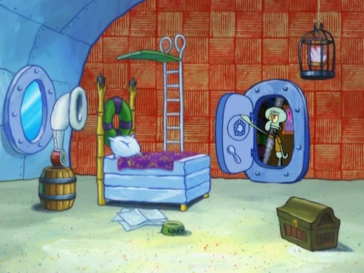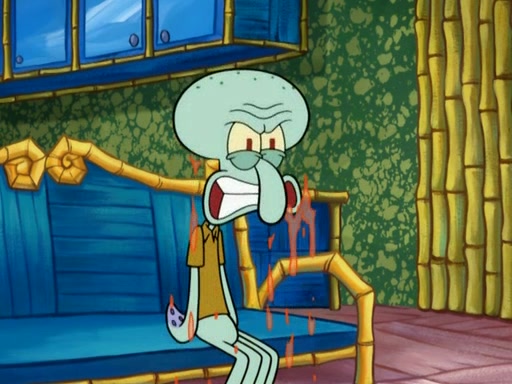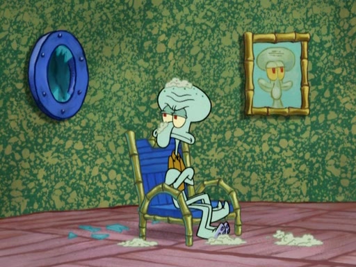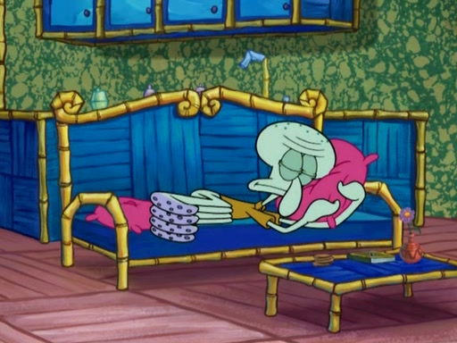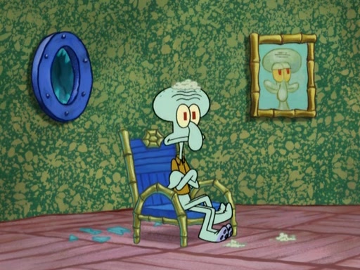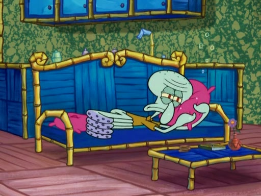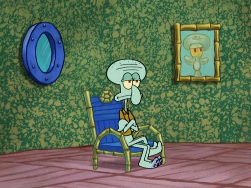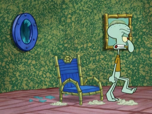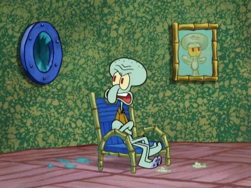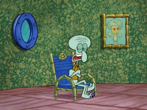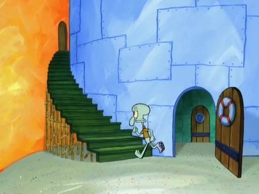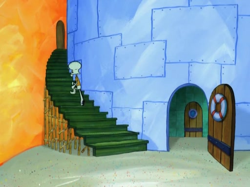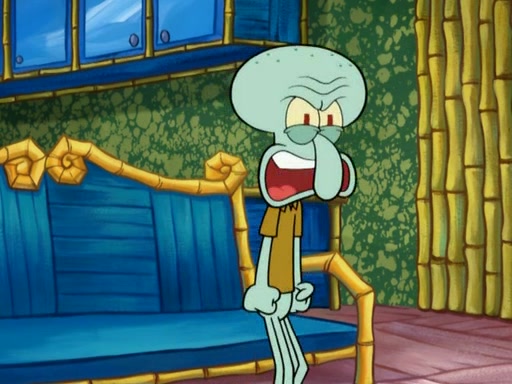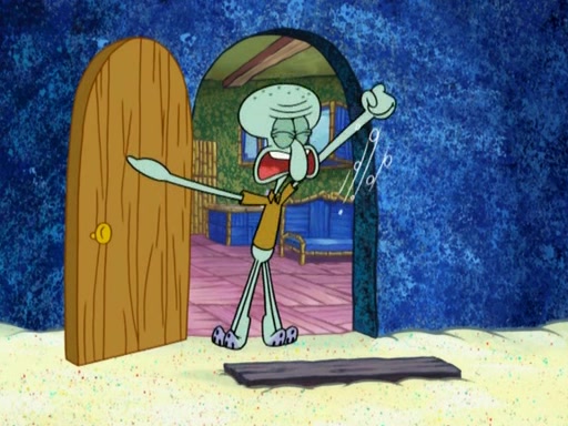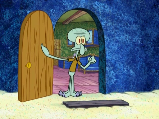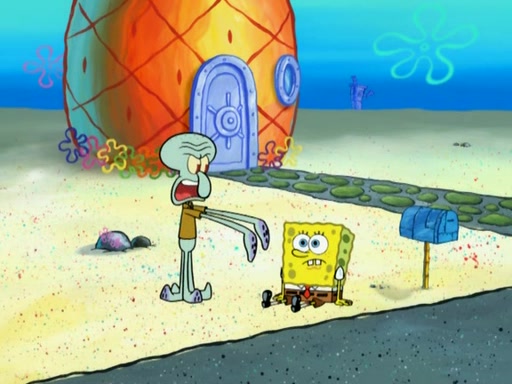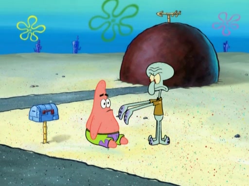 It is a beautiful day on Conch Street, where SpongeBob and Patrick are giggling and playing by running back and forth between their houses. Squidward finally opens up his blinds to look out of his window, and this annoys him because they are running in his yard the whole time. He finally loses his temper, and he walks outside to confront them. He stops SpongeBob and Patrick with two suction cups, and screams at them about playing in his yard. SpongeBob explains to Squidward about playing in their yard, and that they're using his yard as a walkway. Squidward now wants to make them choose which one of their yards to play, and leave his yard out of this mess. Patrick thinks he's good at choosing, but can't decide which yard to play in today, and finally lets Squidward choose. He puts SpongeBob and Patrick in their own yards, and draws a box around his, and won't let SpongeBob or Patrick step into the box, and goes inside his own house.