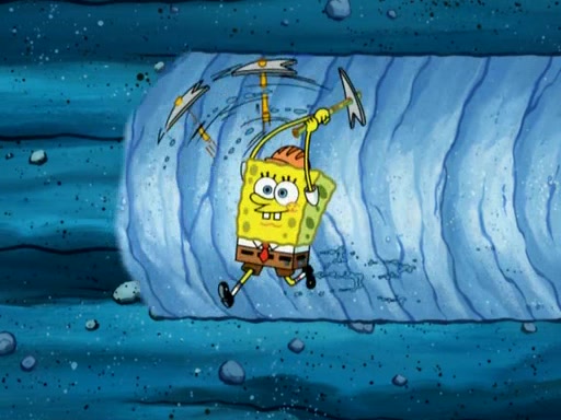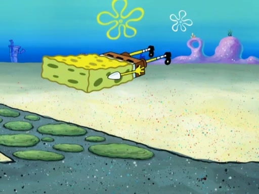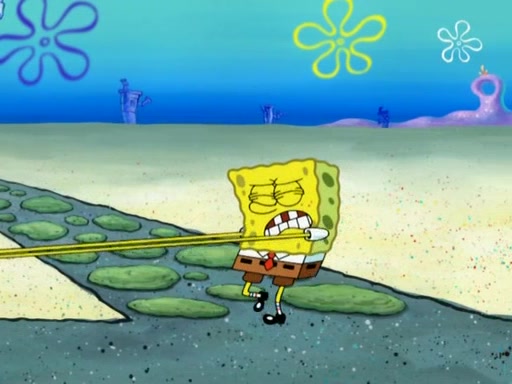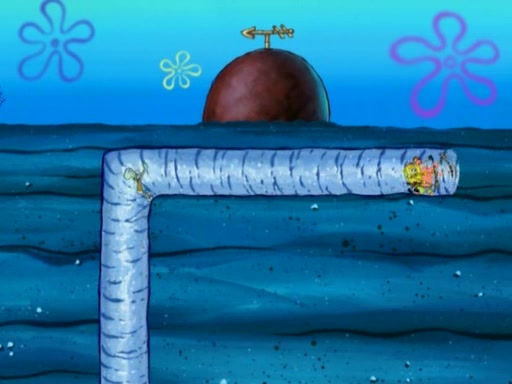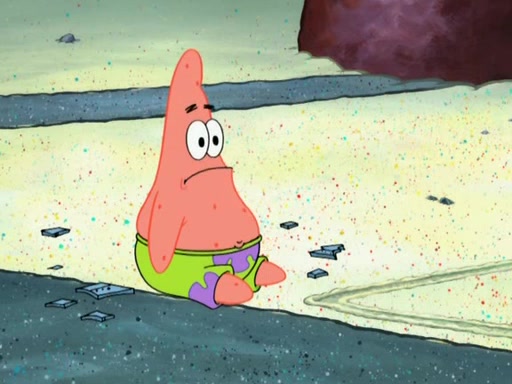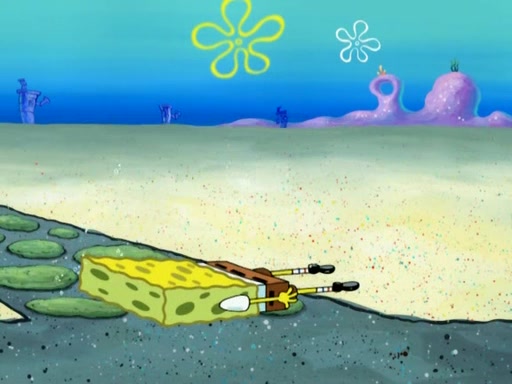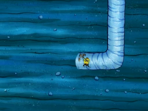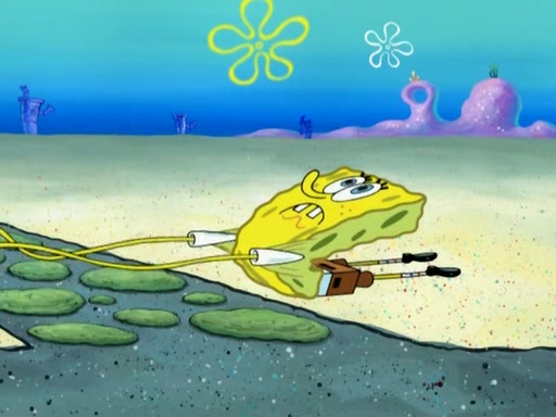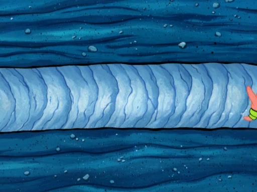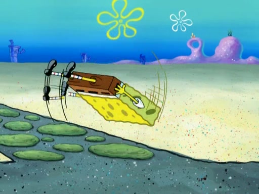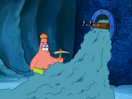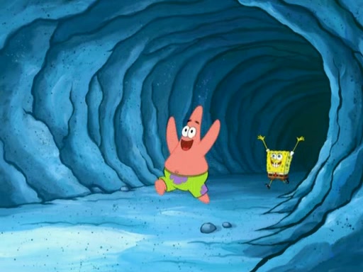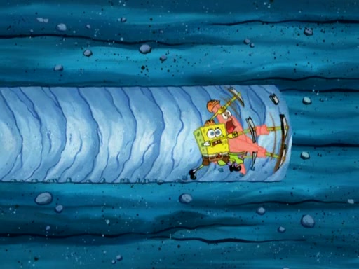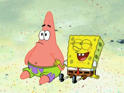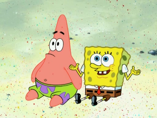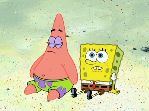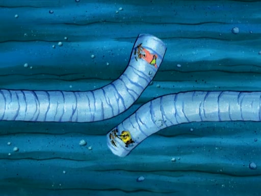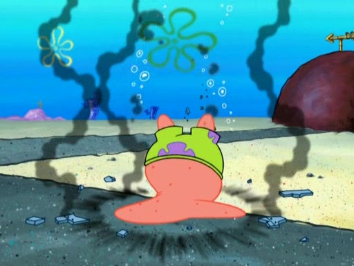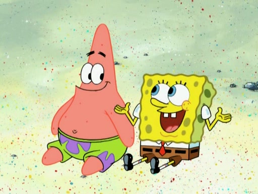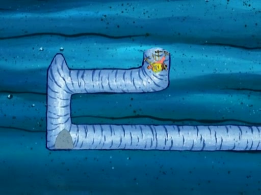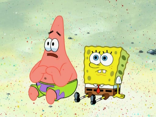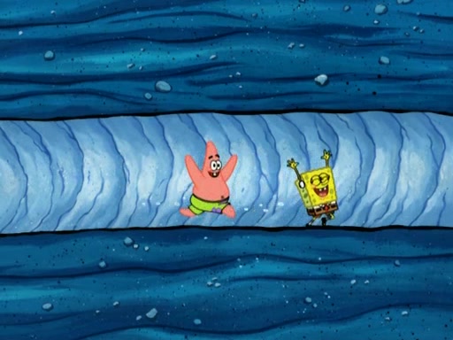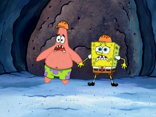 They panic and think that they will never see each other again. SpongeBob tries to walk across the road, but the traffic is terrible, and now wants Patrick to do something. Patrick now tries to squeeze himself into the mailbox in order to get to SpongeBob's house, but the mailbox breaks and explodes. SpongeBob now wants Patrick to sit tight, and ties himself to the mailbox, and now slingshots himself over to Patrick but it doesn't work. SpongeBob now has an idea, and wants Patrick to see so they think to dig a tunnel underneath their houses.