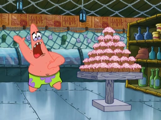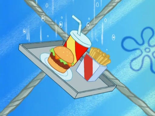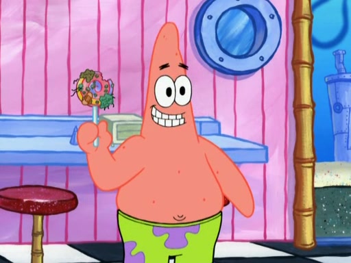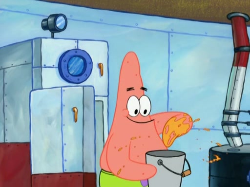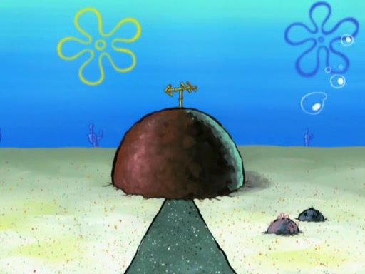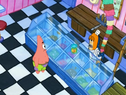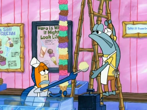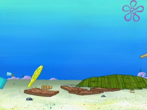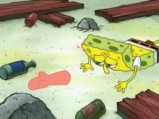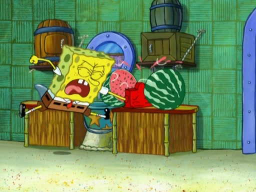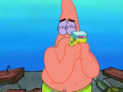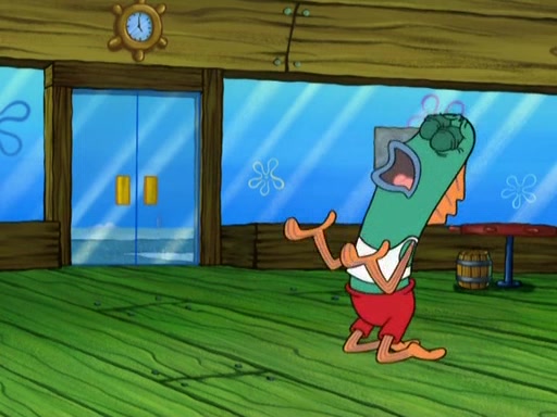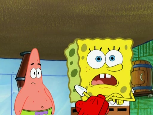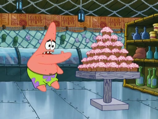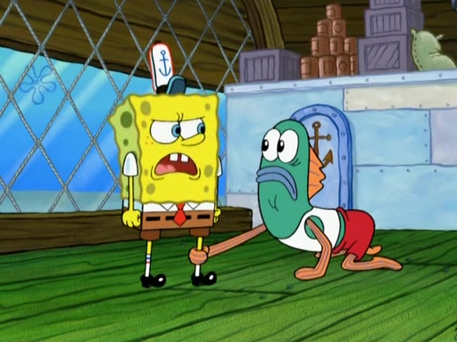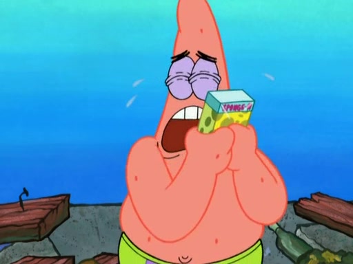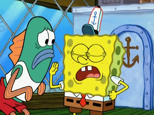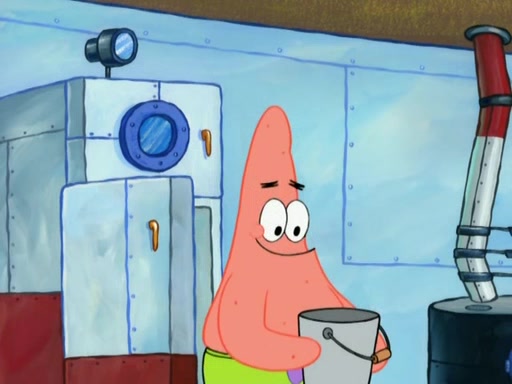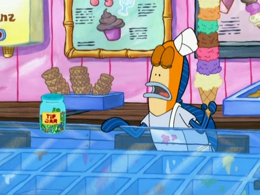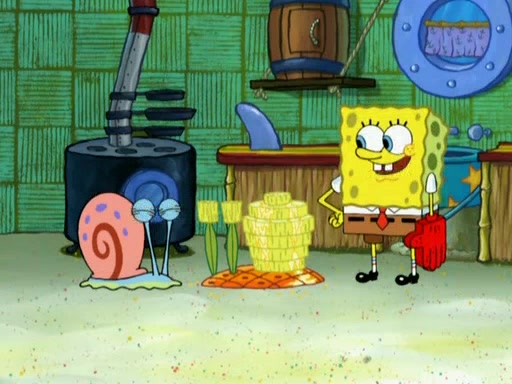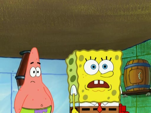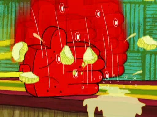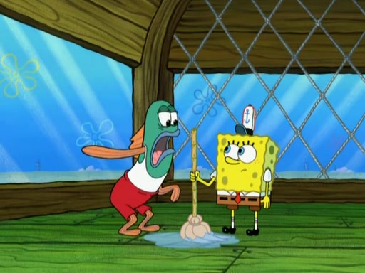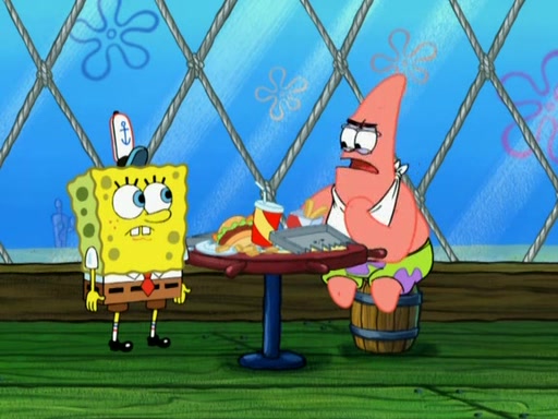 SpongeBob is in his kitchen, karate-chopping a pineapple to look like Gary. He puts it on the floor, so Gary is eye-level with it. It attracts flies and one flies into SpongeBob's mouth and he begins to choke. Patrick walks in and asks for some cheese before realizing SpongeBob's choking. Once it becomes clear to him, he punches SpongeBob. SpongeBob flies across the room and lands against the wall and the fly leaves his mouth. He offers anything in return and gives Patrick the cheese.