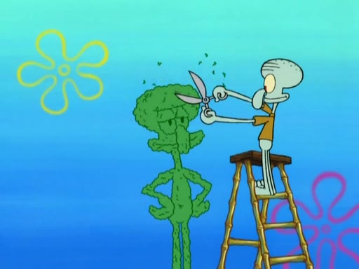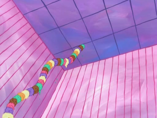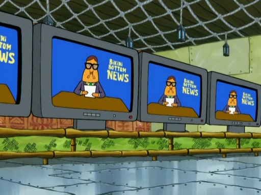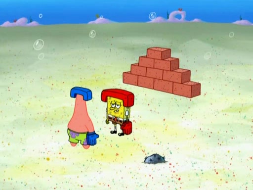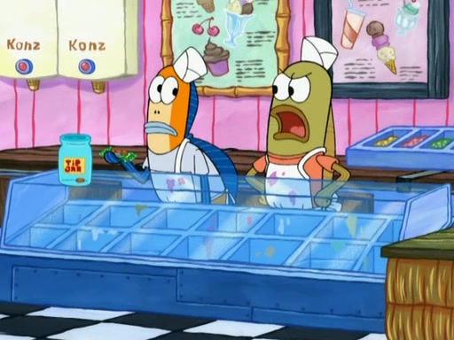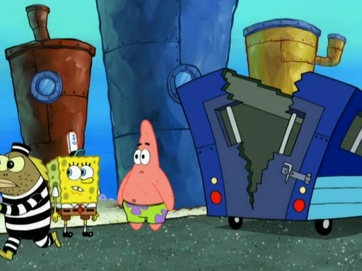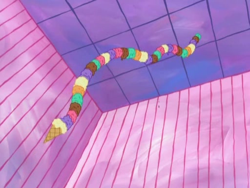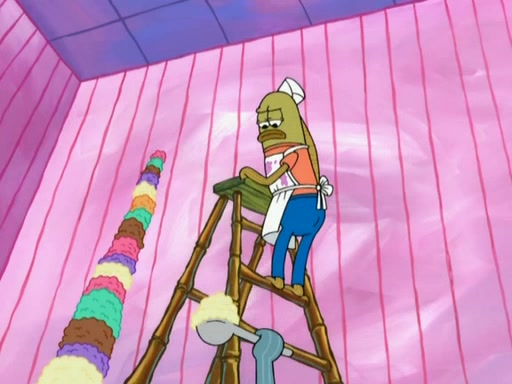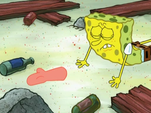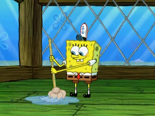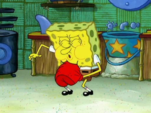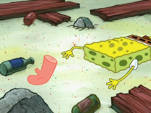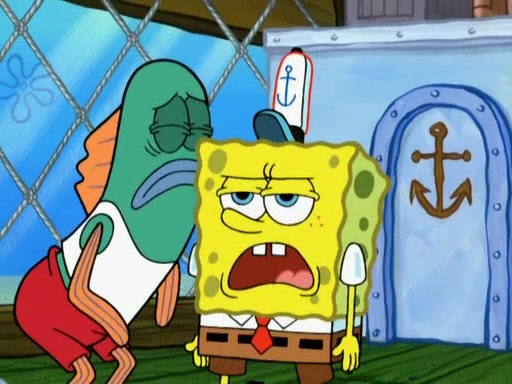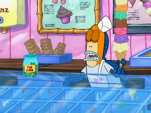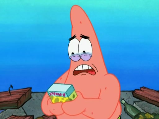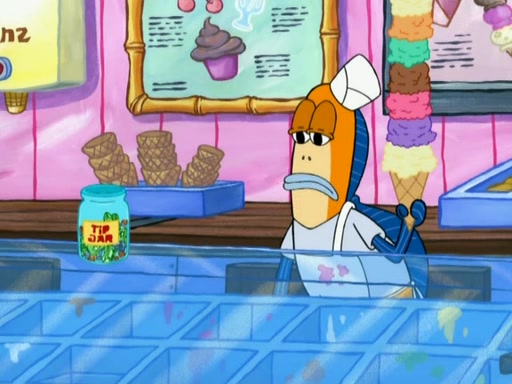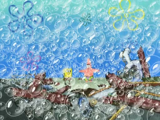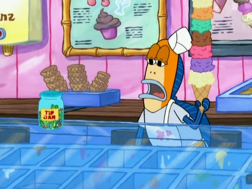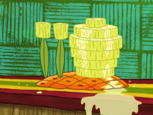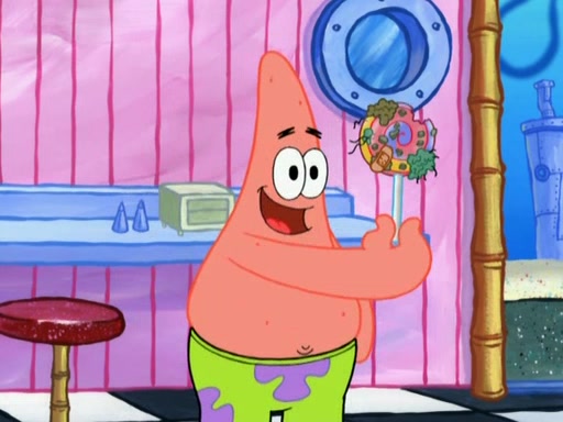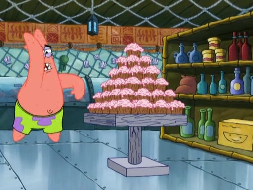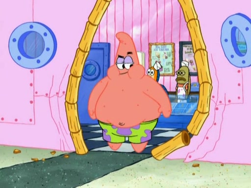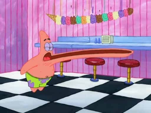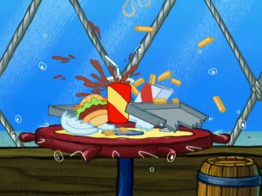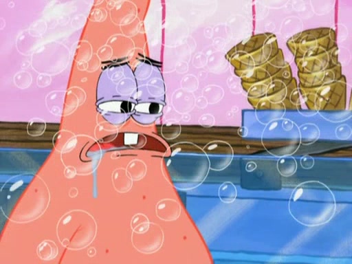 SpongeBob is in his kitchen, karate-chopping a pineapple to look like Gary. He puts it on the floor, so Gary is eye-level with it. It attracts flies and one flies into SpongeBob's mouth and he begins to choke. Patrick walks in and asks for some cheese before realizing SpongeBob's choking. Once it becomes clear to him, he punches SpongeBob. SpongeBob flies across the room and lands against the wall and the fly leaves his mouth. He offers anything in return and gives Patrick the cheese.