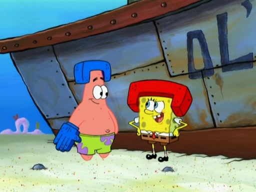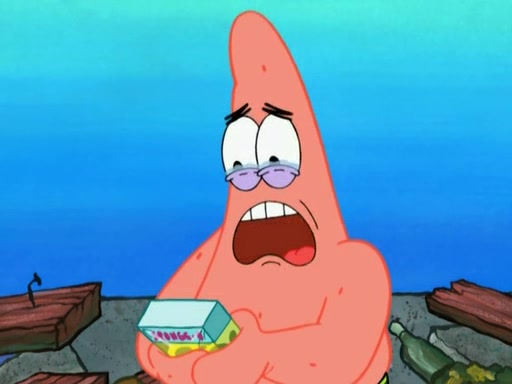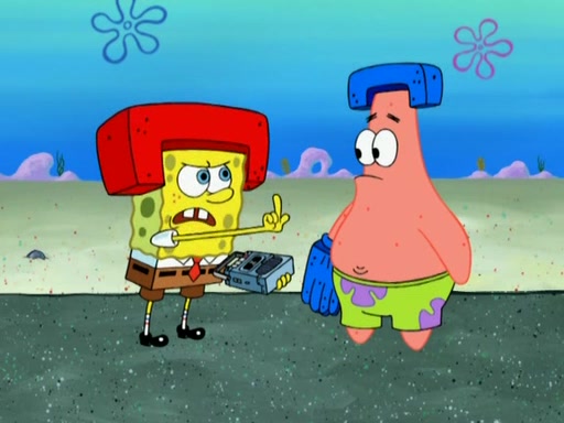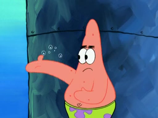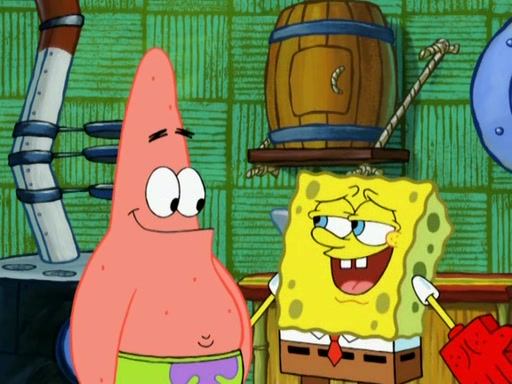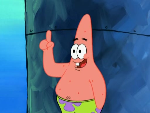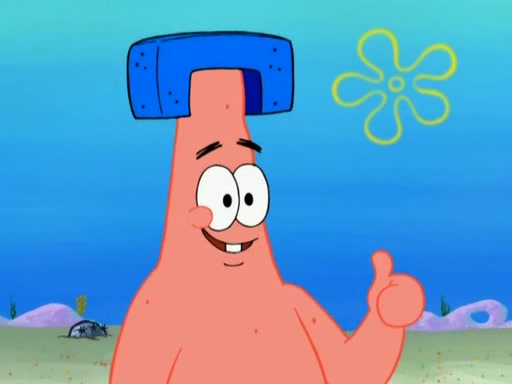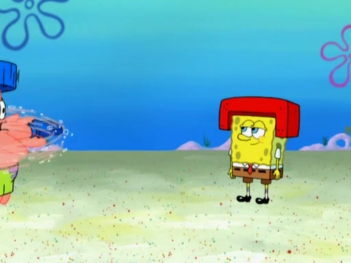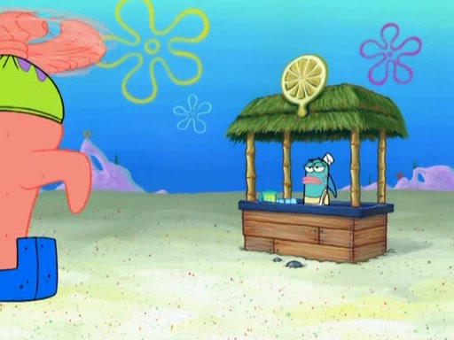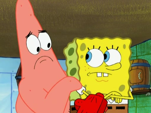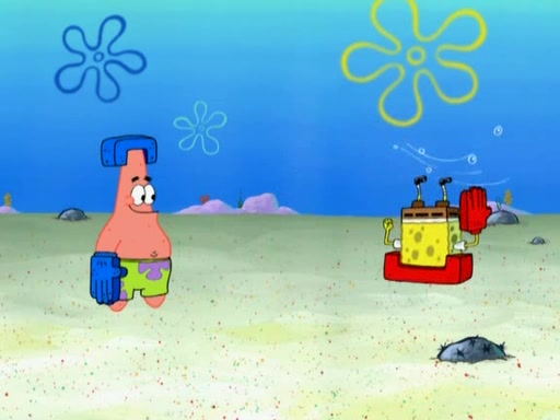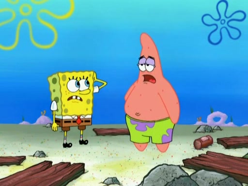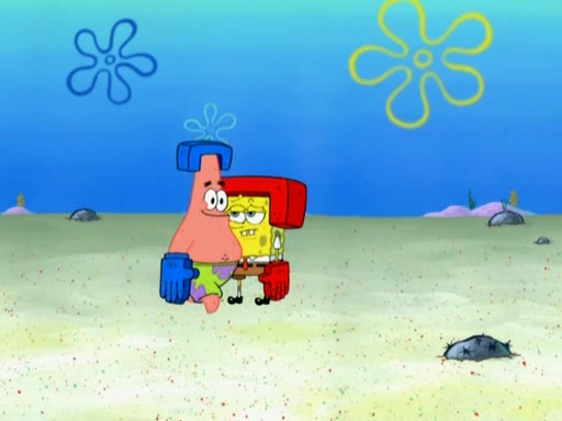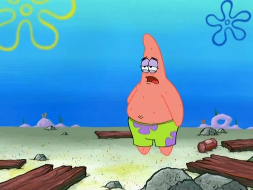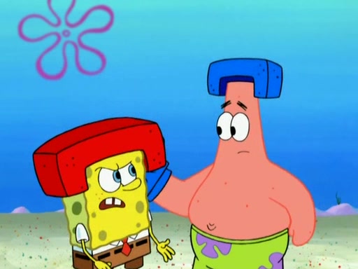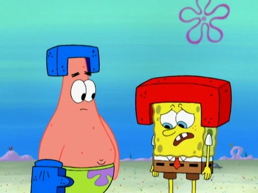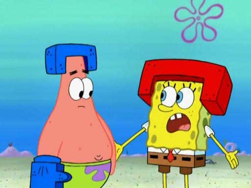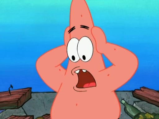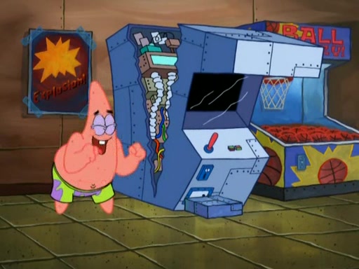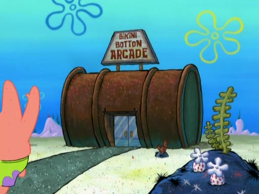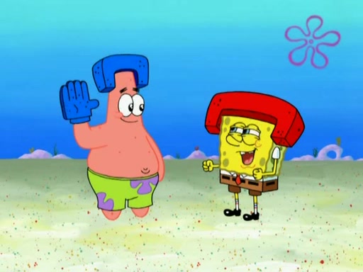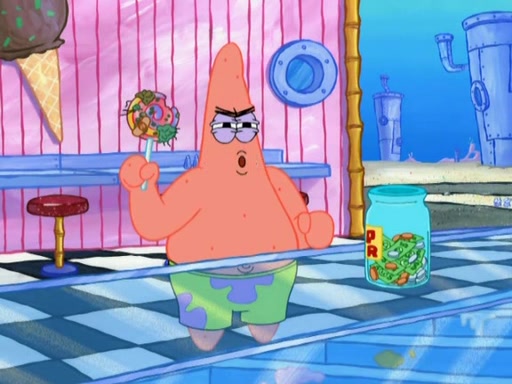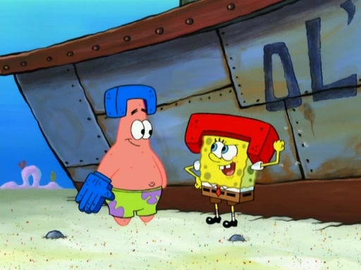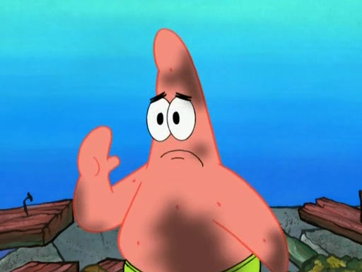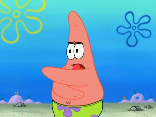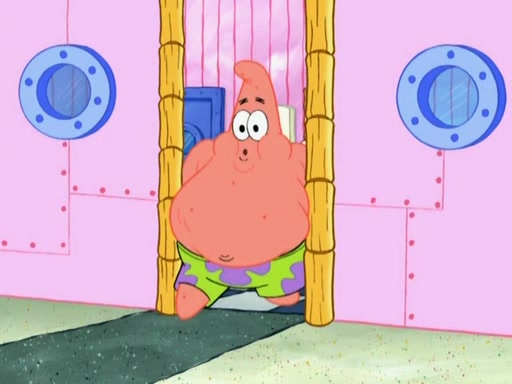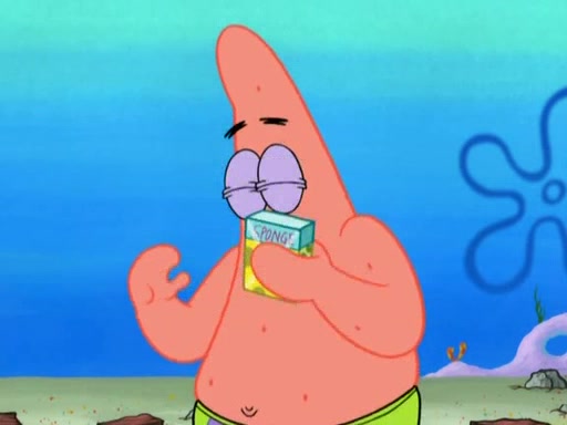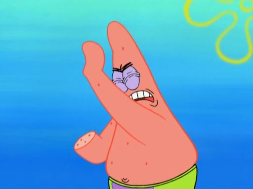 Patrick decides that he wants to learn Karate. SpongeBob is skeptical but gives in since that was the deal. He tries to teach Patrick the "reverse whirlpool," and then to fly into a brick wall and destroy it. Patrick succeeds in this but ends up unable to stop flying and destroys a lemonade stand. Next, SpongeBob tries to teach Patrick a move where he spins around on one foot. Patrick then starts spinning uncontrollably. SpongeBob gives up, and Patrick perfectly karate-chops a cinder block in half out of anger. He chops a steel sword and a boat as practice and then almost chops Baby Rechid. SpongeBob stops and warns him not to chop any living organisms or their property. He reminds him that "with power comes responsibility," but has to go to work and leaves Patrick, who starts chopping everything from arcade games to spinach.