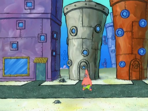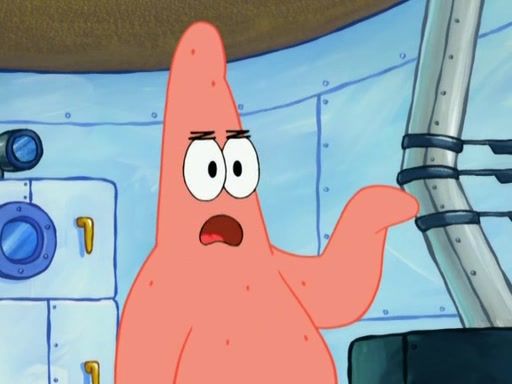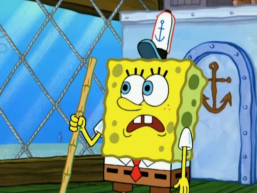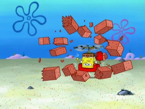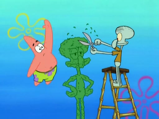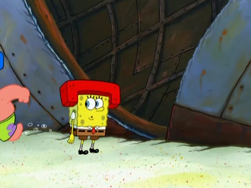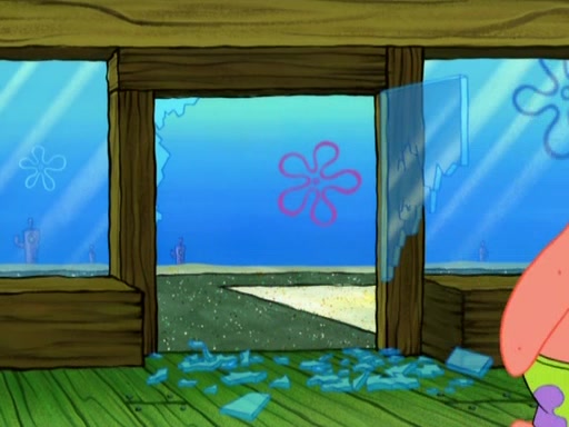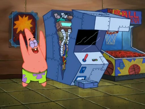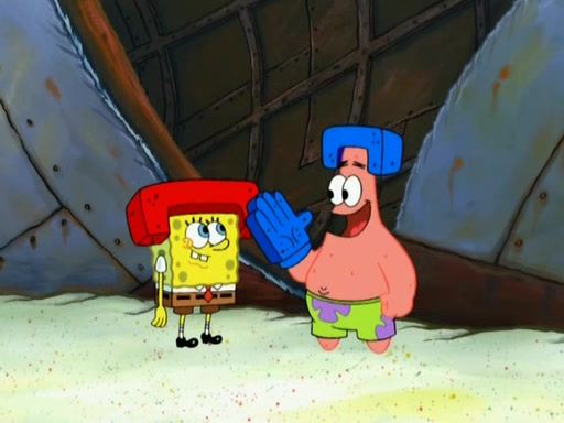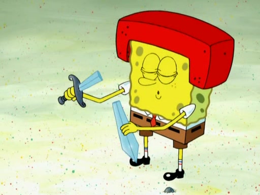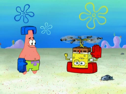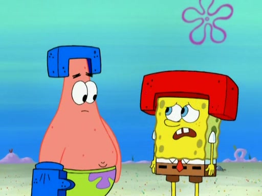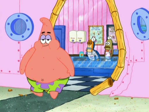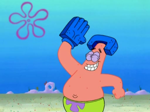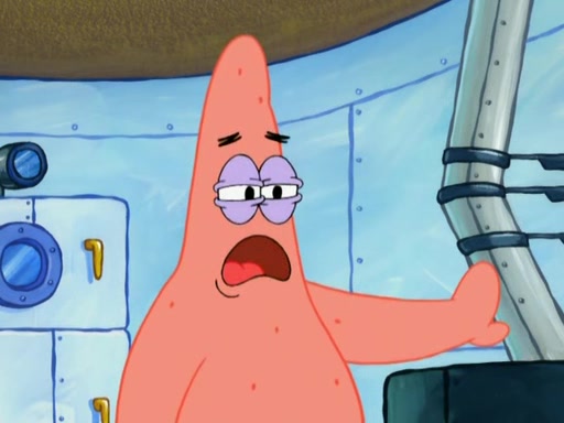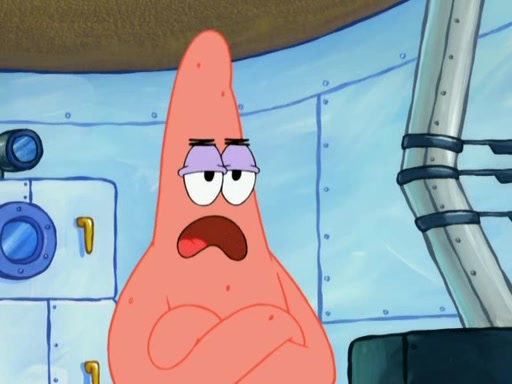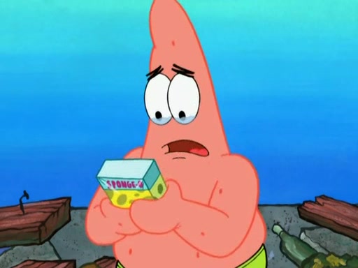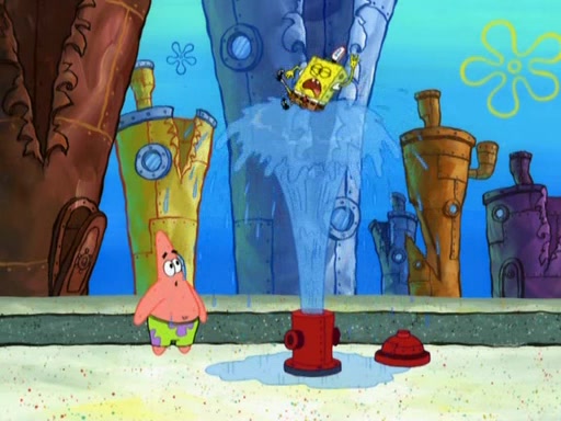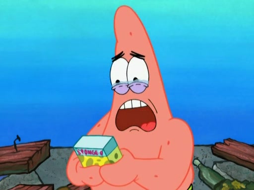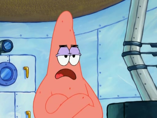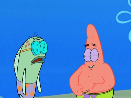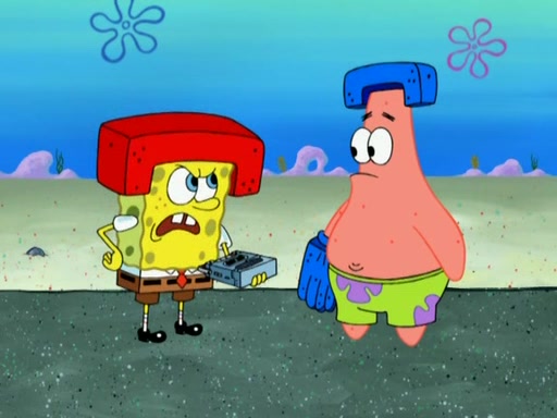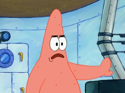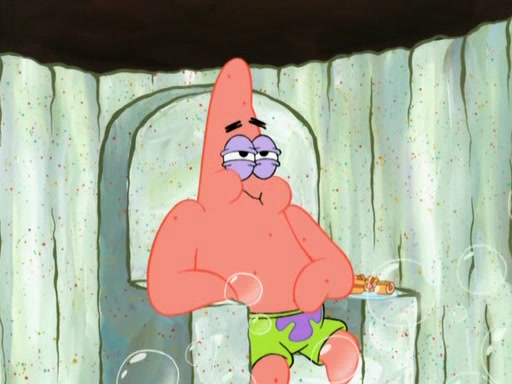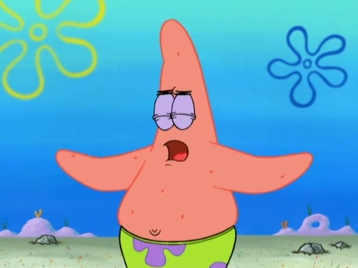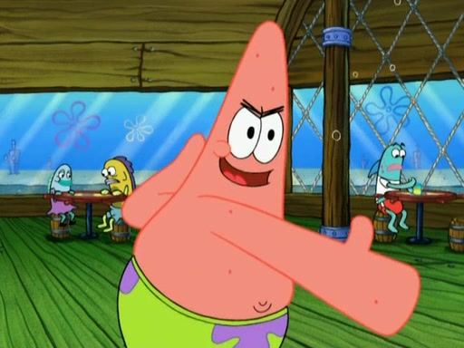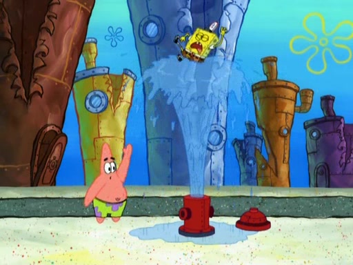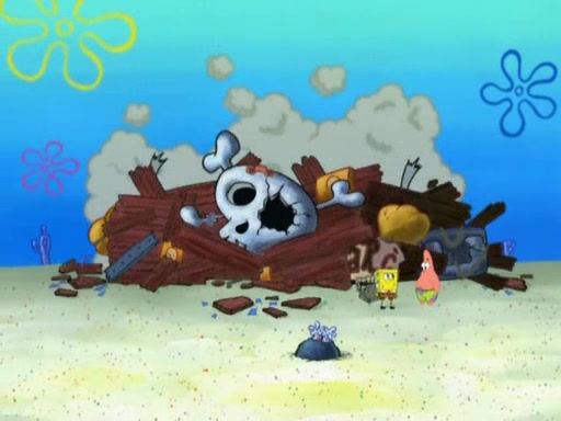 Patrick decides that he wants to learn Karate. SpongeBob is skeptical but gives in since that was the deal. He tries to teach Patrick the "reverse whirlpool," and then to fly into a brick wall and destroy it. Patrick succeeds in this but ends up unable to stop flying and destroys a lemonade stand. Next, SpongeBob tries to teach Patrick a move where he spins around on one foot. Patrick then starts spinning uncontrollably. SpongeBob gives up, and Patrick perfectly karate-chops a cinder block in half out of anger. He chops a steel sword and a boat as practice and then almost chops Baby Rechid. SpongeBob stops and warns him not to chop any living organisms or their property. He reminds him that "with power comes responsibility," but has to go to work and leaves Patrick, who starts chopping everything from arcade games to spinach.
