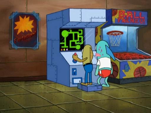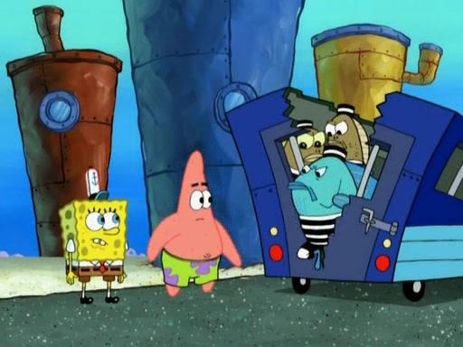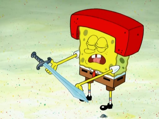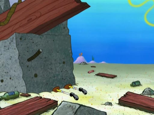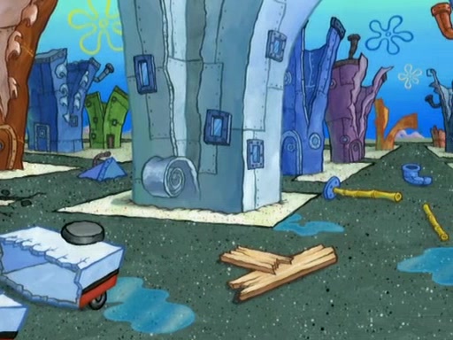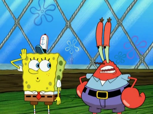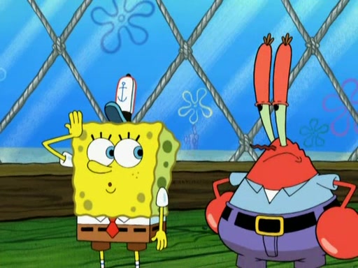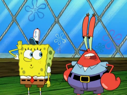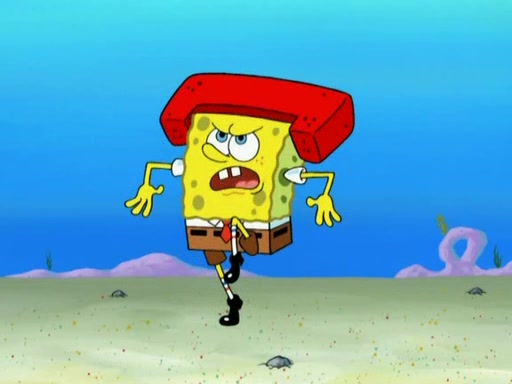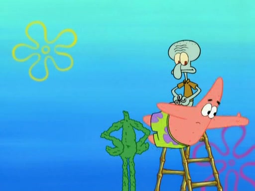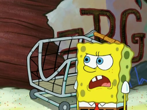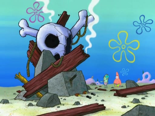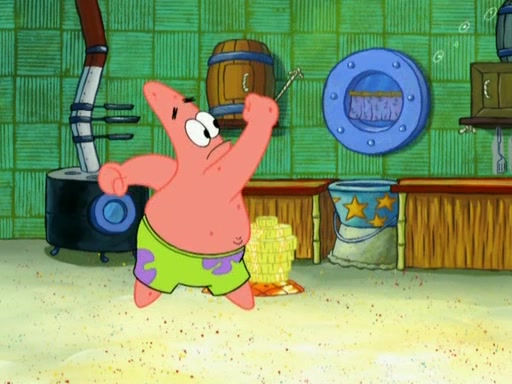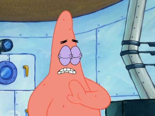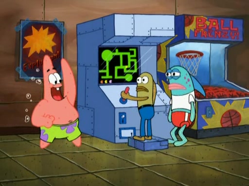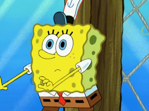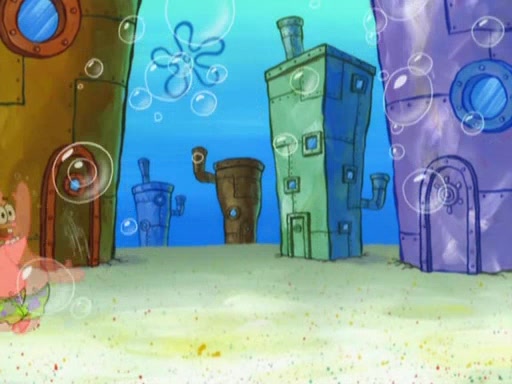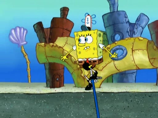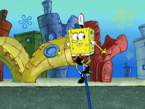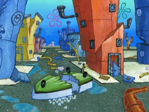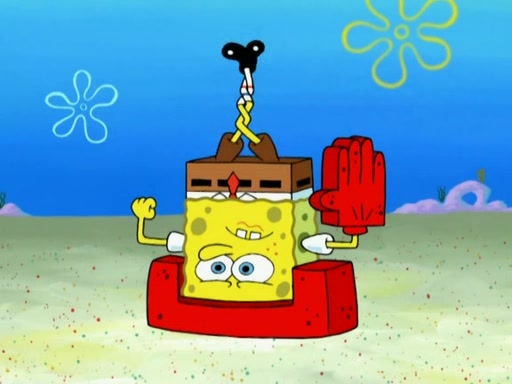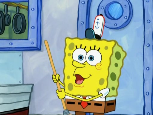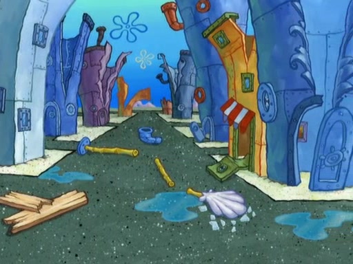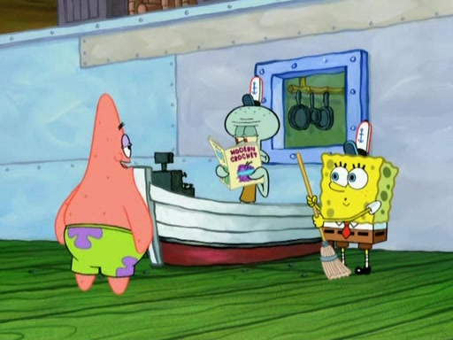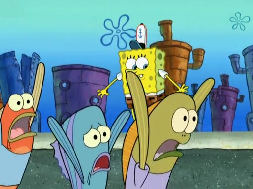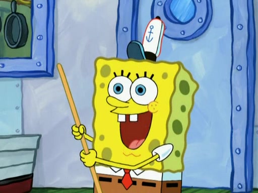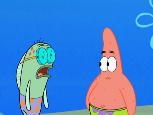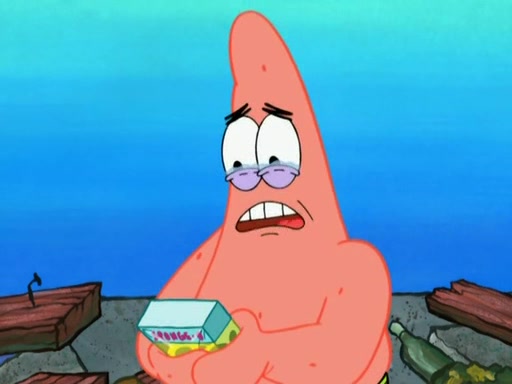 Patrick decides that he wants to learn Karate. SpongeBob is skeptical but gives in since that was the deal. He tries to teach Patrick the "reverse whirlpool," and then to fly into a brick wall and destroy it. Patrick succeeds in this but ends up unable to stop flying and destroys a lemonade stand. Next, SpongeBob tries to teach Patrick a move where he spins around on one foot. Patrick then starts spinning uncontrollably. SpongeBob gives up, and Patrick perfectly karate-chops a cinder block in half out of anger. He chops a steel sword and a boat as practice and then almost chops Baby Rechid. SpongeBob stops and warns him not to chop any living organisms or their property. He reminds him that "with power comes responsibility," but has to go to work and leaves Patrick, who starts chopping everything from arcade games to spinach.