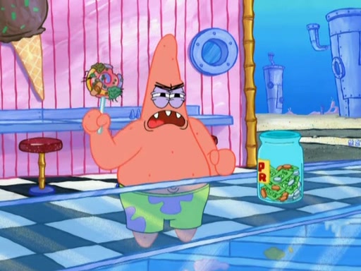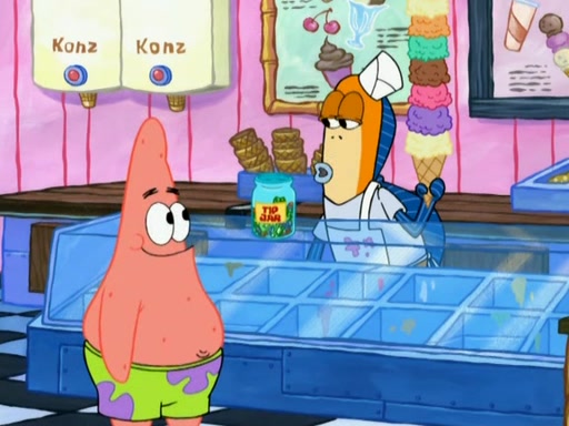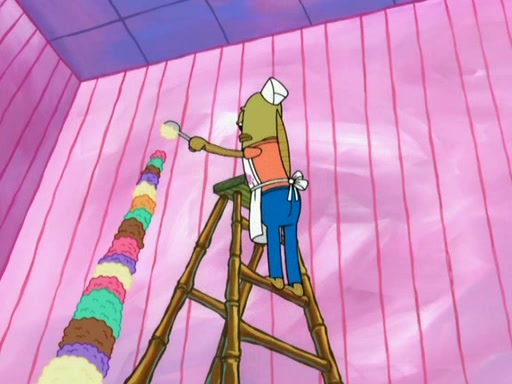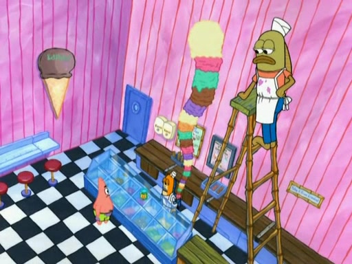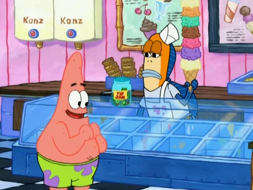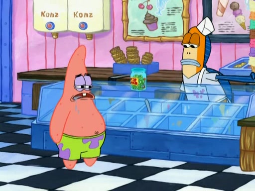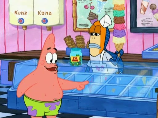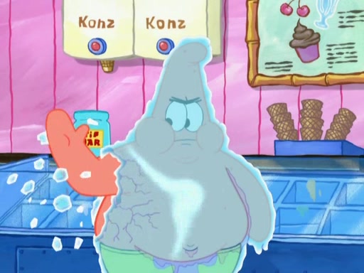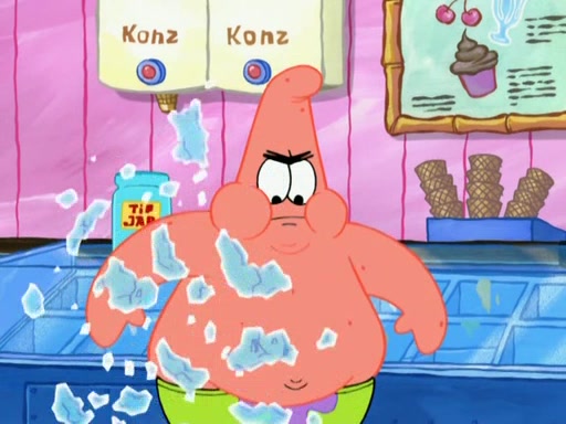 A man runs into the Krusty Krab screaming that there is a "mad chopper" on the loose, and SpongeBob, knowing the man is referring to Patrick, sets off to stop his friend. Meanwhile, Patrick is in an ice-cream shop. He is buying a cone stacked high with every flavor they have. He owes them over eighty dollars but tries to trade him for a lollipop. The ice cream man refuses and threatens to call the cops when Patrick chops the glass, cracking it, and tips the ice cream into his mouth while the ice cream man holds onto the money from the tip jar. The manager yells at the ice cream man for holding the money in the tip jar. Patrick gains considerable weight, and no longer fits through the door. He chops it, and exits. SpongeBob comes and tells Patrick to stop destroying Bikini Bottom, but by that time, Patrick's arm can't stop chopping. He eventually makes his way to the Barg'N-Mart and destroys the structure and crushes SpongeBob. He finds a pack of kitchen sponges, and believes that this is SpongeBob's carcass. He becomes very mad at himself and rips off his own hand. The real SpongeBob, who was trapped under a pile of rubble, wakes up and Patrick grows his hand back, swearing never to use karate again.