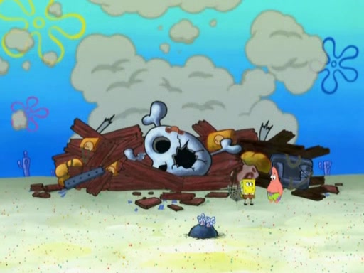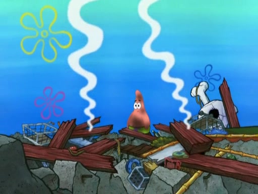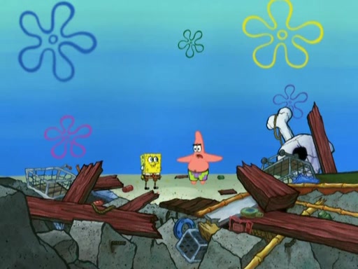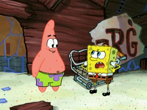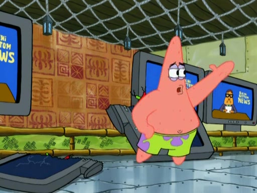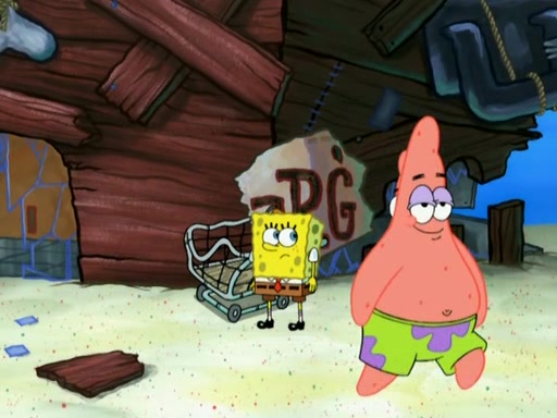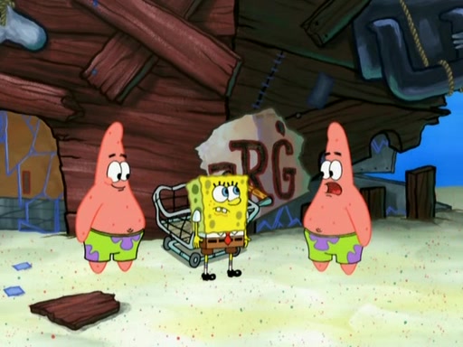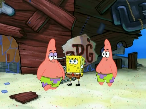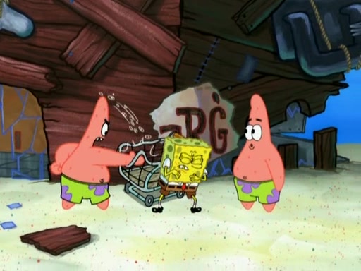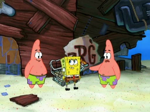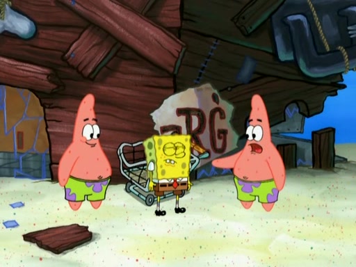 Patrick then badly rebuilds the Barg'N-Mart. Patrick is then shown karate chopping a shopping cart, leaving SpongeBob confused. Another Patrick then appears, and explains that in addition to sea stars being able to regenerate limbs, limbs are able to regenerate bodies. The two Patricks then laugh as the Barg'N-Mart gets destroyed, and the episode ends.