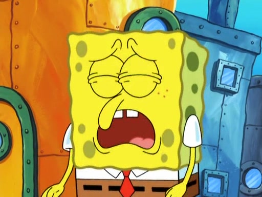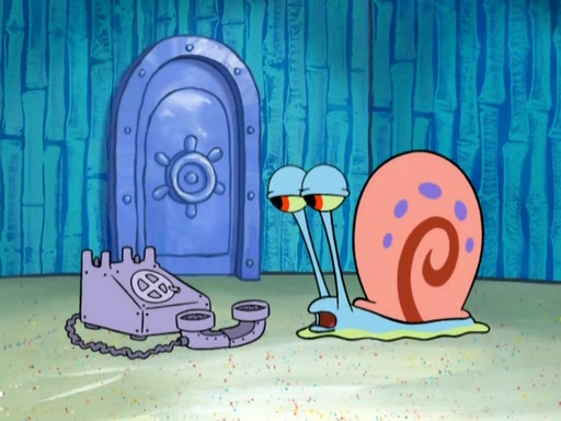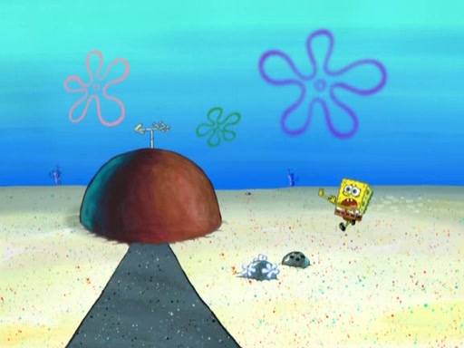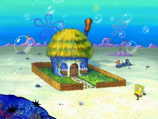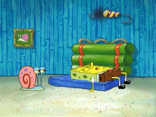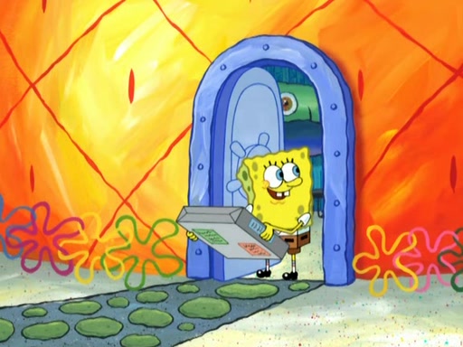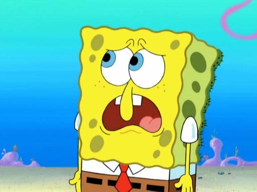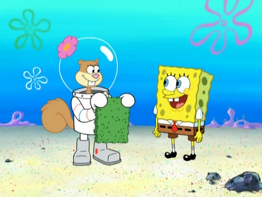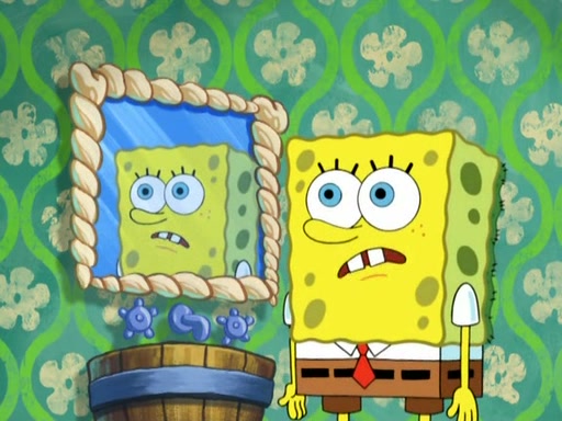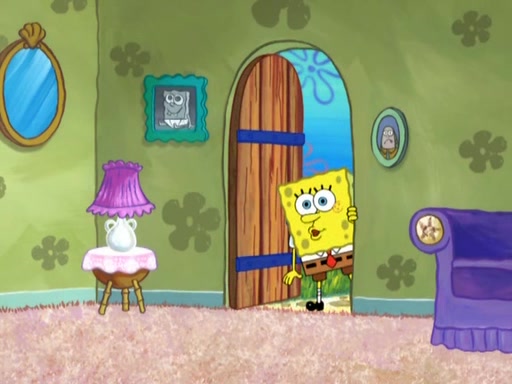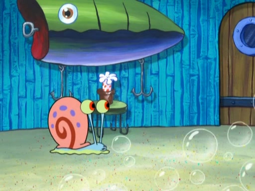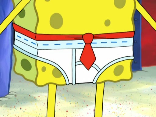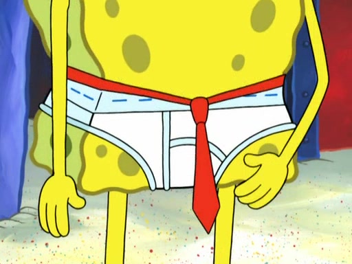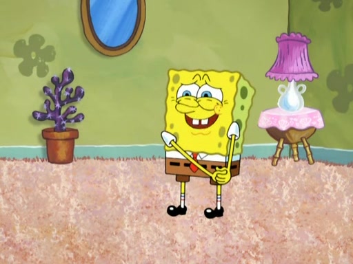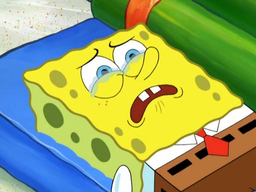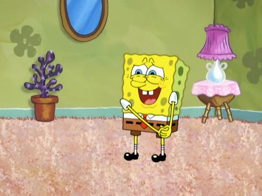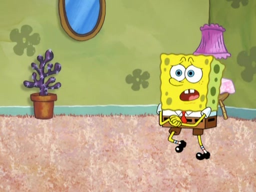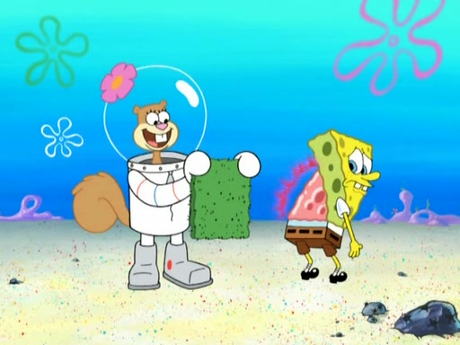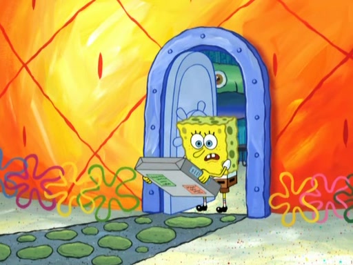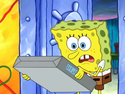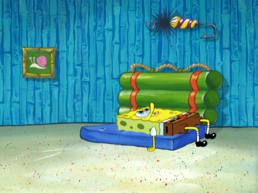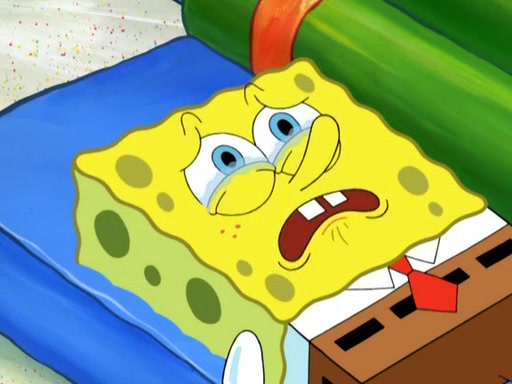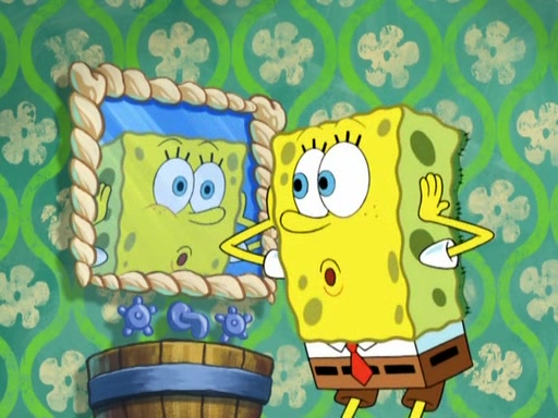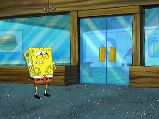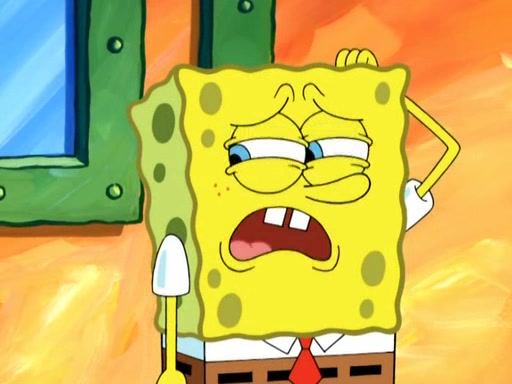 Later, he is shown at his house crying to Gary about how he can't say no to anything anyone asks him. Gary then goes to a catalog and orders something for SpongeBob, it arrives and it shows that the package was a thing called 'abrasive sponge" which is an abrasive side designed for doormat sponges to stick on their back, and the abrasive side will help them be more touch. SpongeBob feels this is perfect for his situation, so he sticks it on his back. The abrasive side makes a cruel remark at Gary which SpongeBob is unaware of, so he happily tells Gary he'll see him later.