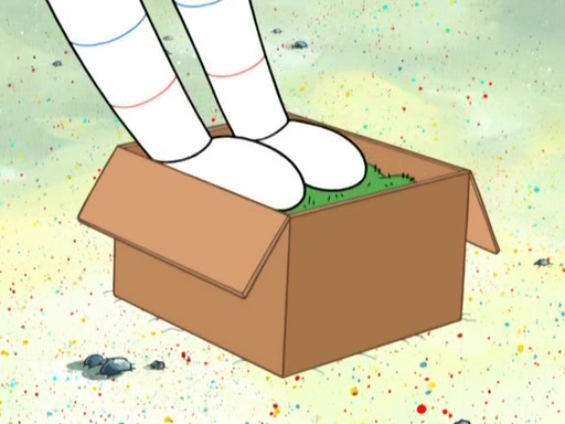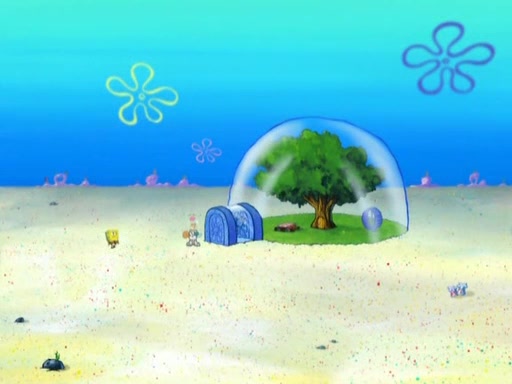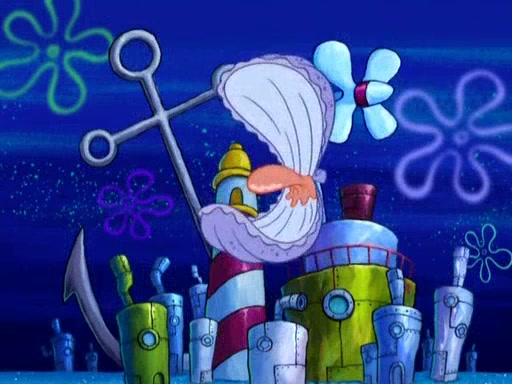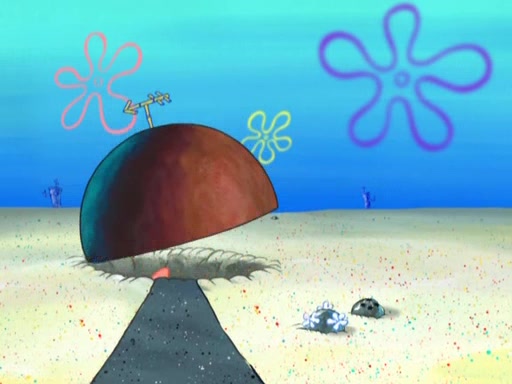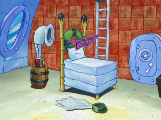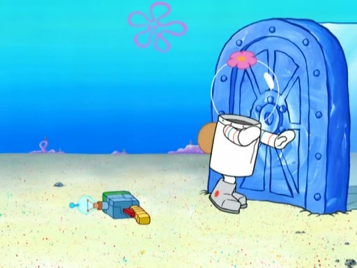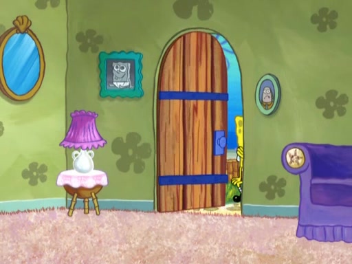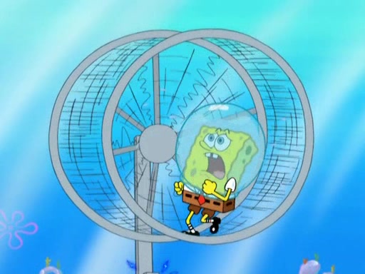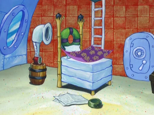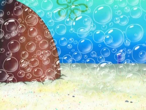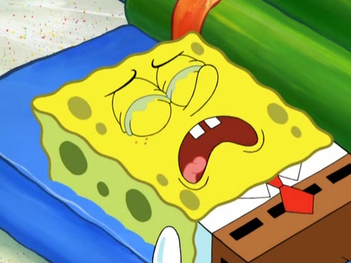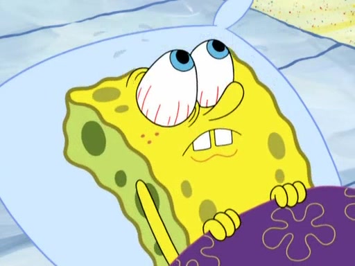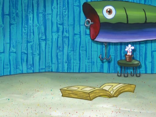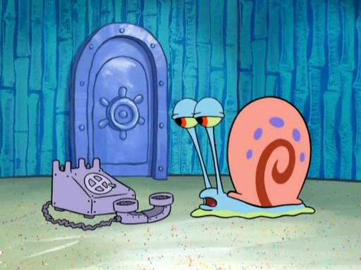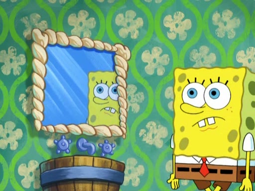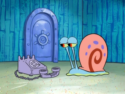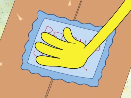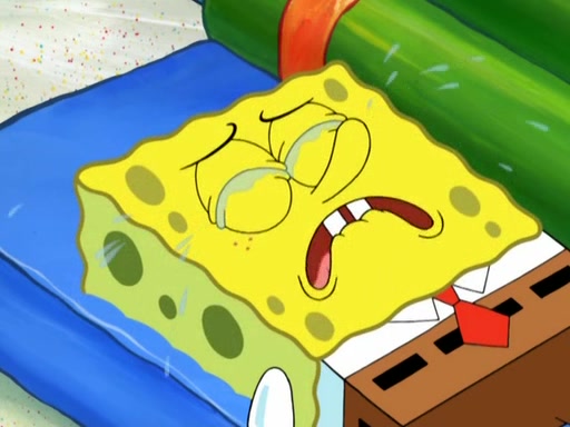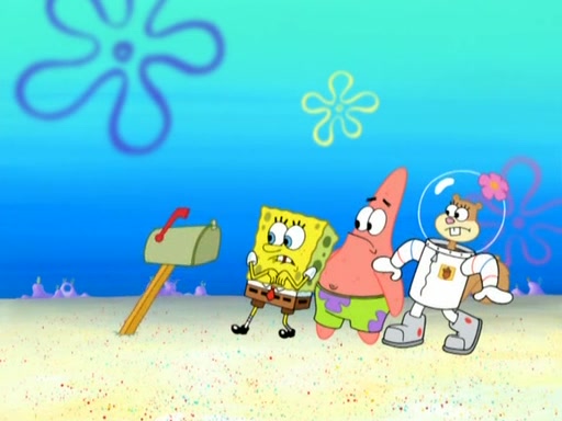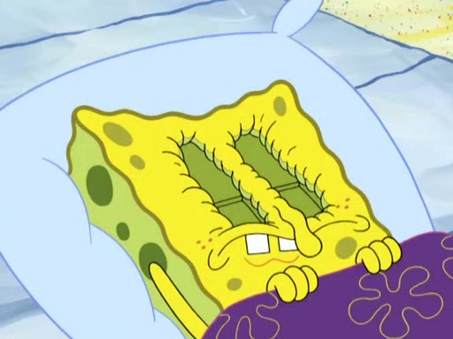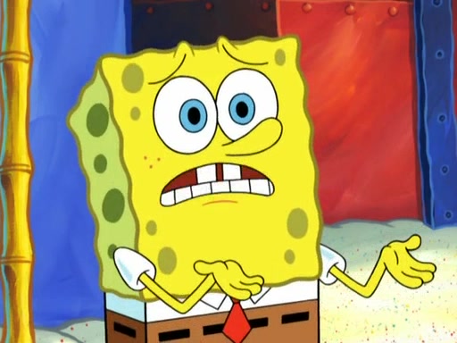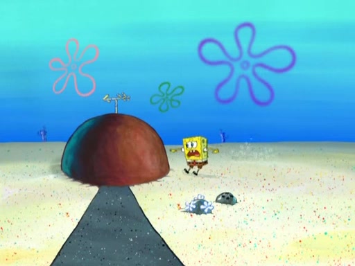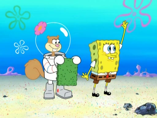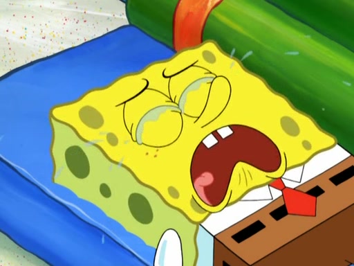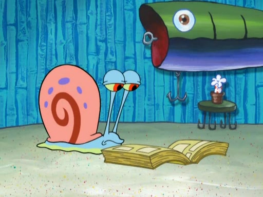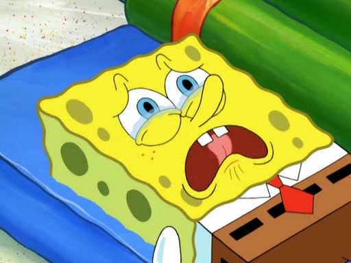 Later, he is shown at his house crying to Gary about how he can't say no to anything anyone asks him. Gary then goes to a catalog and orders something for SpongeBob, it arrives and it shows that the package was a thing called 'abrasive sponge" which is an abrasive side designed for doormat sponges to stick on their back, and the abrasive side will help them be more touch. SpongeBob feels this is perfect for his situation, so he sticks it on his back. The abrasive side makes a cruel remark at Gary which SpongeBob is unaware of, so he happily tells Gary he'll see him later.