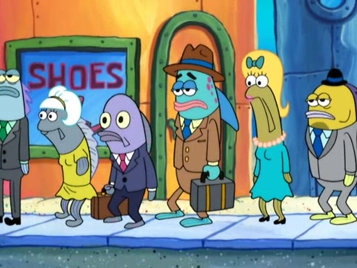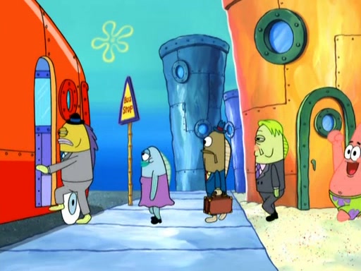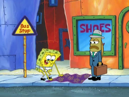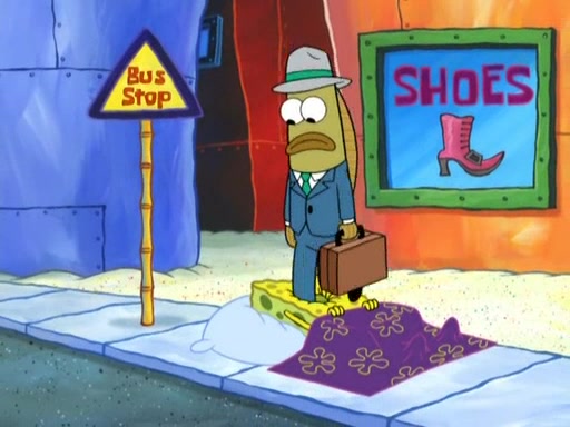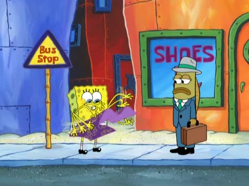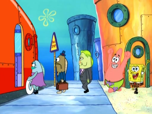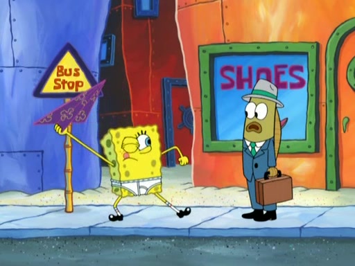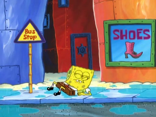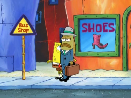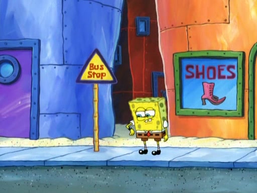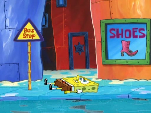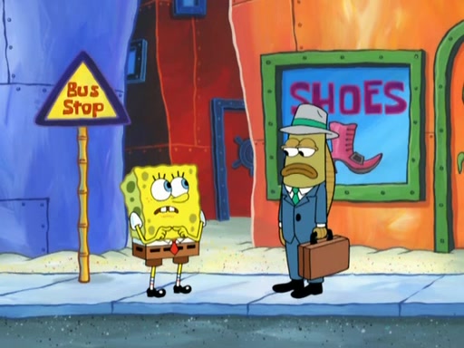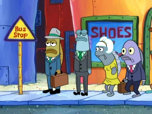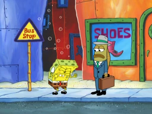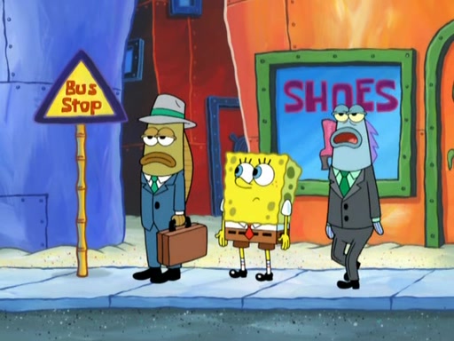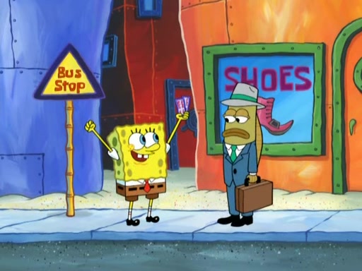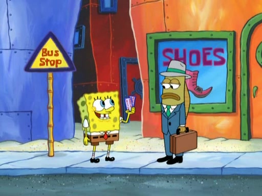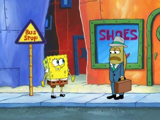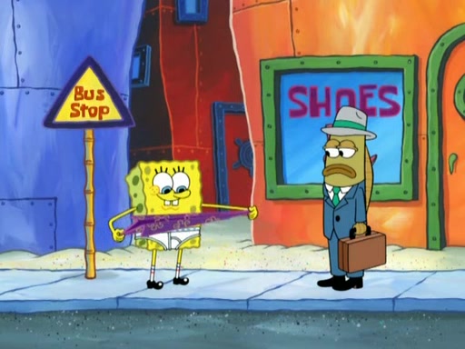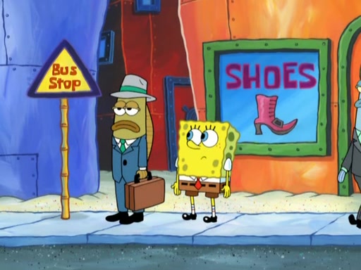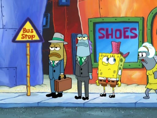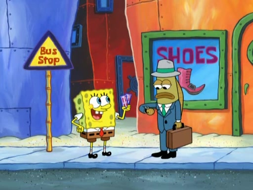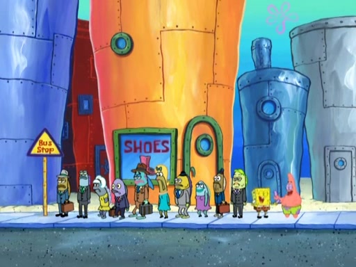 SpongeBob is waiting at the bus stop to go to Glove World. A fish walked on Spongebob' s face, not realizing he was there since he was sleeping on the ground. SpongeBob informs him of this and he steps off his face. SpongeBob tells him he spent the night, so he would be first in line as he promised Patrick that they would be first in line, and first to get on the bus. The man says "that's great stuff, say do you mind if I cut in front of ya?" SpongeBob tries to say no, but he ends up letting the fish cut him anyways, making him behind the other fish. Then a lot of fish come and cut in front of him. Patrick comes and asks SpongeBob why he is not first (like he promised). SpongeBob says he's sorry but they'll still be able to catch the first bus. Patrick, now no longer mad at SpongeBob for breaking his promise, becomes happy, and the bus comes, so they run to it.