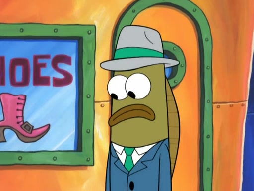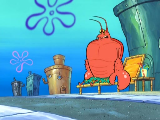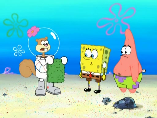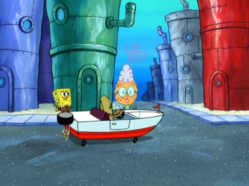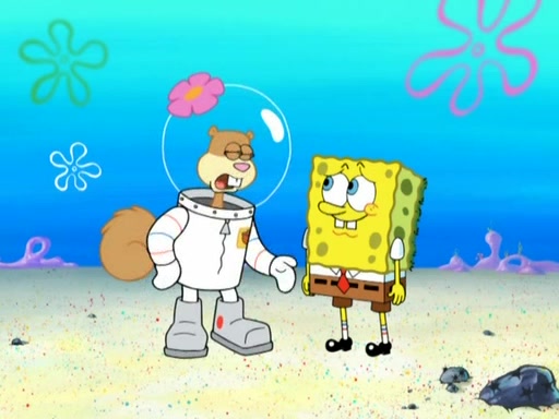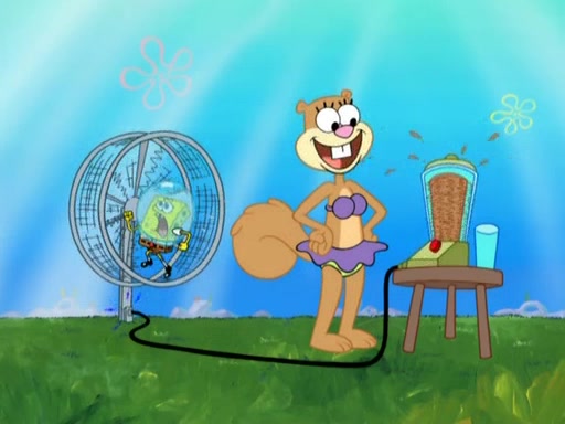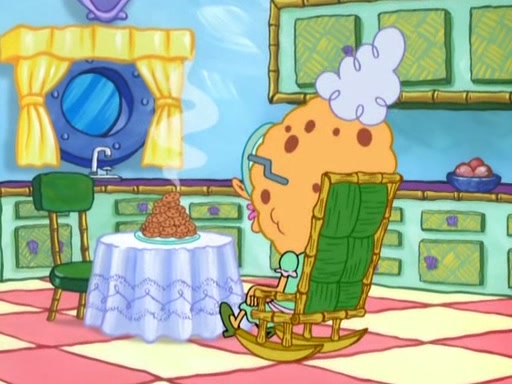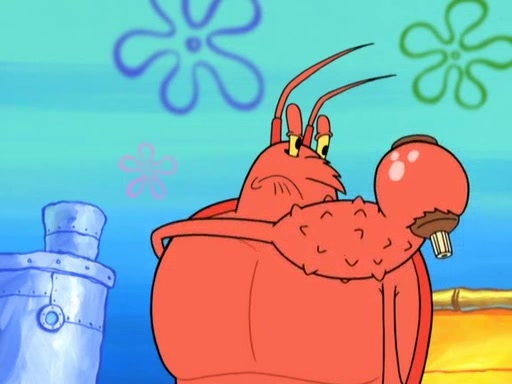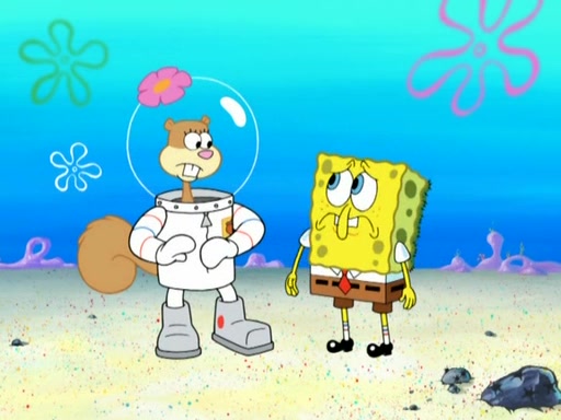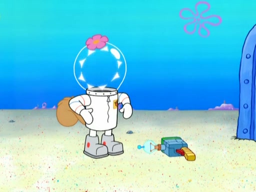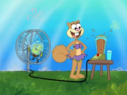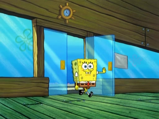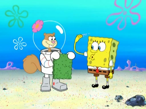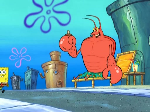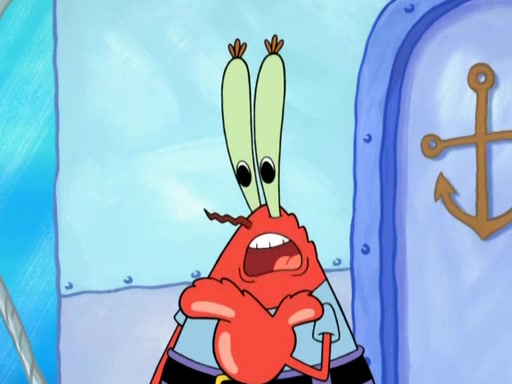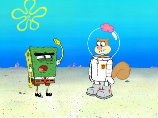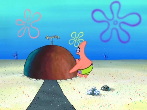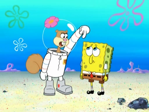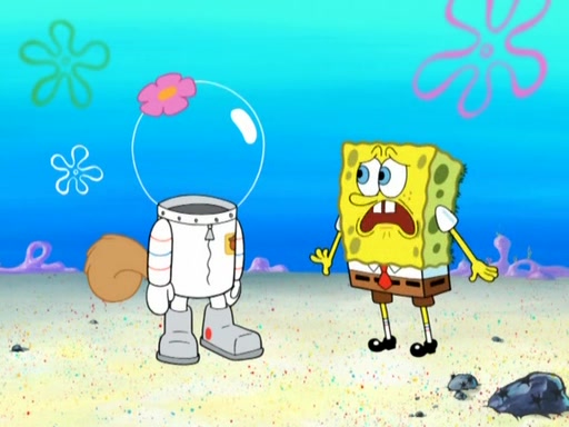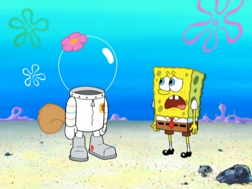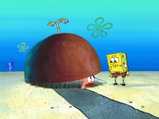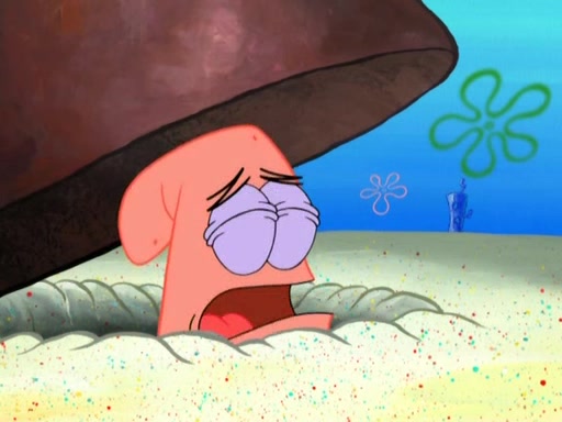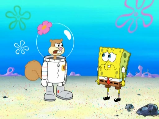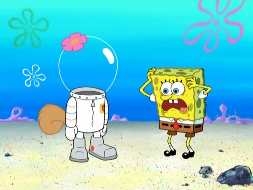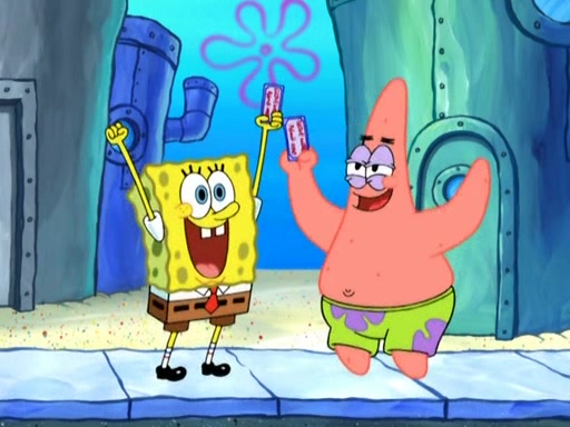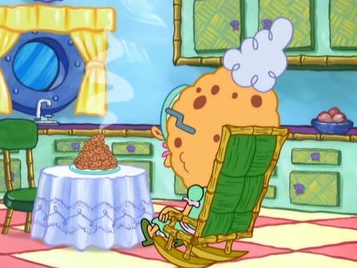 He goes out and Pilar asks him to carry his groceries for him. His body switches 180 degrees, showing the abrasive side, and says "Carry it yourself, fish-face" for SpongeBob. He does the same for Larry who asked him to help him put sun lotion on, Grandma who asked for help crossing the street, and Sandy who asked him to help her with a science invention. All of them getting harsh words thrown at them from SpongeBob's abrasive side leave, either baffled, hurt, or in Sandy's case, baffled, hurt, and physically damaged.