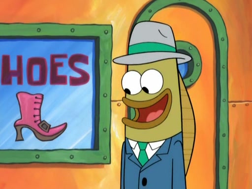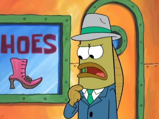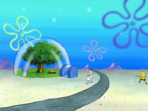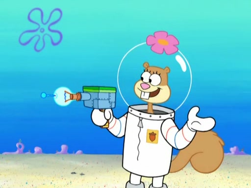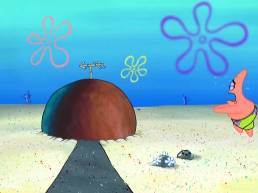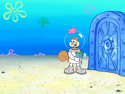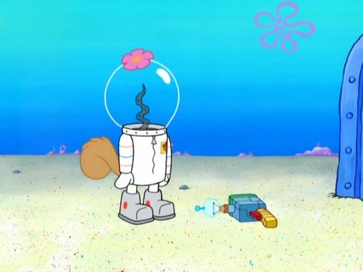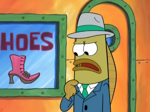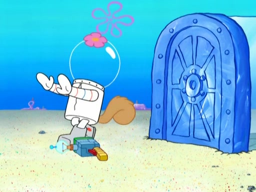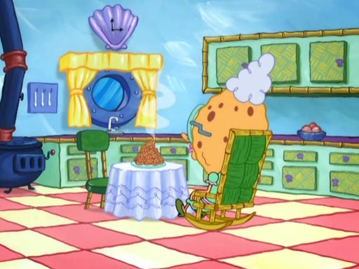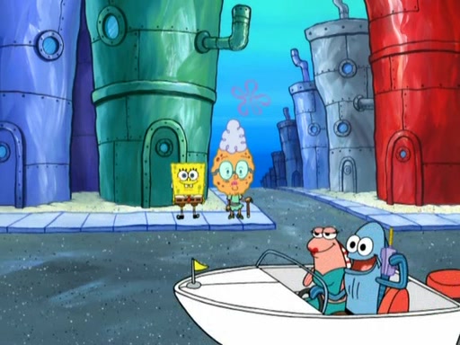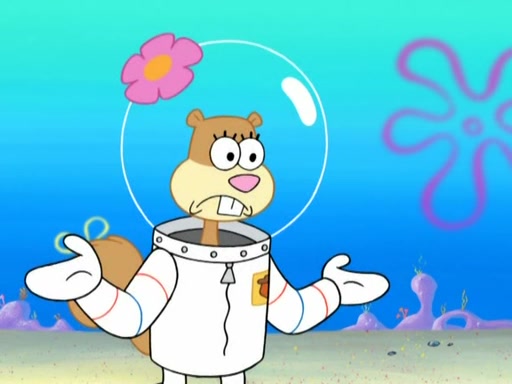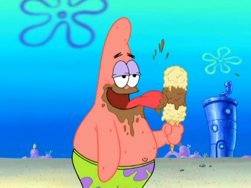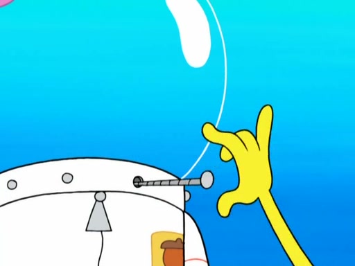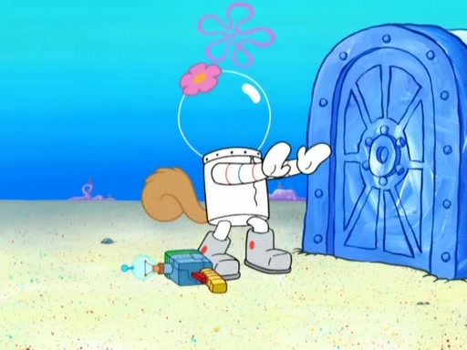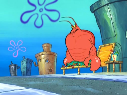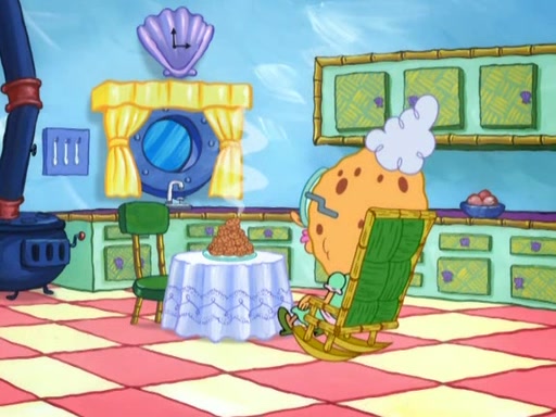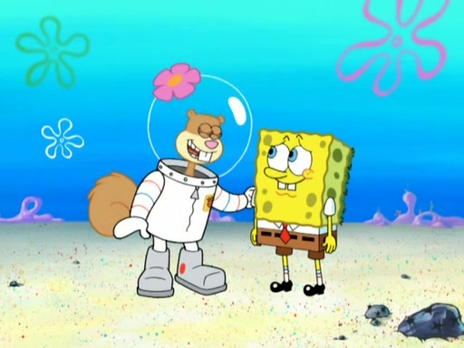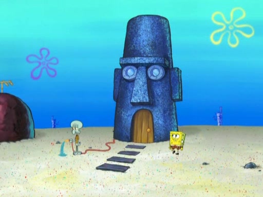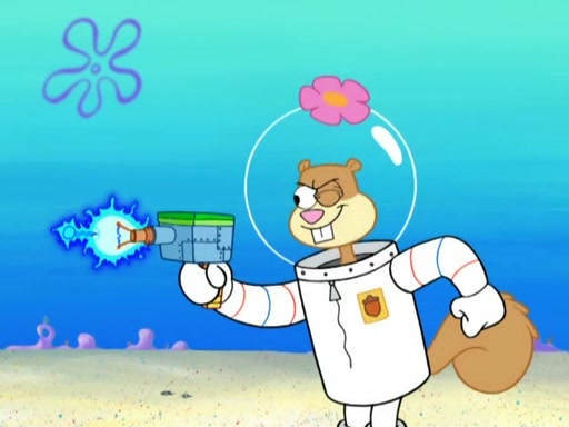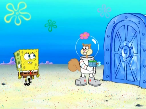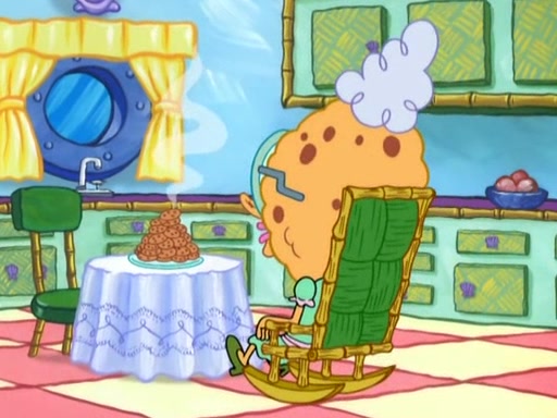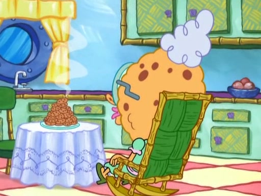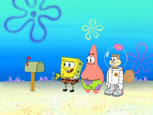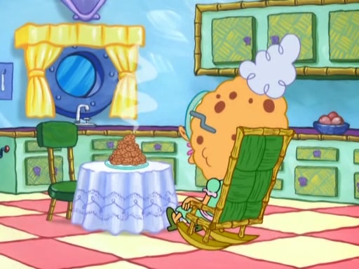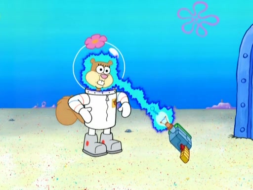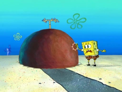 He goes out and Pilar asks him to carry his groceries for him. His body switches 180 degrees, showing the abrasive side, and says "Carry it yourself, fish-face" for SpongeBob. He does the same for Larry who asked him to help him put sun lotion on, Grandma who asked for help crossing the street, and Sandy who asked him to help her with a science invention. All of them getting harsh words thrown at them from SpongeBob's abrasive side leave, either baffled, hurt, or in Sandy's case, baffled, hurt, and physically damaged.