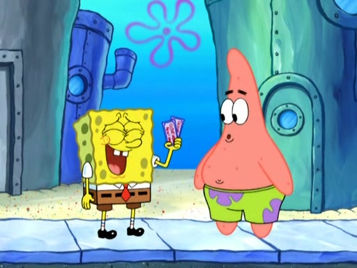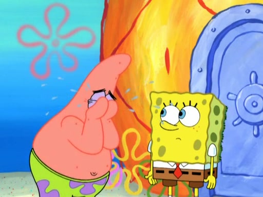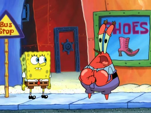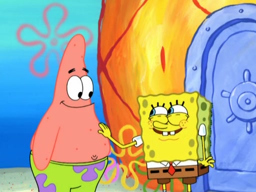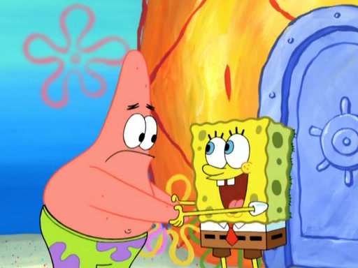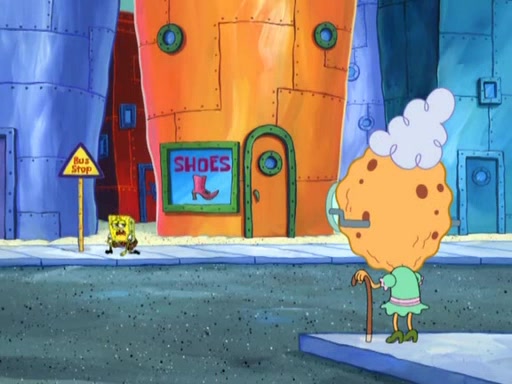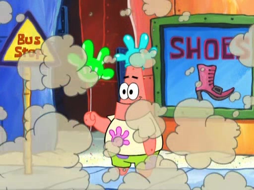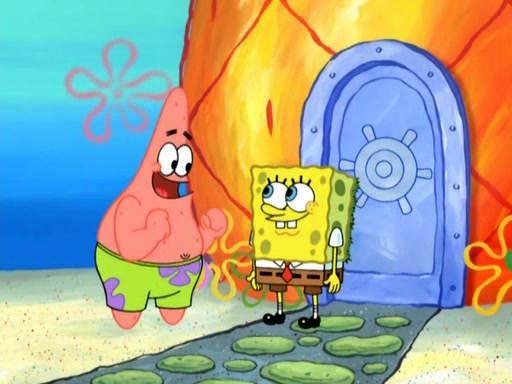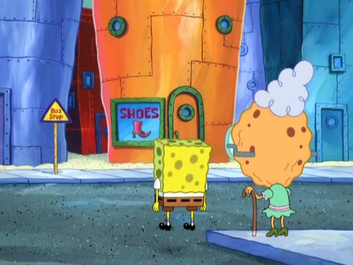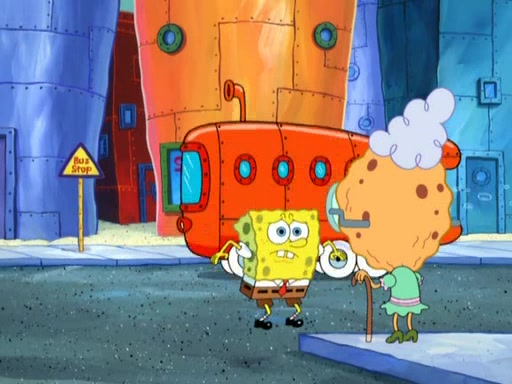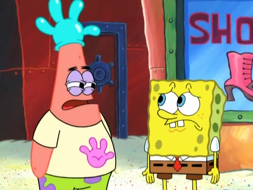 So afterwards, he goes back to the bus stop and his Grandma asks him to help him cross the road. SpongeBob, as usual, says no but then his guilt tripped into helping anyways. Patrick returns and is mad at SpongeBob for making him go to Glove World by himself. SpongeBob says he's sorry but people kept asking him to do things. Patrick tells SpongeBob that sometimes he just has to say no, and he needs to grow thicker skin, then it reminds him to ask SpongeBob to scratch his back, which SpongeBob does.
